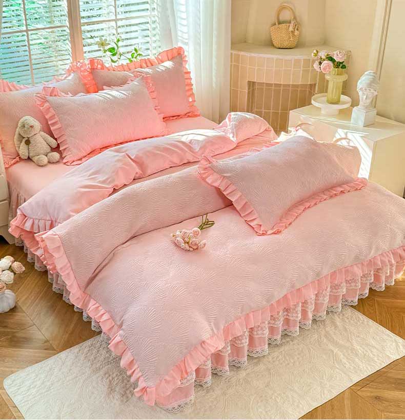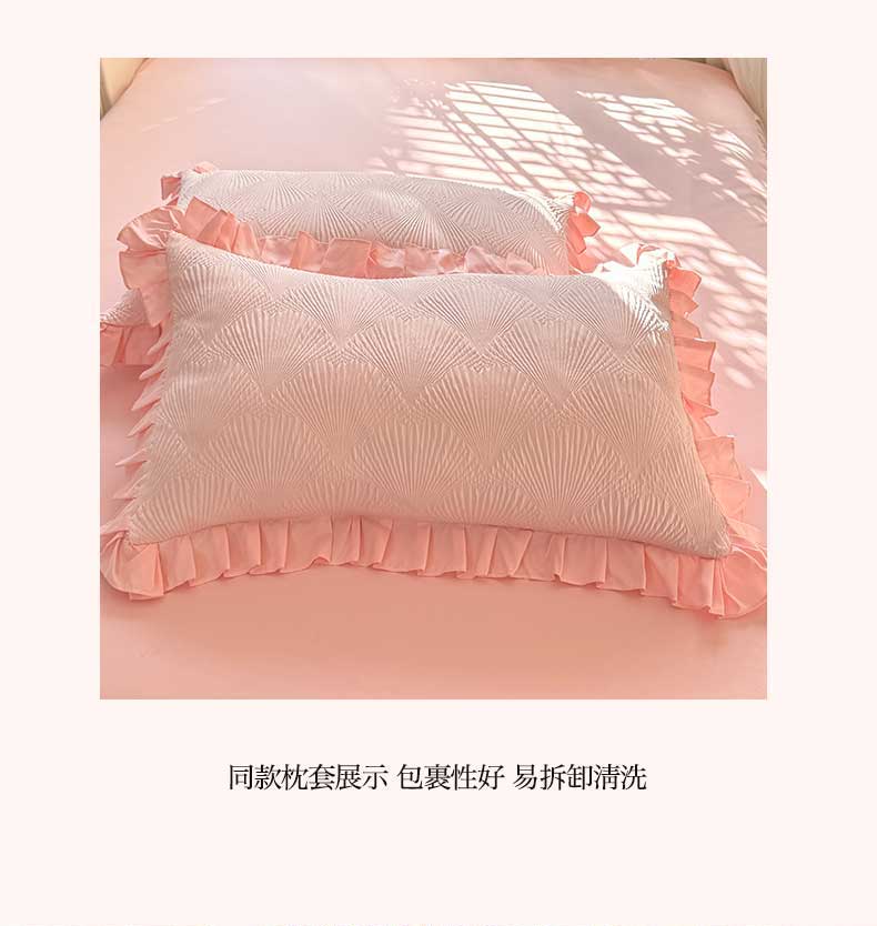 (总)唐人居 2026新款水洗棉花边床盖四件套-花影系列,花影-浅紫,花影-豆沙,花影-玫红,花影-暖橘,花影-苹果绿,花影-浅粉,花影-浅灰