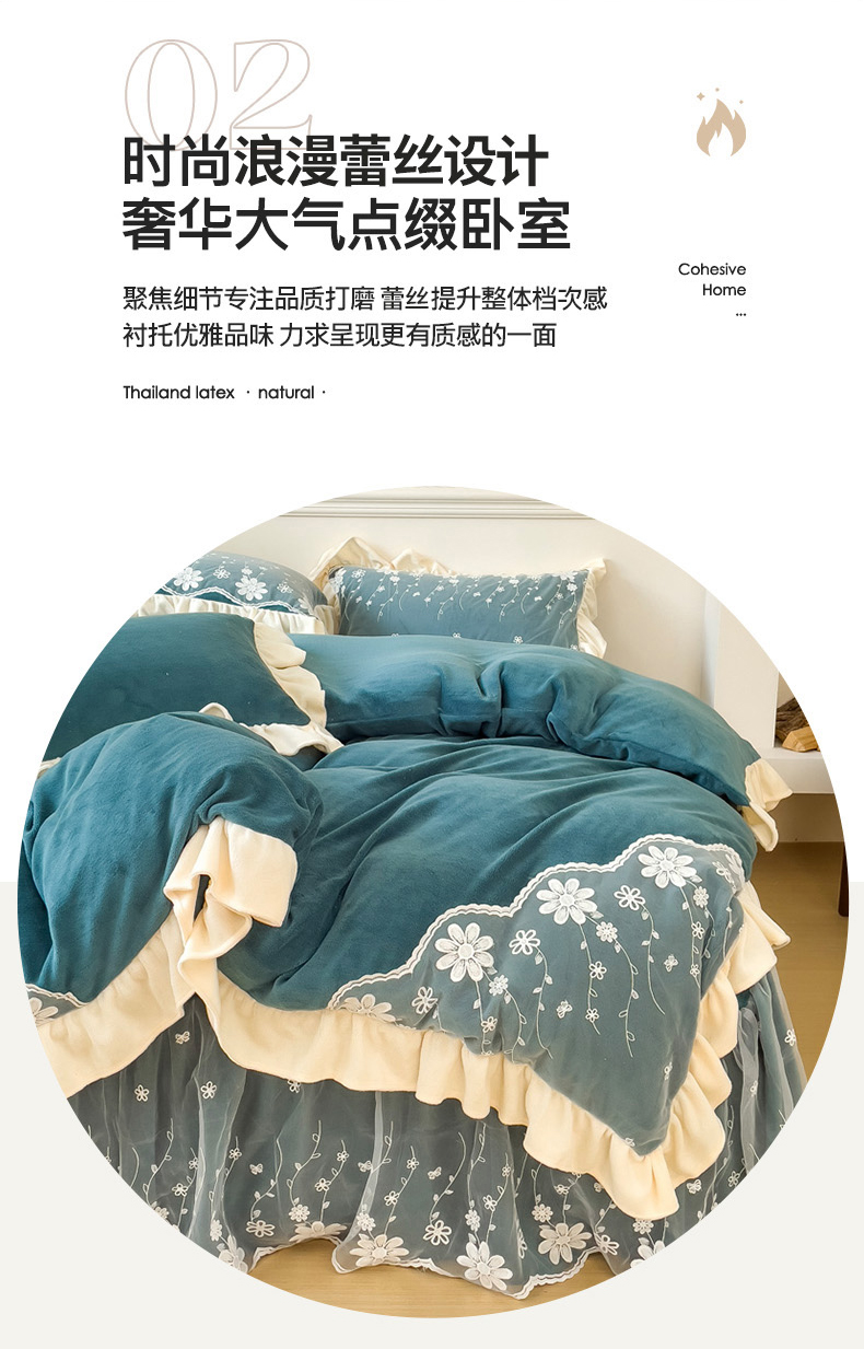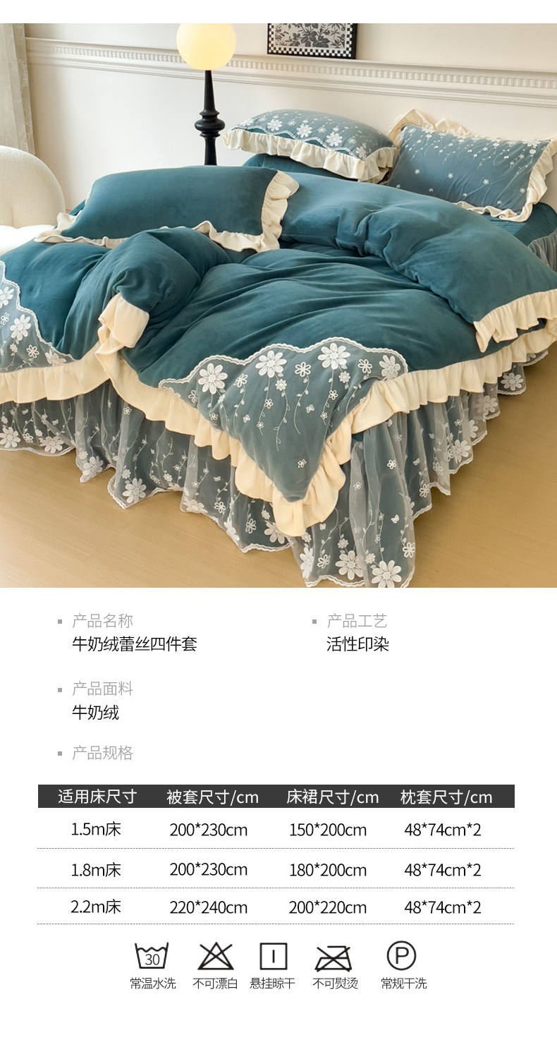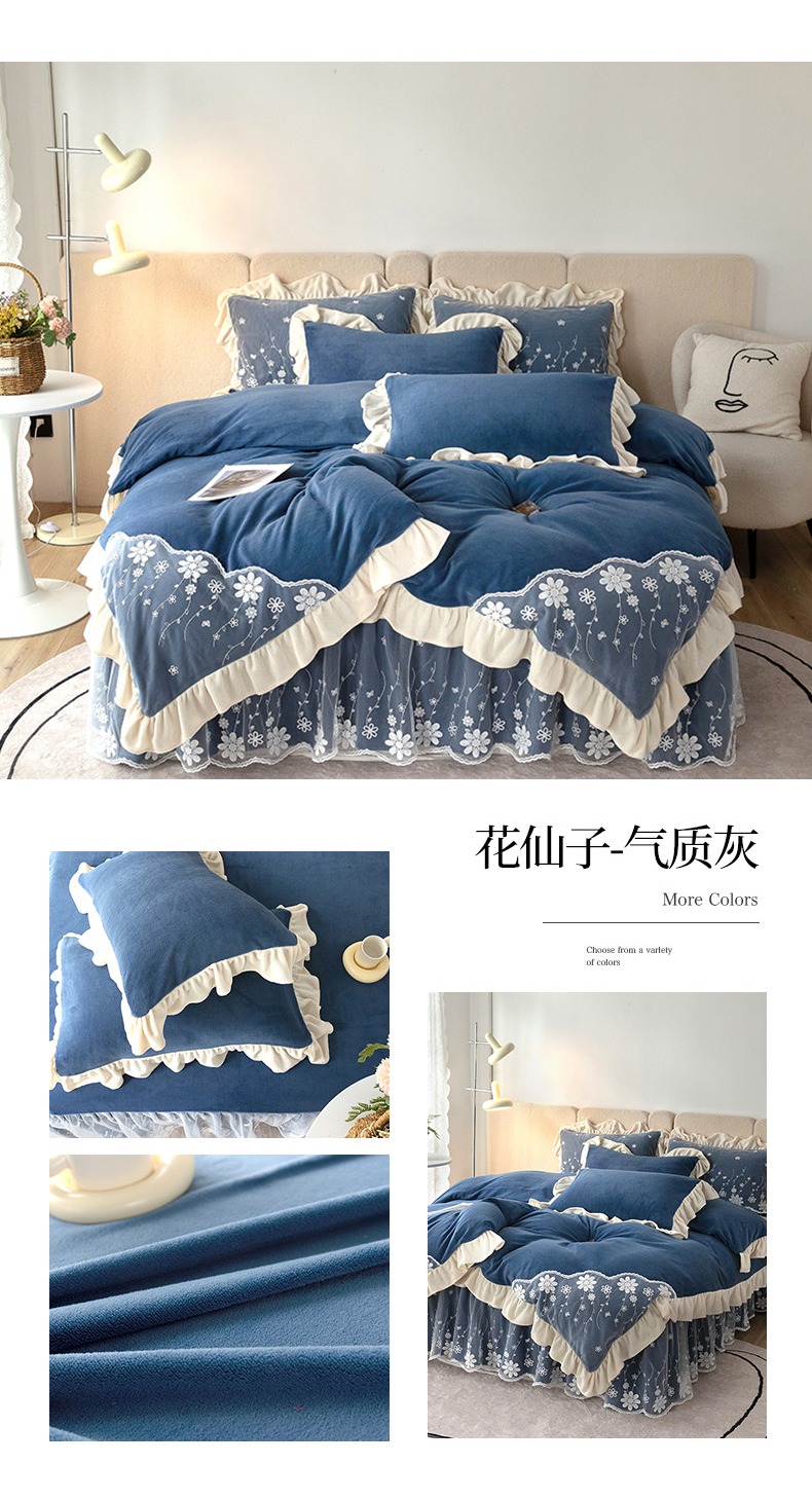 商品名称:睡美人 2025新款牛奶绒蕾丝款床裙四件套花仙子系列 花仙子-星空蓝
