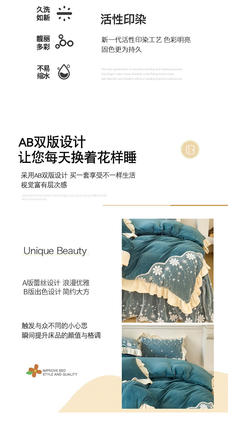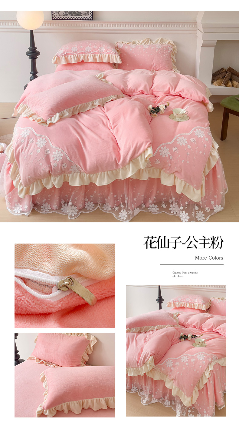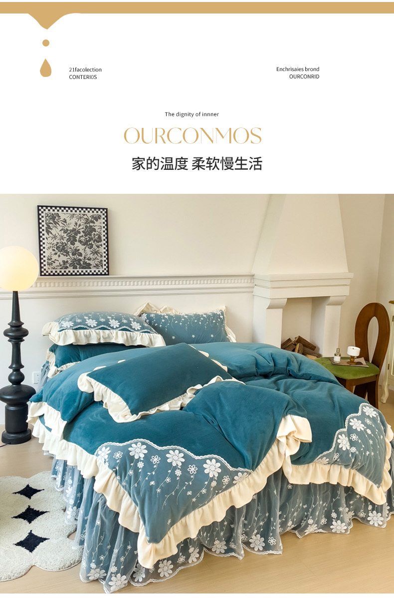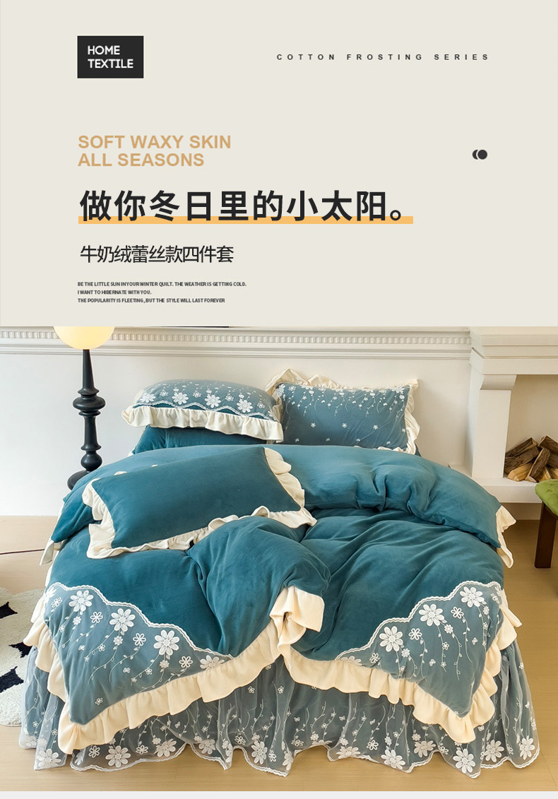 商品名称:睡美人 2025新款牛奶绒蕾丝款床裙四件套花仙子系列 花仙子-星空蓝