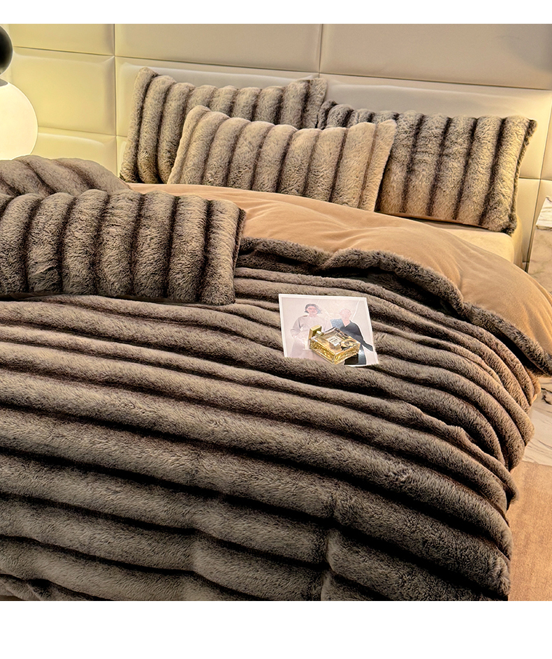 商品名称:唐人居 2025新款兔毛绒牛奶绒四件套--条纹 条纹-浅绿