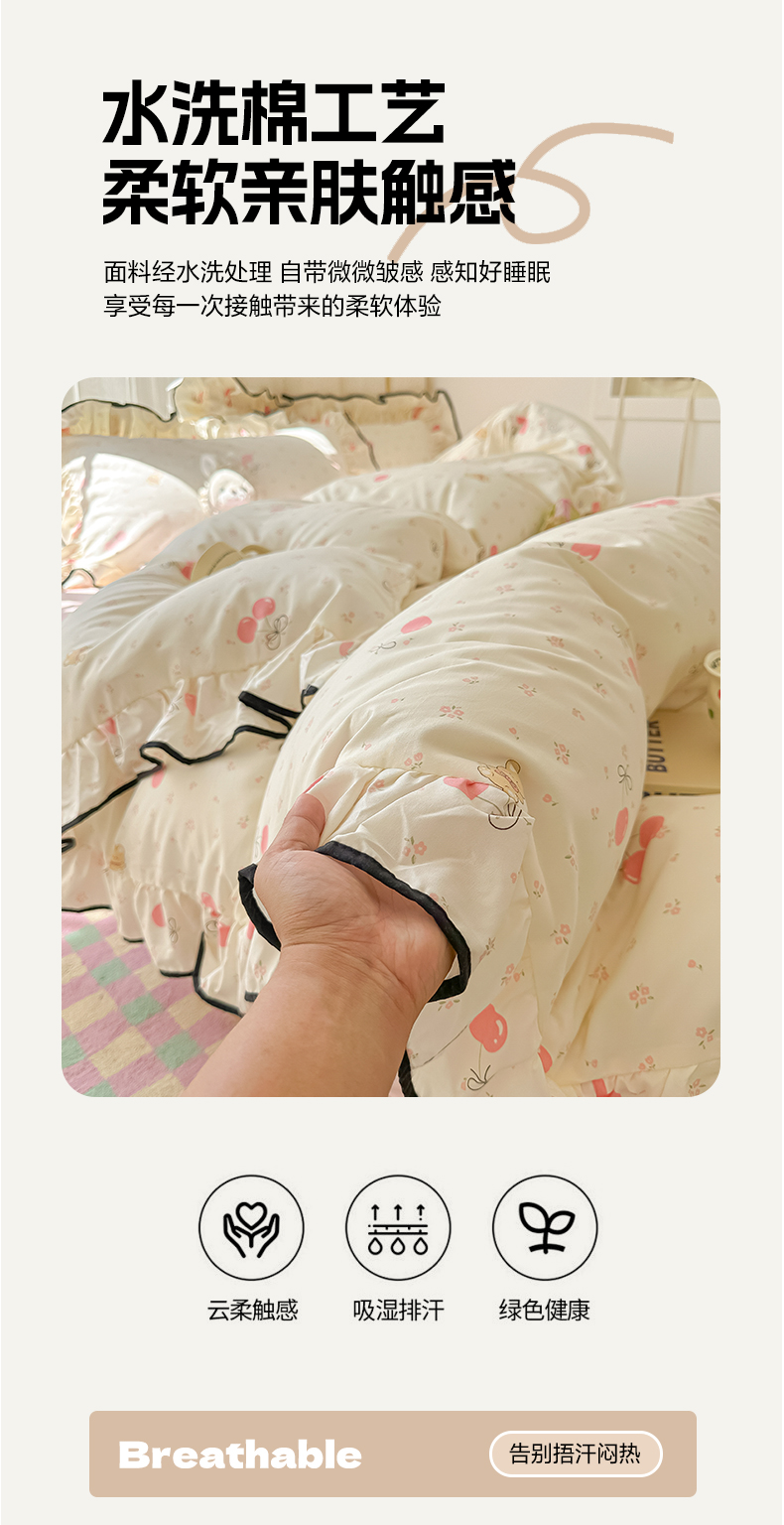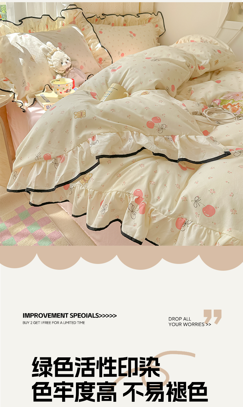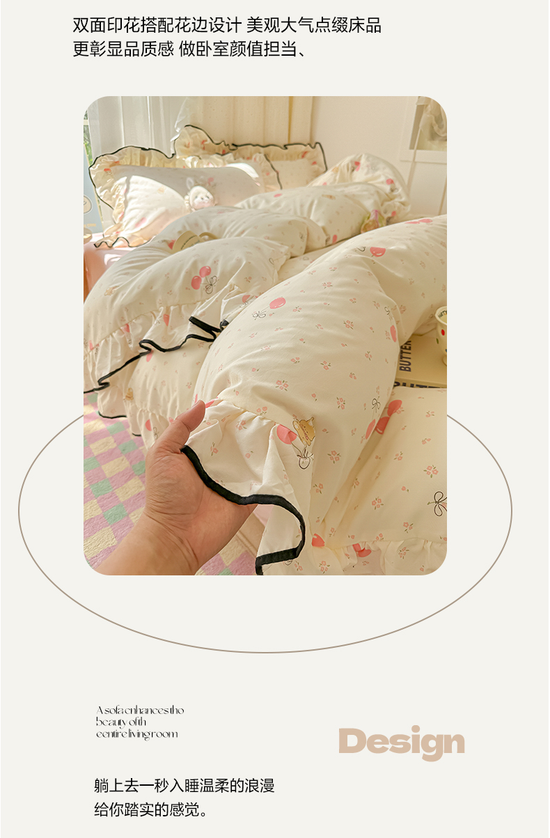 当前位置: 91家纺网 > 商品网购 > 床品套件 > 四件套 > 其它四件套 > 韩巢家纺 2025新款水洗棉大花边被套四件套直播热销款学生宿舍被罩床单三件套(提供卖家秀) 摘樱桃的小熊【大花边款】