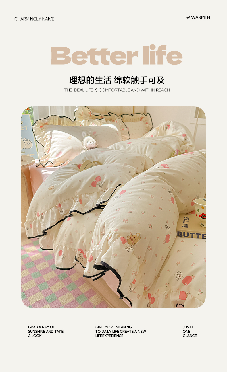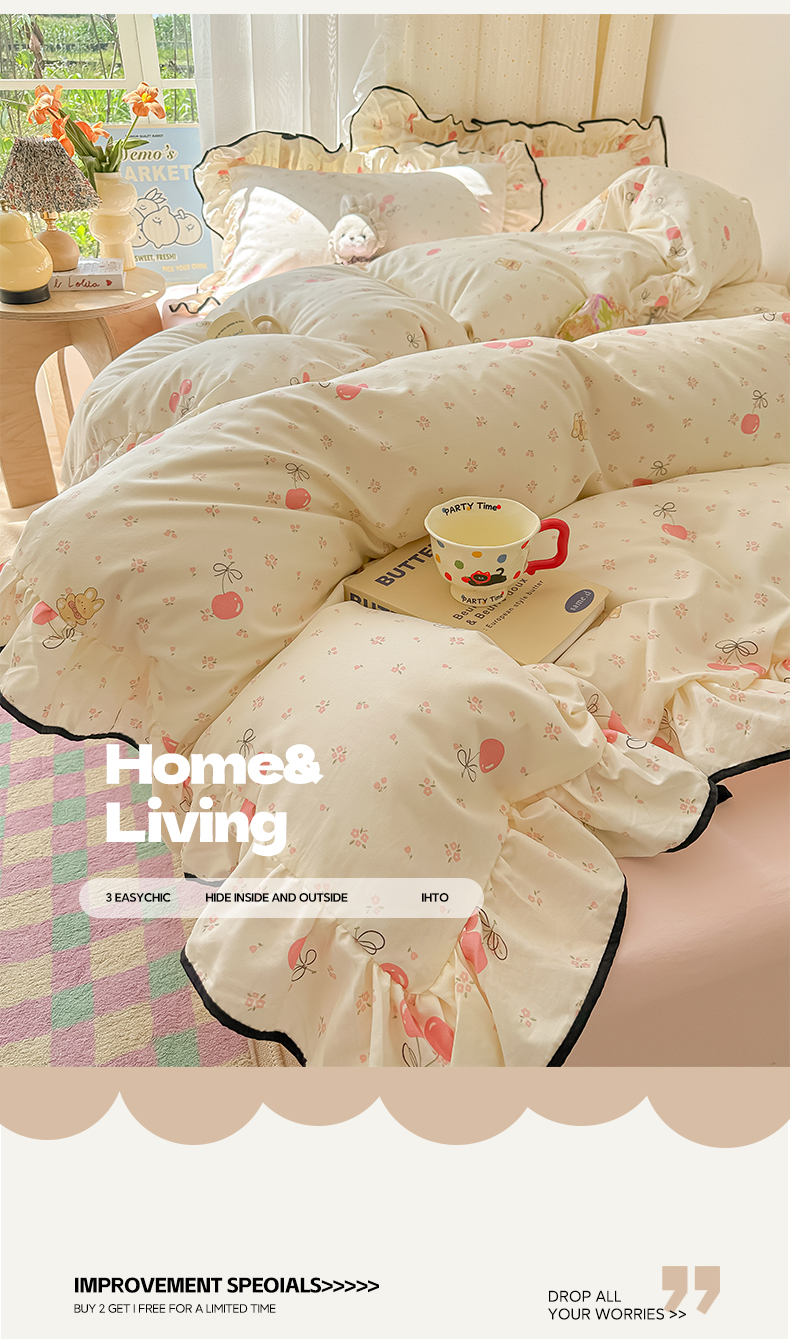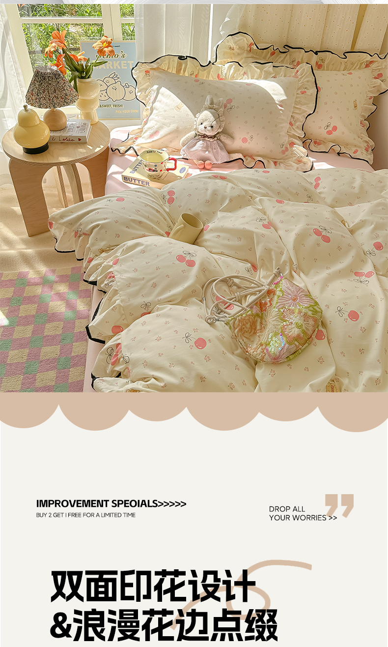 当前位置: 91家纺网 > 商品网购 > 床品套件 > 四件套 > 其它四件套 > 韩巢家纺 2025新款水洗棉大花边被套四件套直播热销款学生宿舍被罩床单三件套(提供卖家秀) 摘樱桃的小熊【大花边款】