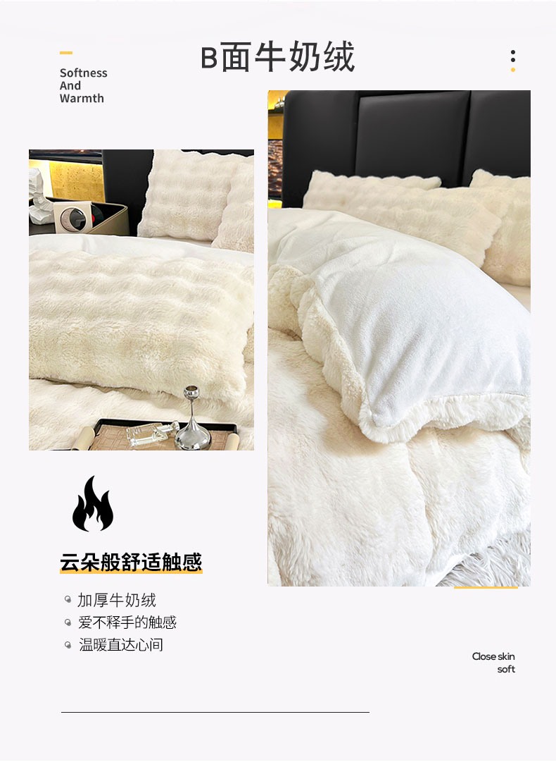 (总)金爱家 2025新品全消光牛奶绒A类纯色獭兔毛绒立体牛奶绒四件套,七彩泡泡白,七彩泡泡粉,七彩泡泡灰,七彩泡泡蓝,七彩泡泡绿,七彩泡泡紫