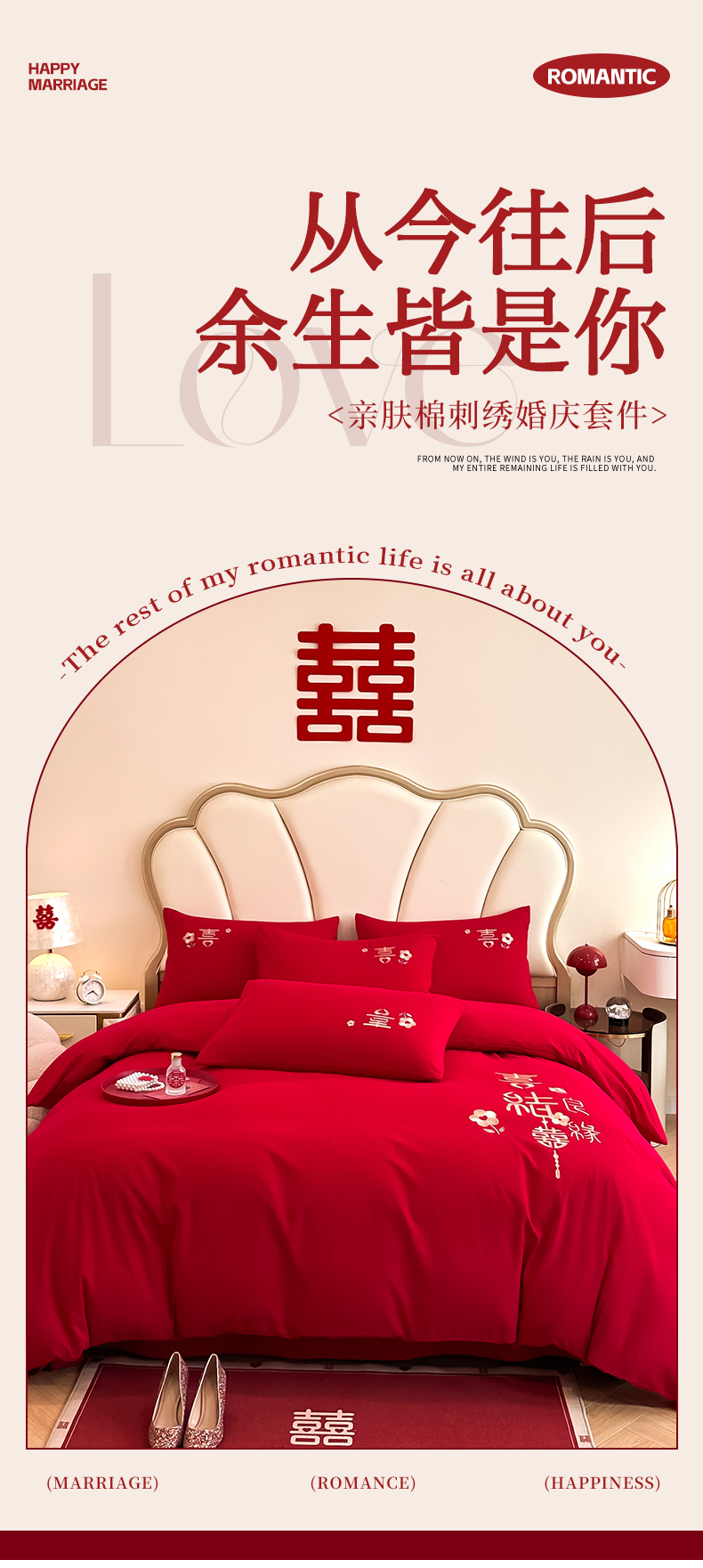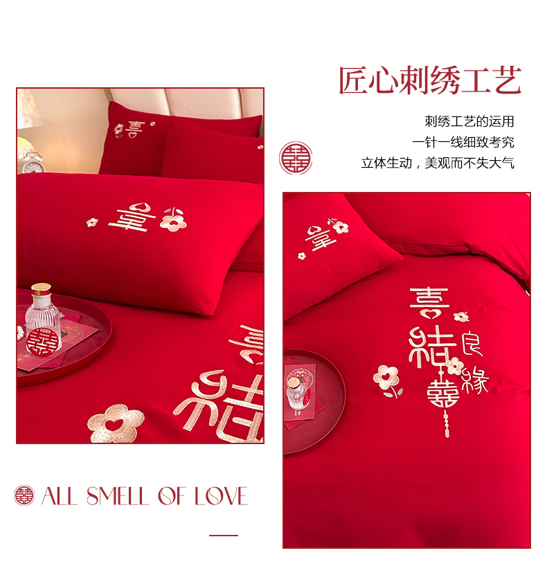 (总)火麒麟家纺 2024新款亲肤棉刺绣婚庆四件套,百年好合,成双成对,好姻缘,贺新婚,佳偶天成,龙凤情缘,玫瑰之恋,天作之合,甜甜蜜蜜,喜结良缘,喜事连连,相亲相爱,心心相印,新婚快乐,一生相伴,以爱之名