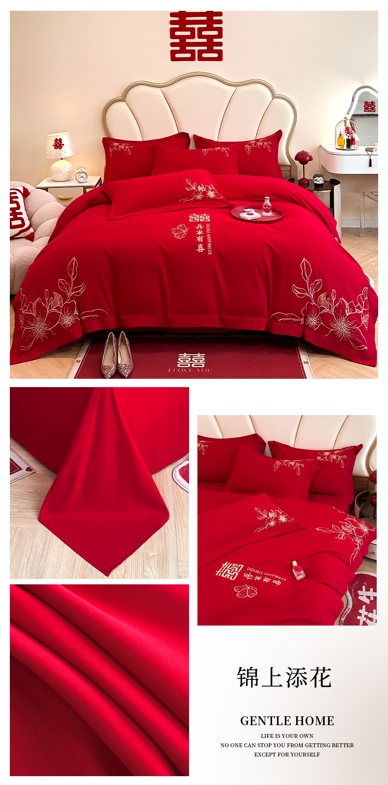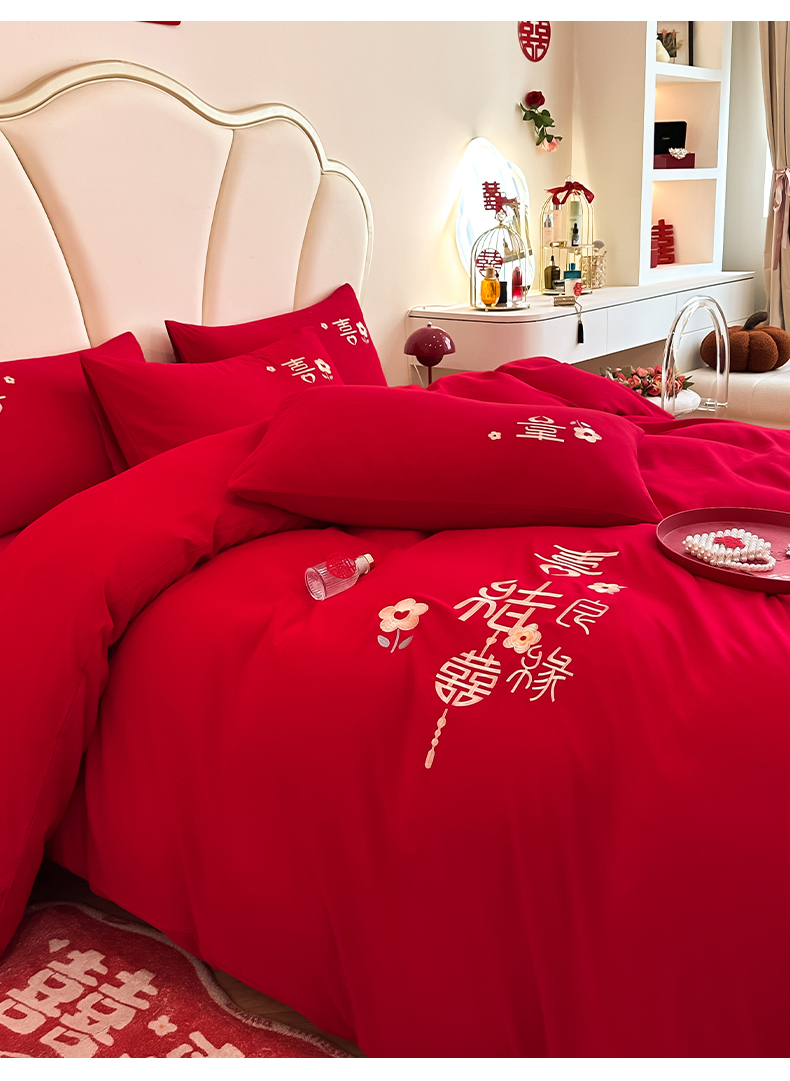 (总)火麒麟家纺 2025新款亲肤棉婚庆刺绣四件套,爱意满满,百年之好,蝶恋花,欢喜,锦上添花,锦有你,龙飞凤舞,龙凤祥云,天赐良缘,吾家有喜,一见钟情,永结同心