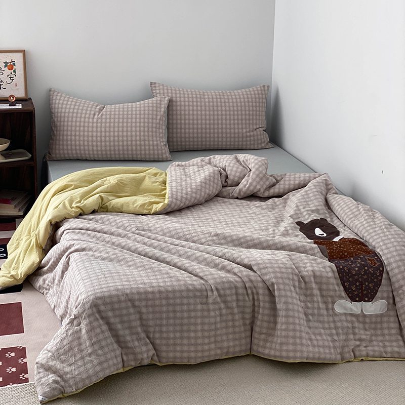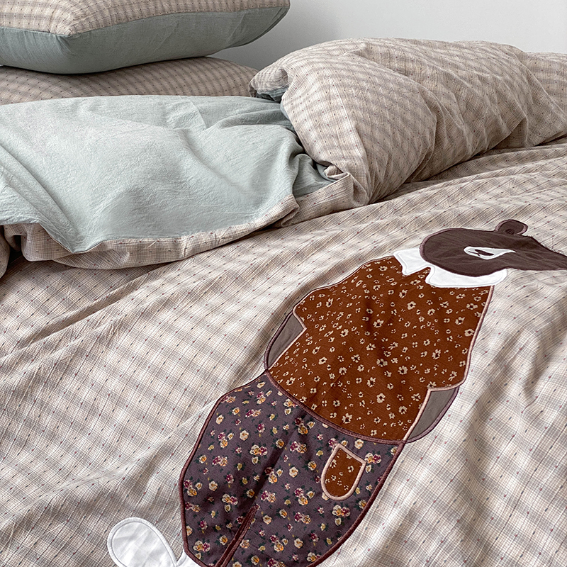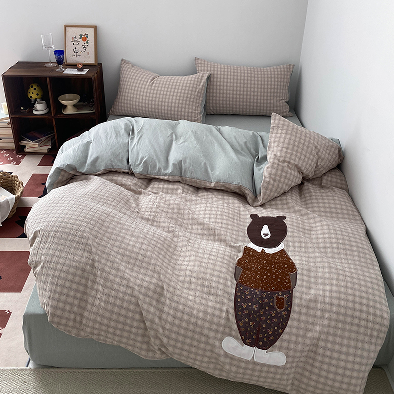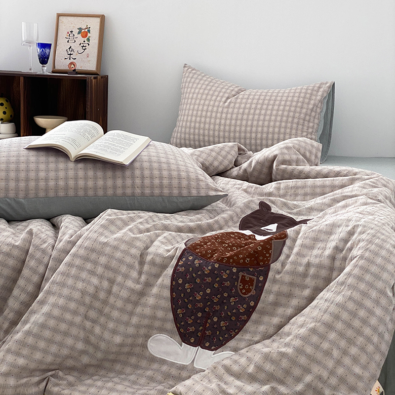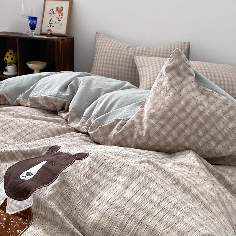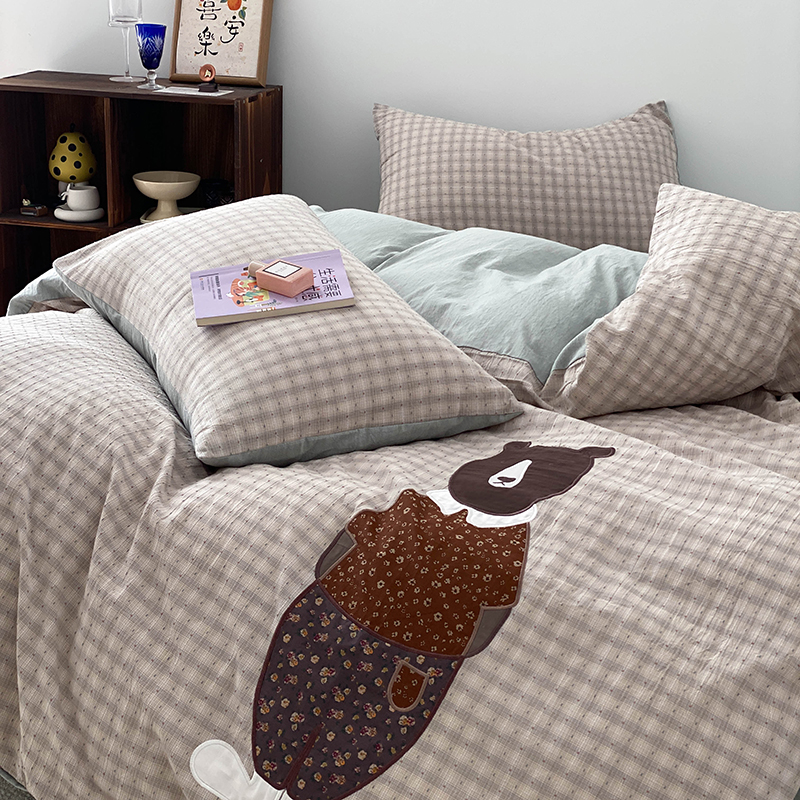 贝尔 2025新款全棉色织提花贴布绣四件套 鲜芋奶绿