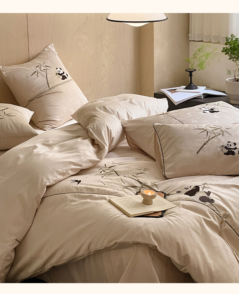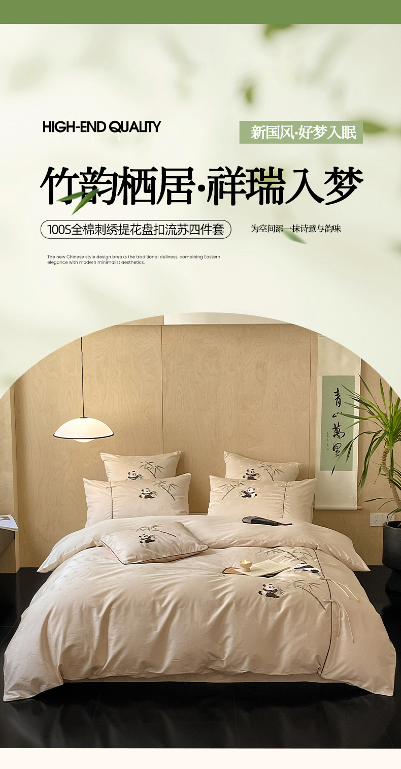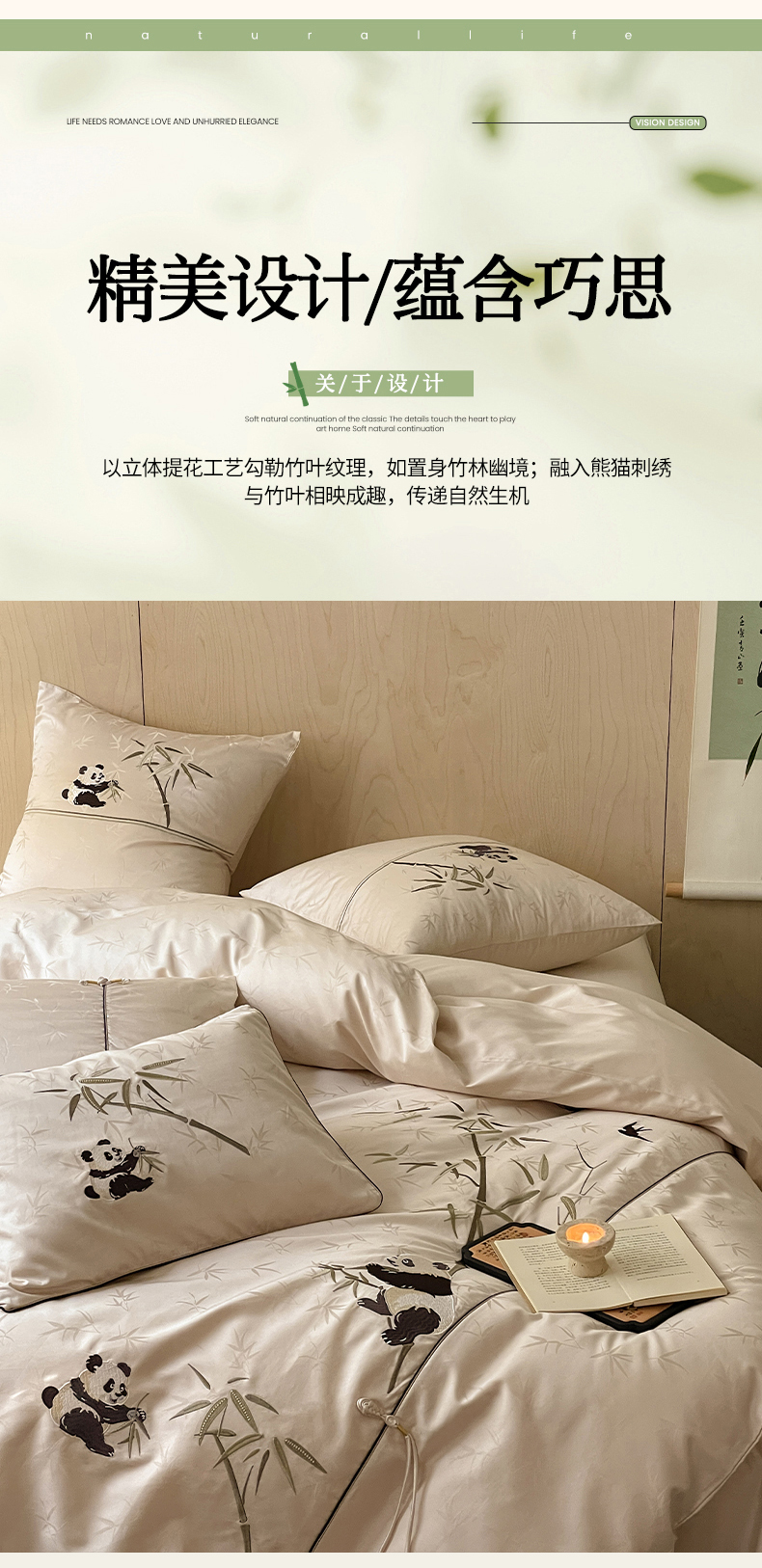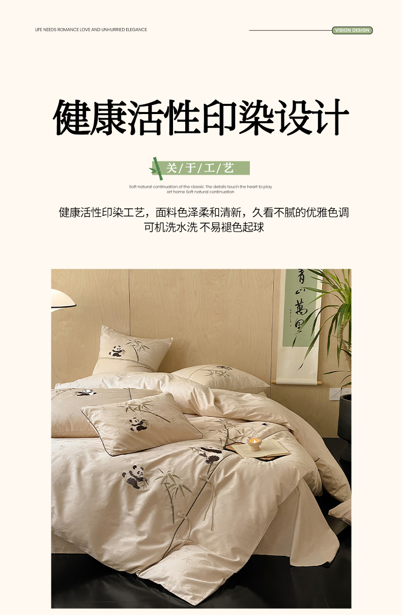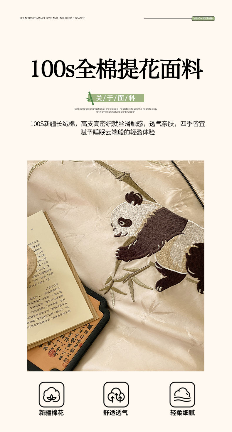 (总)漫调家纺 2025新款新中式100支国风提花熊猫刺绣四件套【现货供应+提供买家秀】