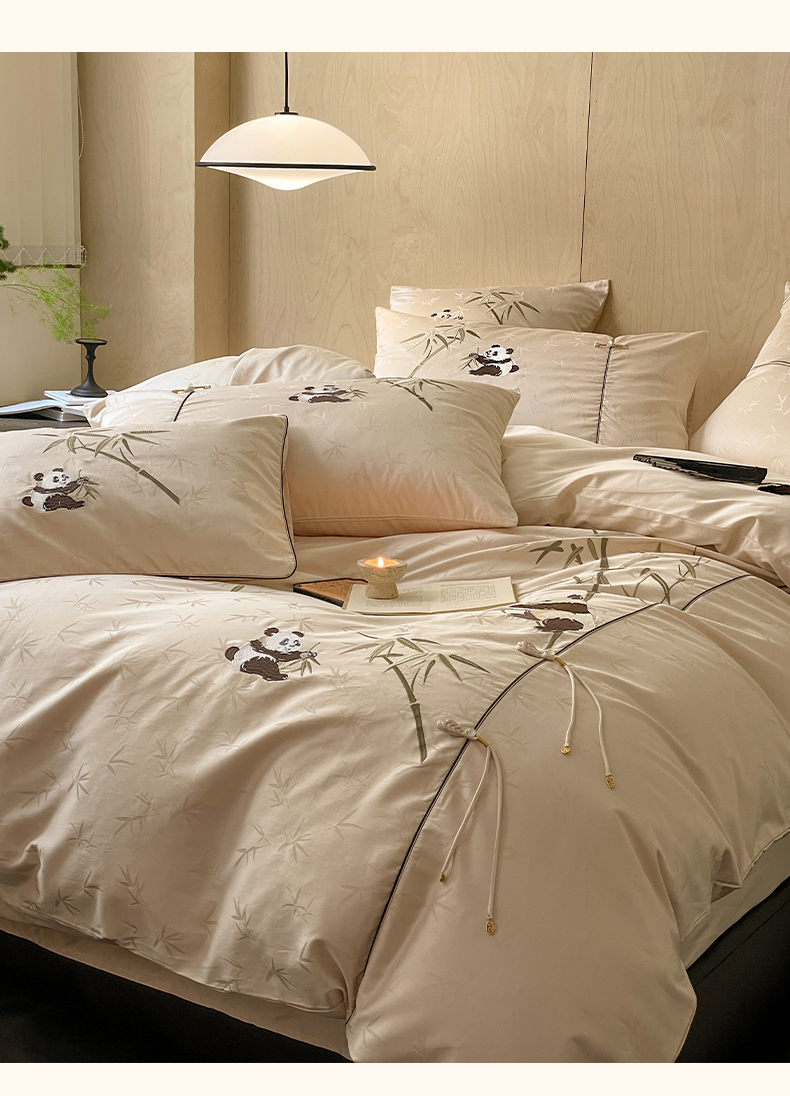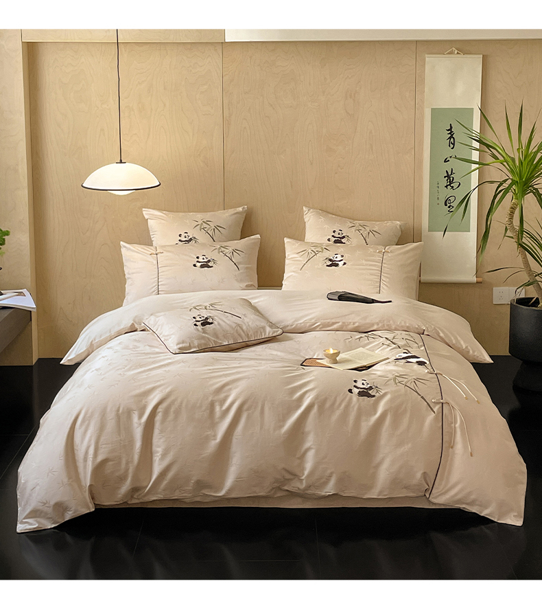 商品名称:(总)漫调家纺 2025新款新中式100支国风提花熊猫刺绣四件套【现货供应+提供买家秀】