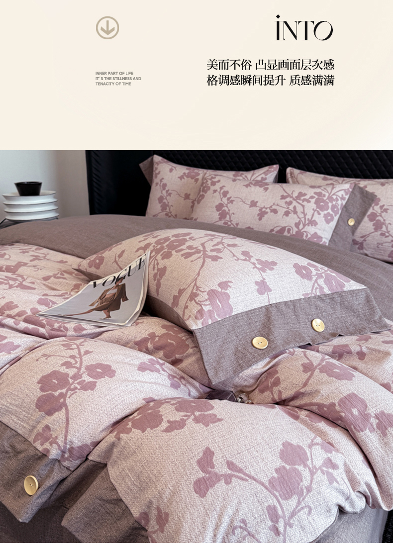 当前位置: 91家纺网 > 商品网购 > 床品套件 > 四件套 > 其它四件套 > 晚爱家纺(原晚安家居) 2025新款A类原麻四件套纽扣款加厚双层纱仿亚麻套件四件套 繁花粉