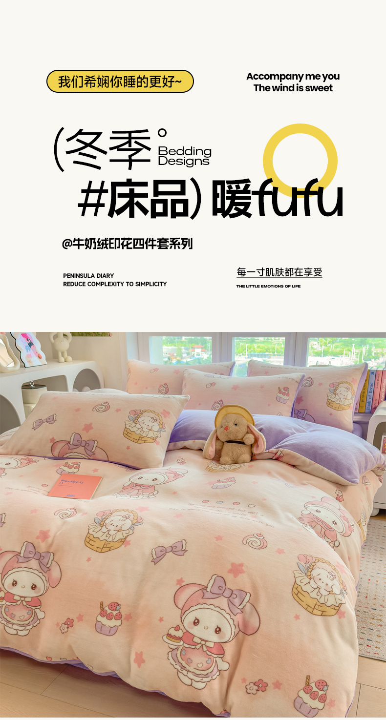 当前位置: 91家纺网 > 商品网购 > 床品套件 > 四件套 > 牛奶绒四件套 > 摩妮卡 摩妮卡 2025新款加厚款小清新牛奶绒印花四件套床单款床笠单被套 安妮兔