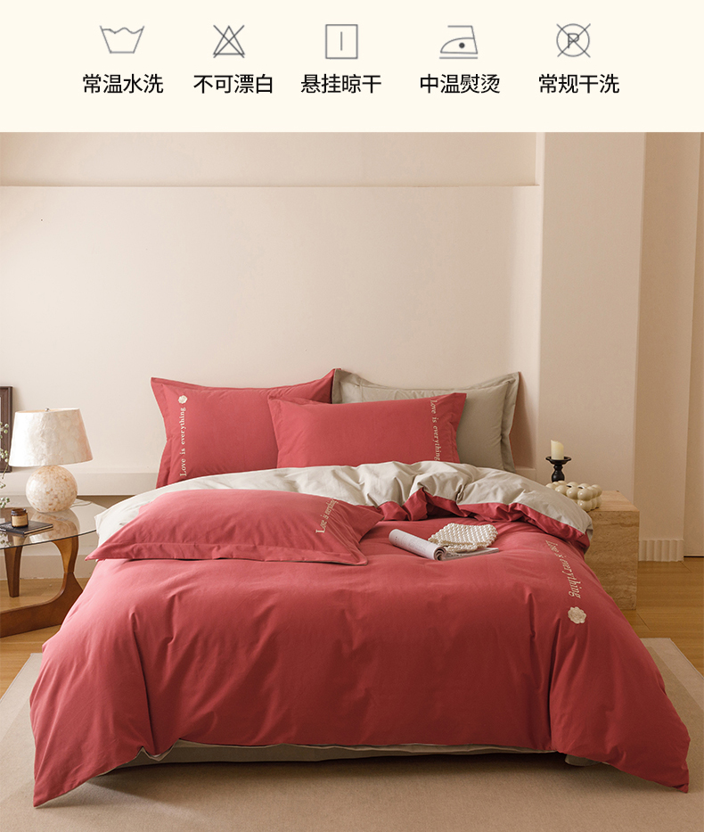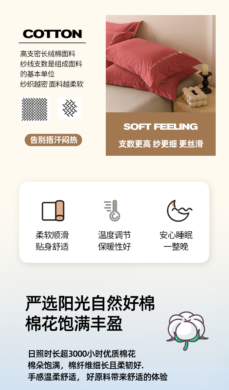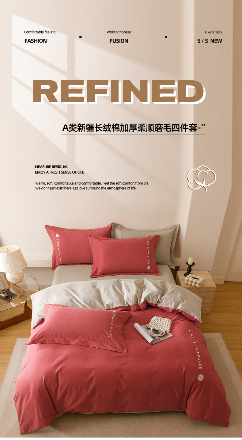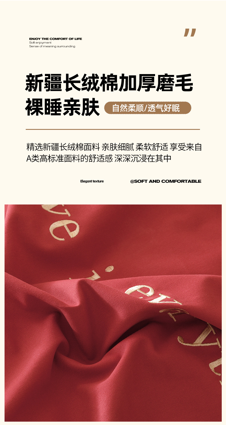 当前位置: 91家纺网 > 商品网购 > 床品套件 > 四件套 > 全棉普通四件套 > 艾莱家纺 2025新款A类新疆长绒棉加厚柔顺磨毛四件套--爱永恒系列 爱永恒-嫣红