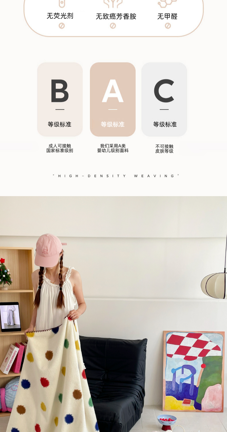 商品名称:晚爱家纺(原晚安家居) 2025新款跨境暖羊绒双面绵羊绒沙发毯多功能盖毯 彩波点