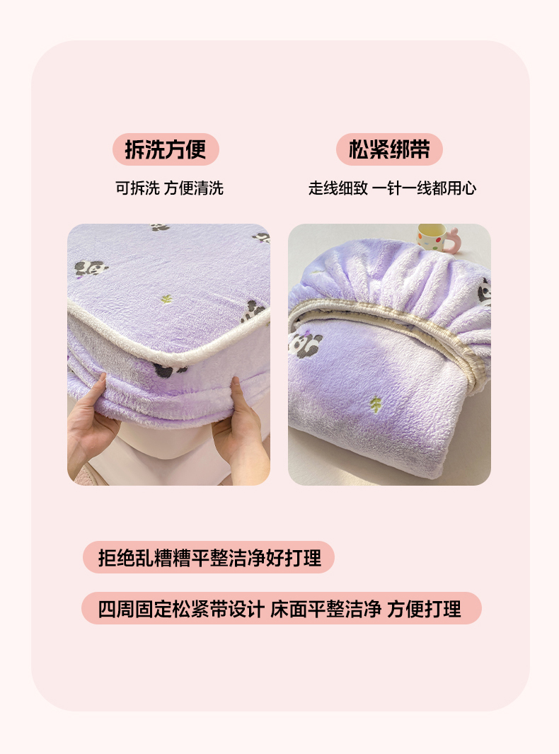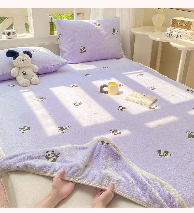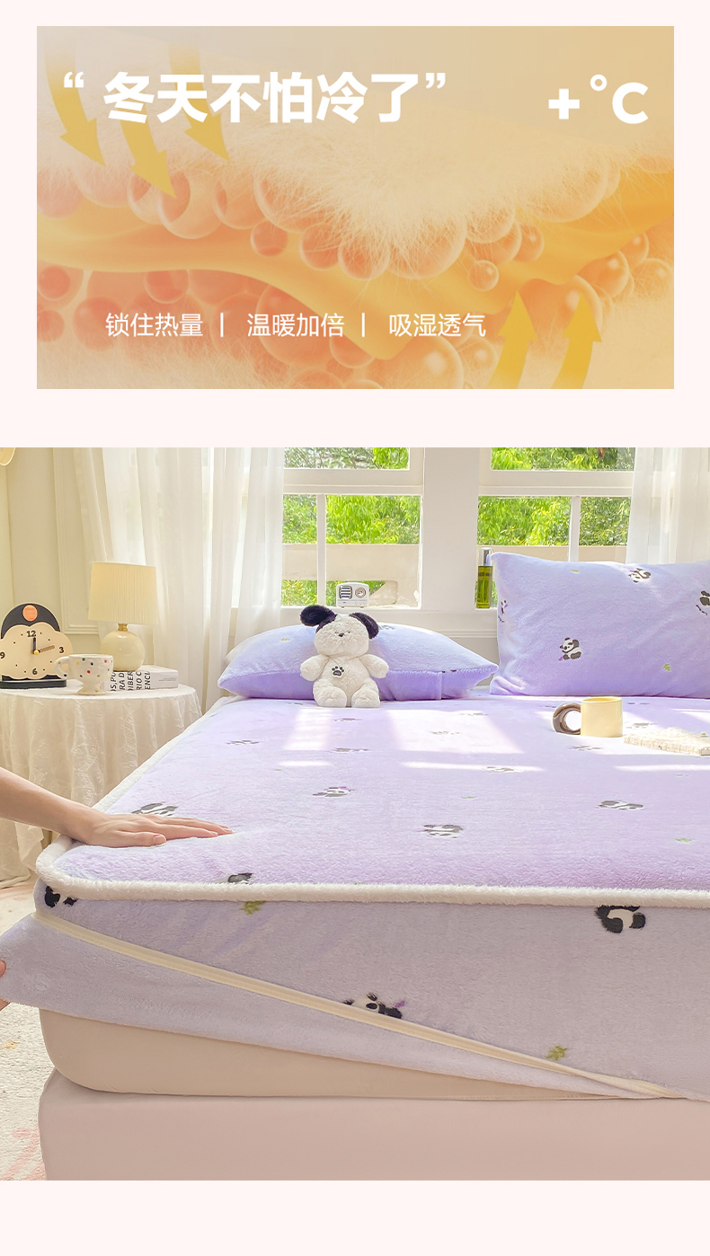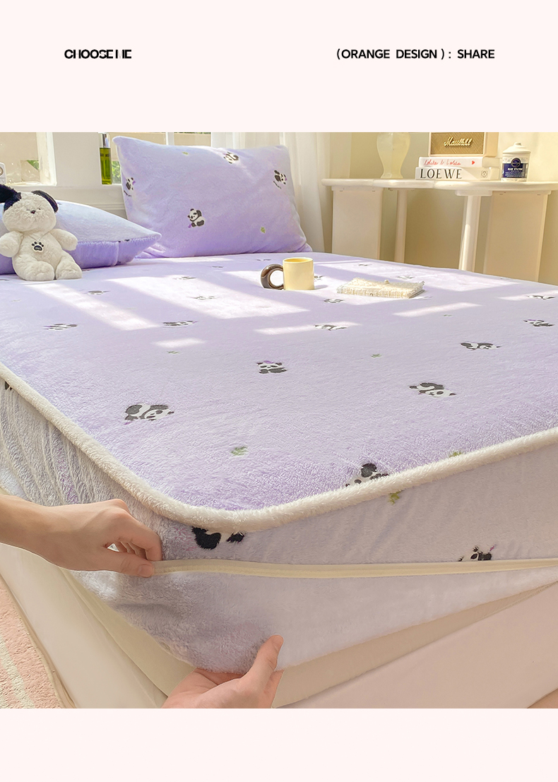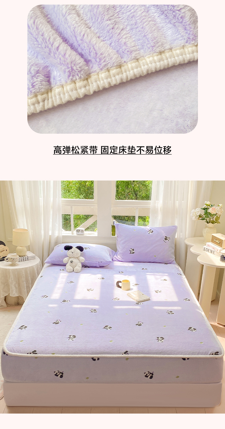 • 91家纺网 家纺一手货源 找家纺 眠势力 2025新款250g双面绒床笠单件三件套刺绣款高克重牛奶绒床垫保护套 熊猫紫【双面绒刺绣款】