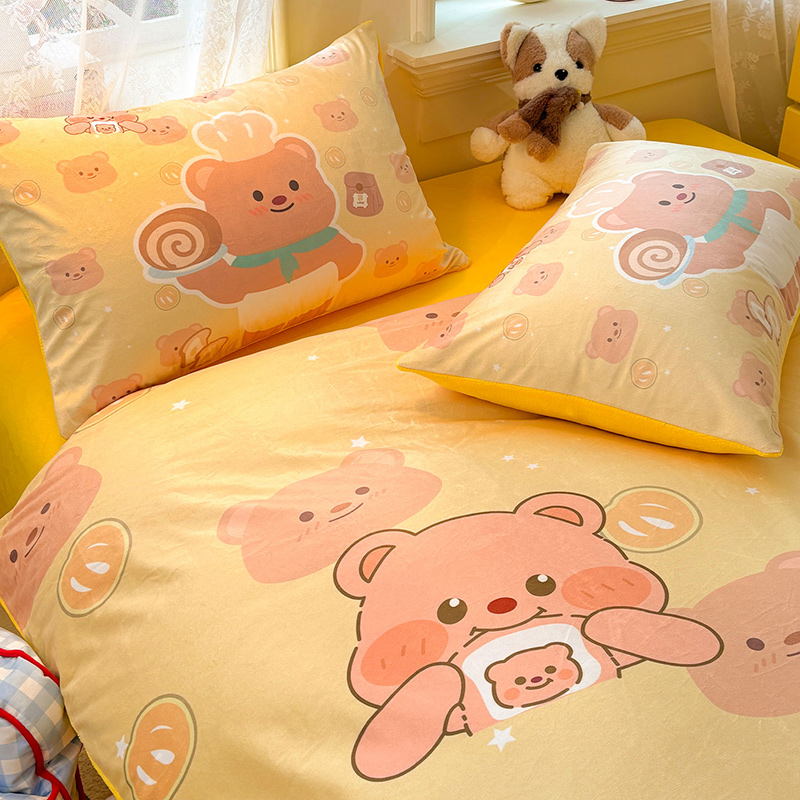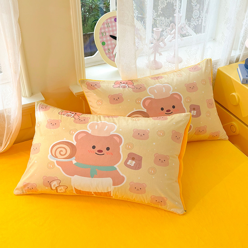 商品名称:ds生活馆 2026新款大版卡通水晶绒牛奶绒单枕套 黄油小熊