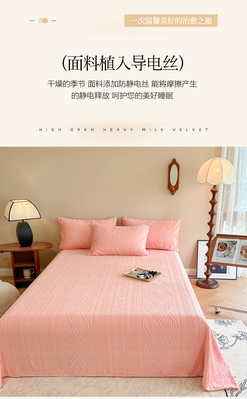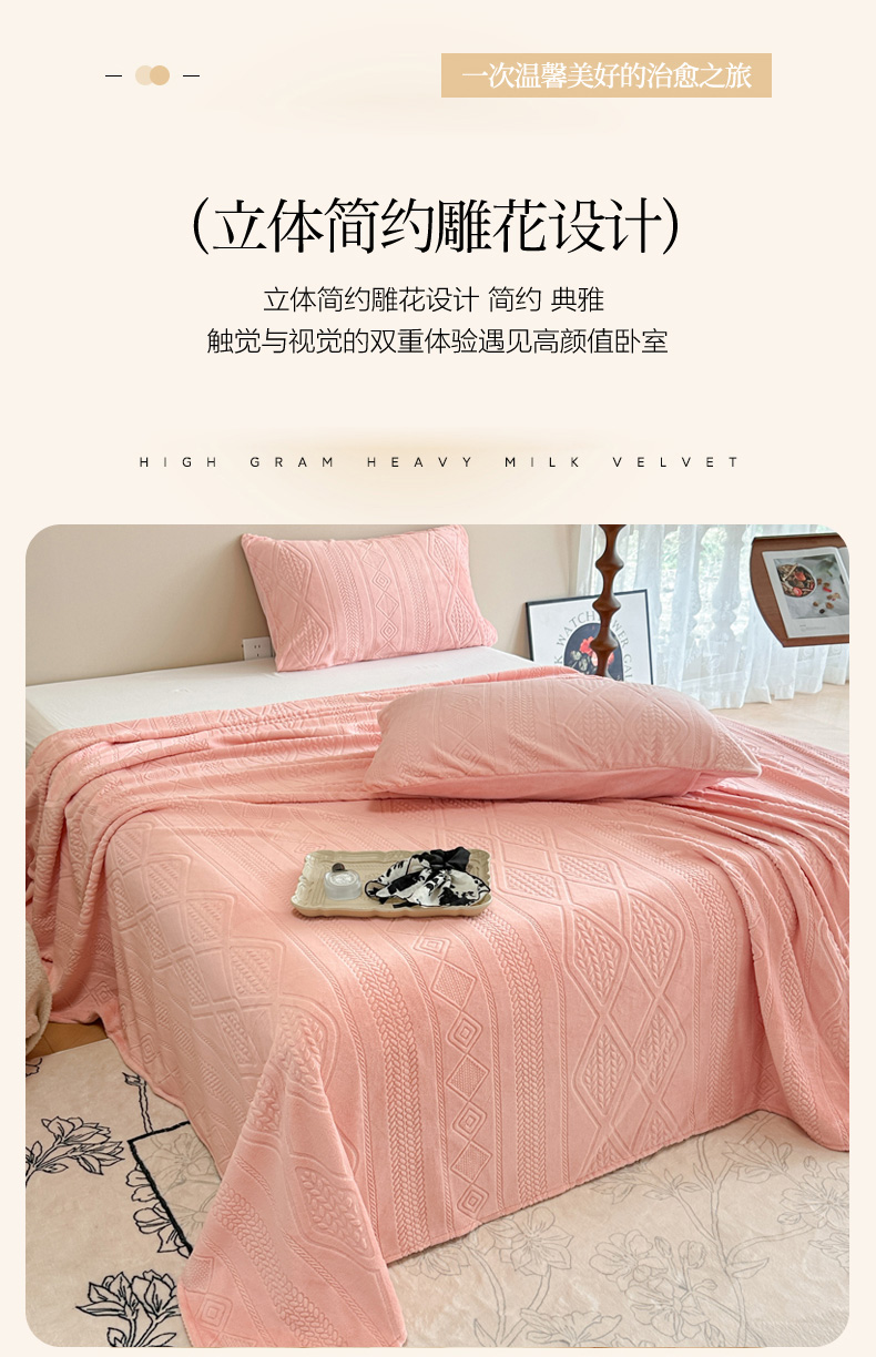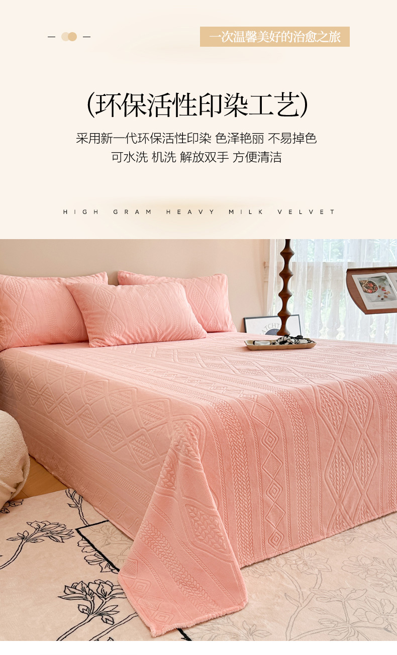 • 91家纺网 家纺一手货源 找家纺 眠博士 2025新款雕花加厚牛奶绒单品床单 床单单件-卡洛 单品床单-卡洛粉