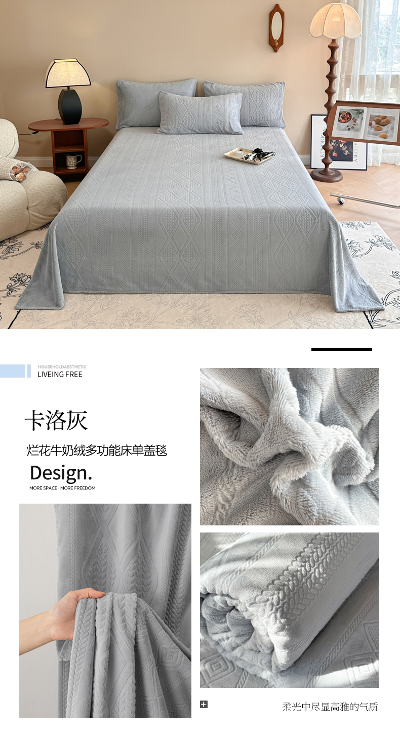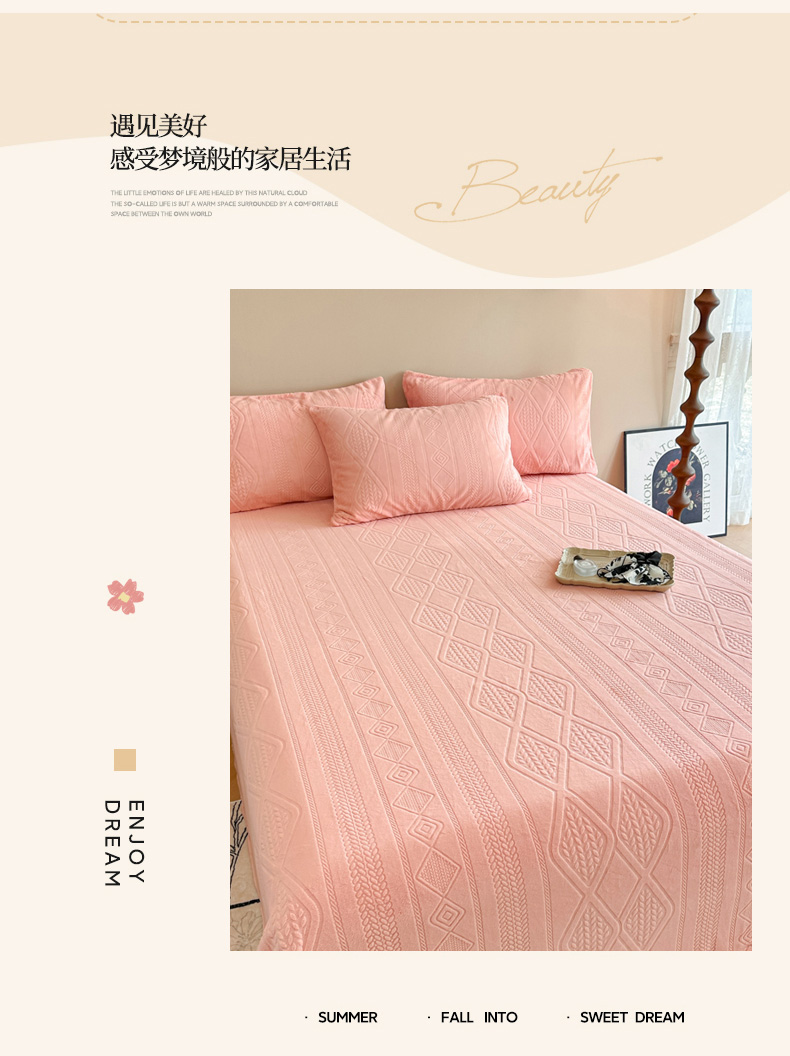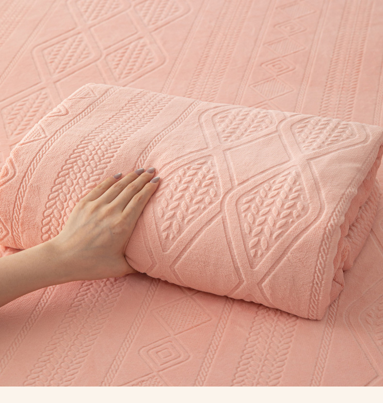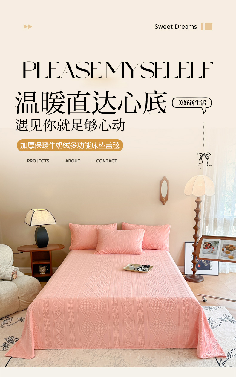 • 91家纺网 家纺一手货源 找家纺 眠博士 2025新款雕花加厚牛奶绒单品床单 床单单件-卡洛 单品床单-卡洛粉