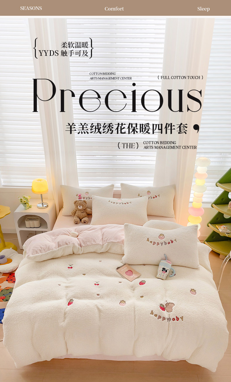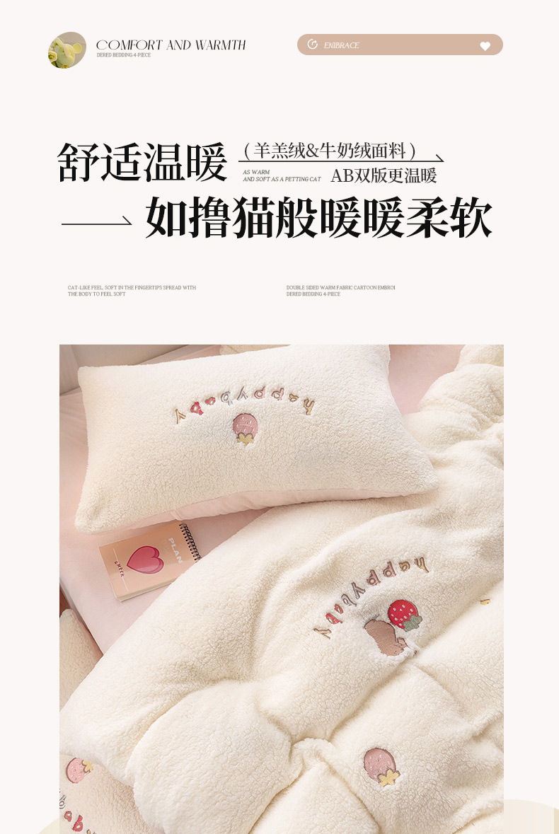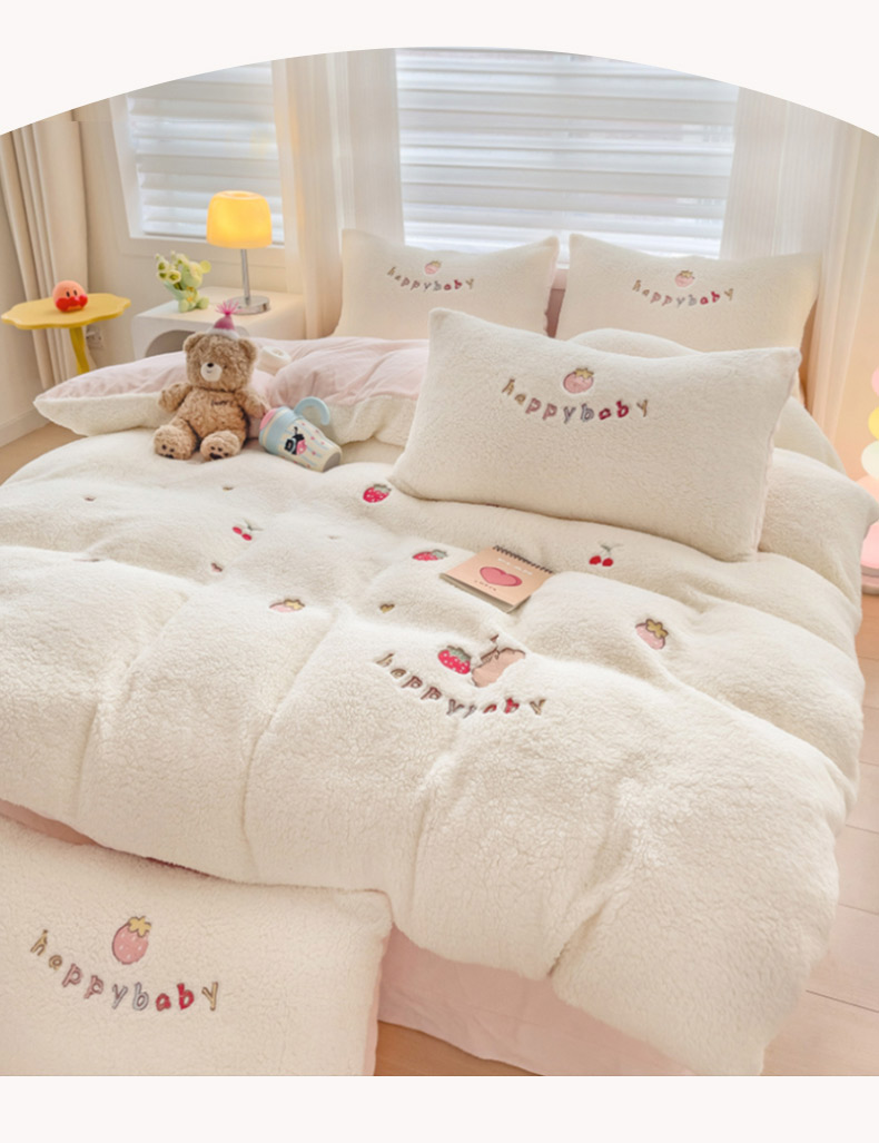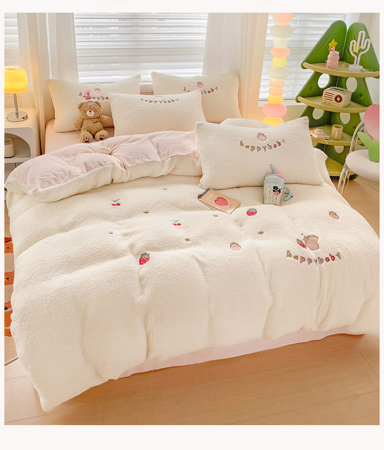 (总)亲亲公主 2025新款羊羔绒绣花保暖四件套-草莓熊
