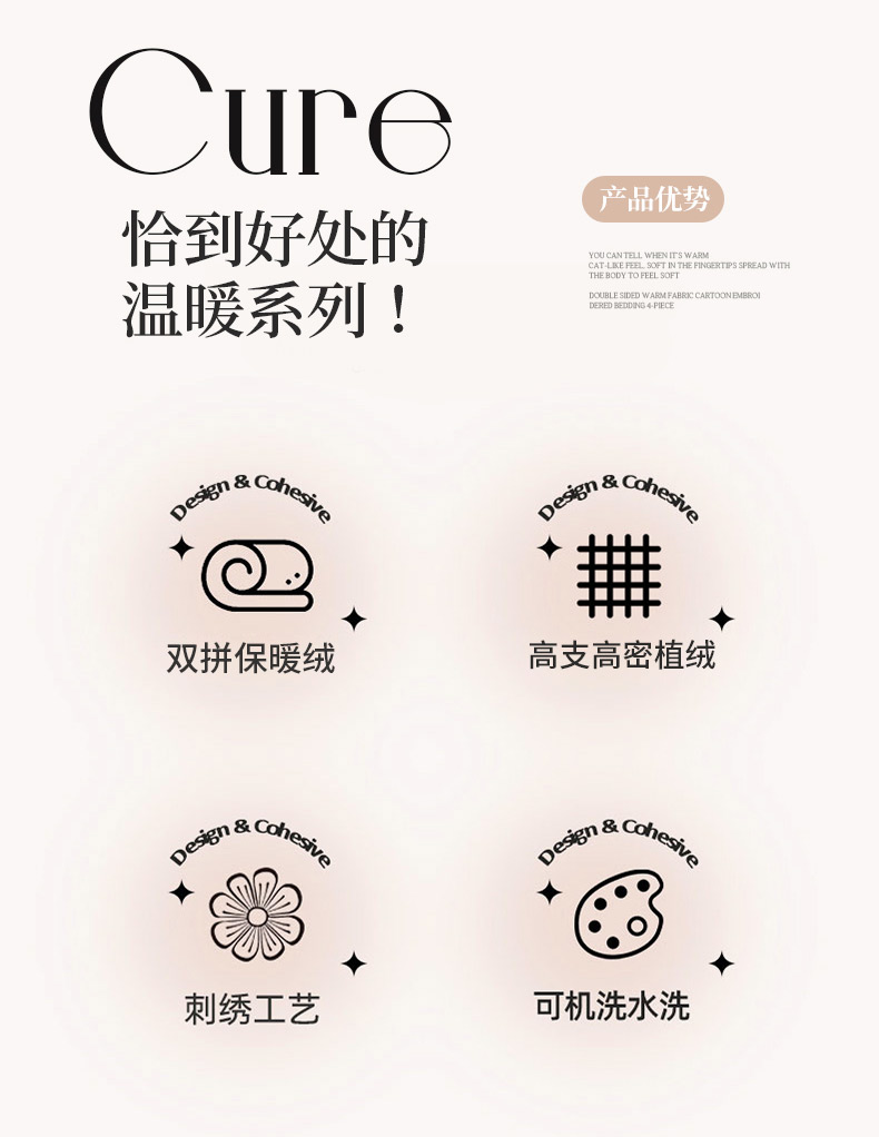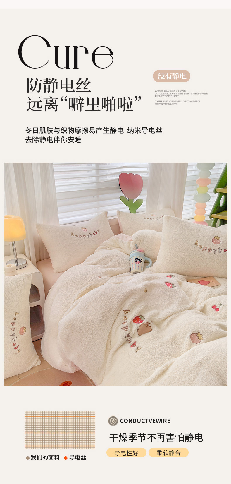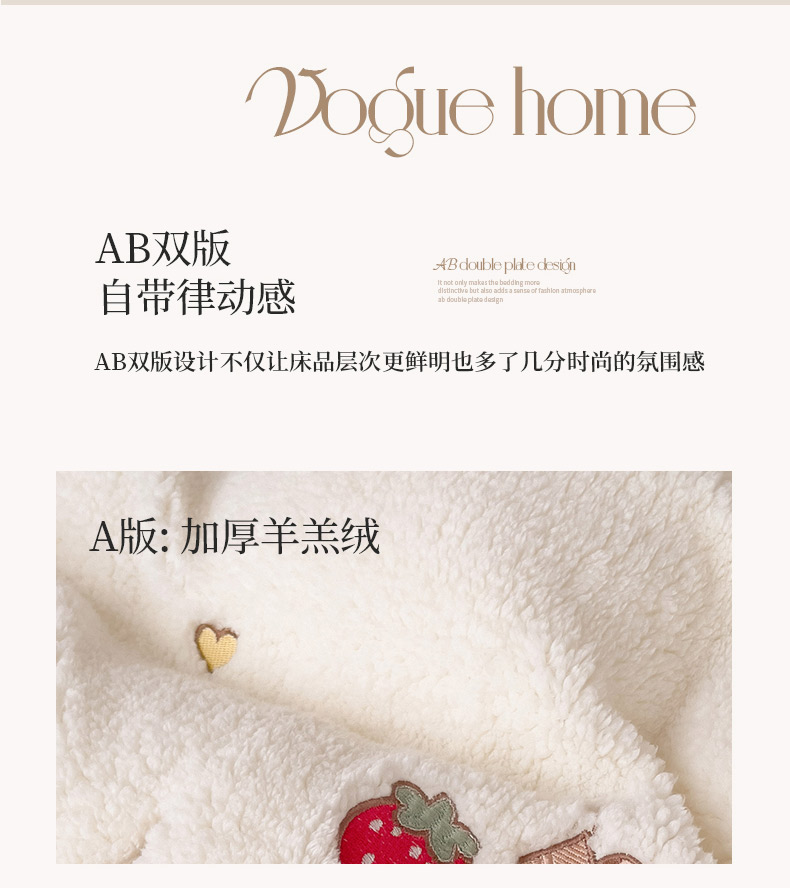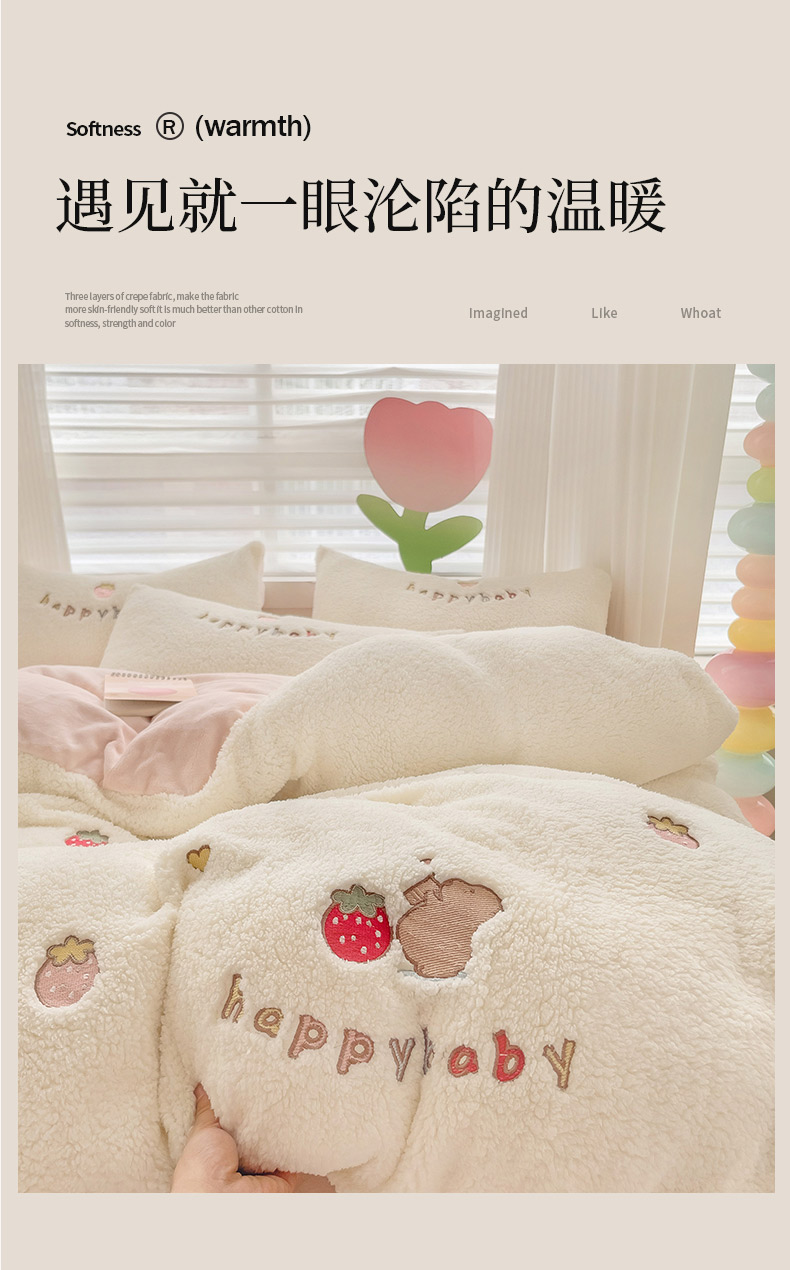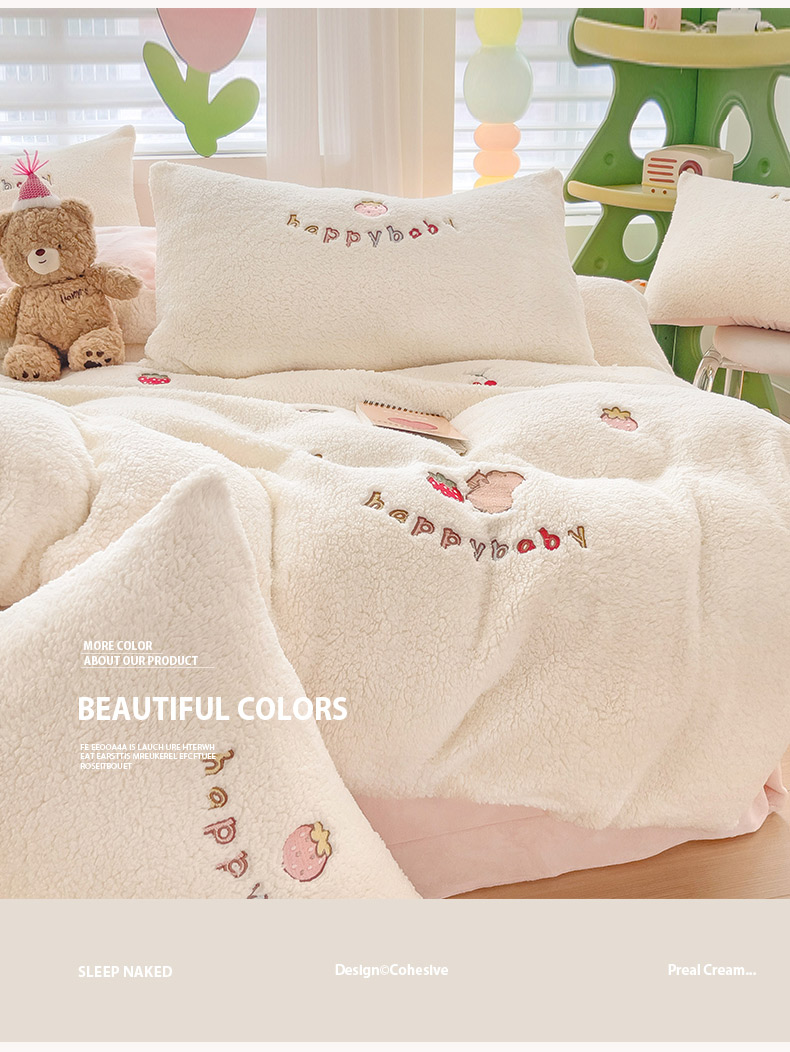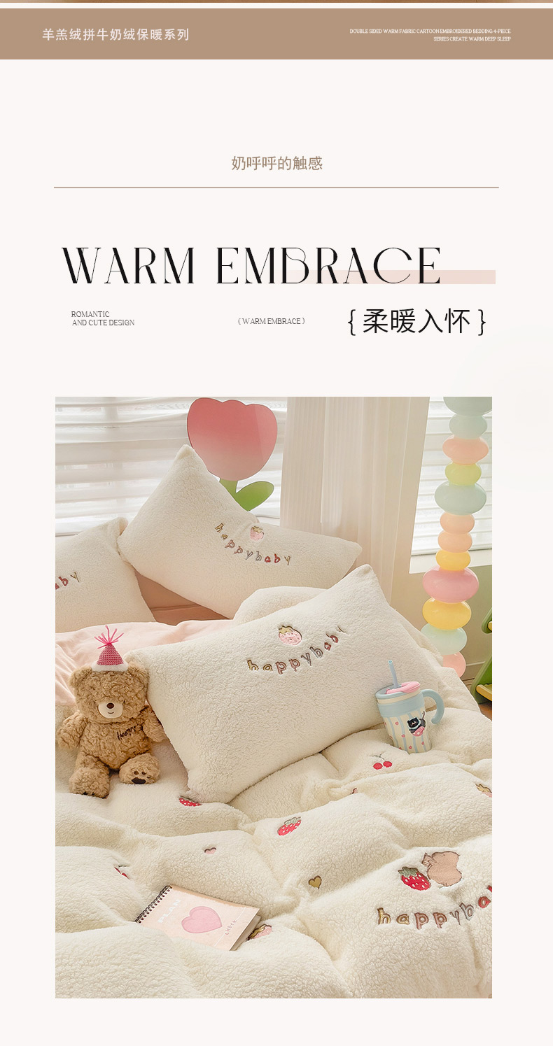 商品名称:(总)亲亲公主 2025新款羊羔绒绣花保暖四件套-草莓熊