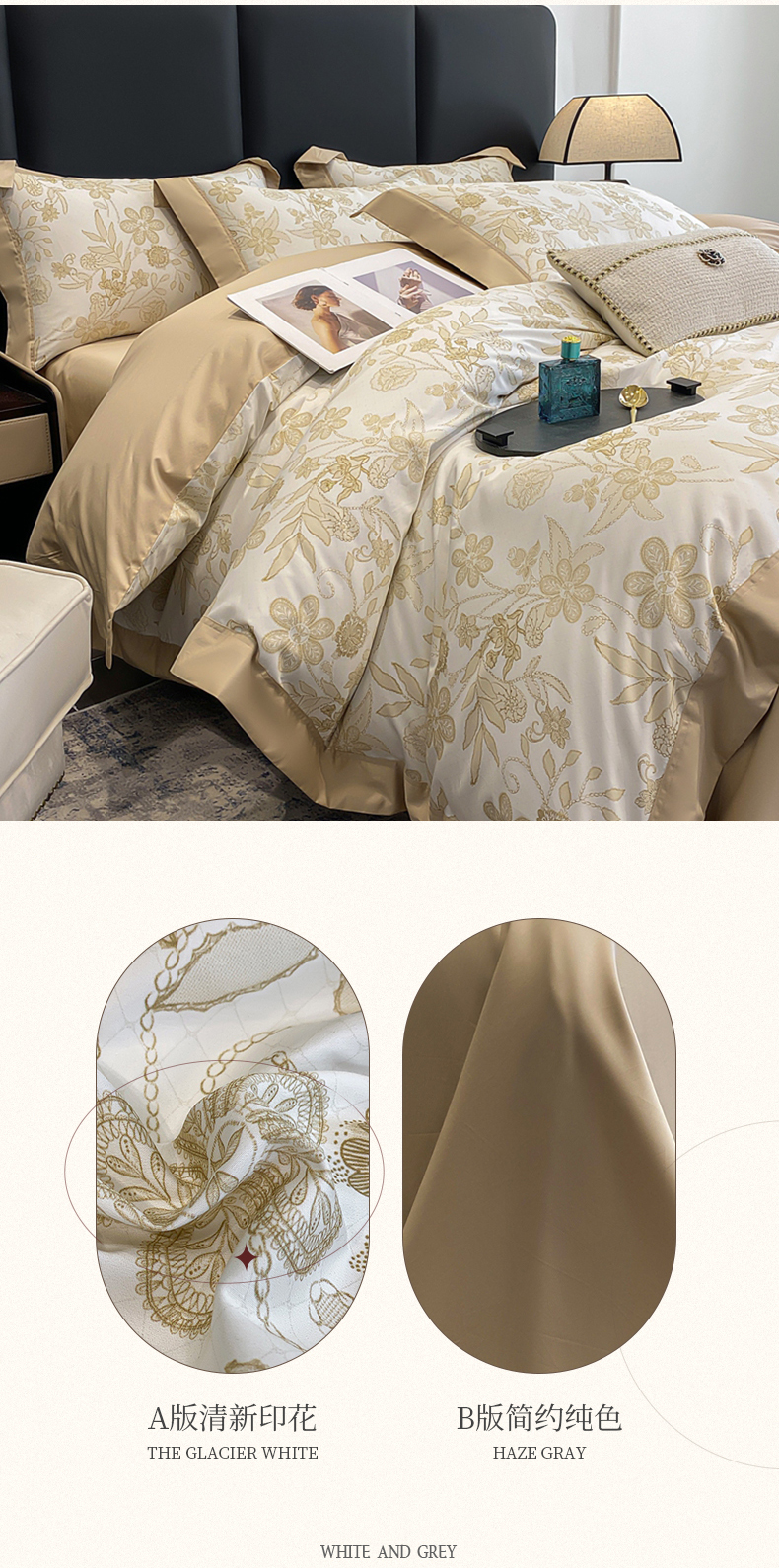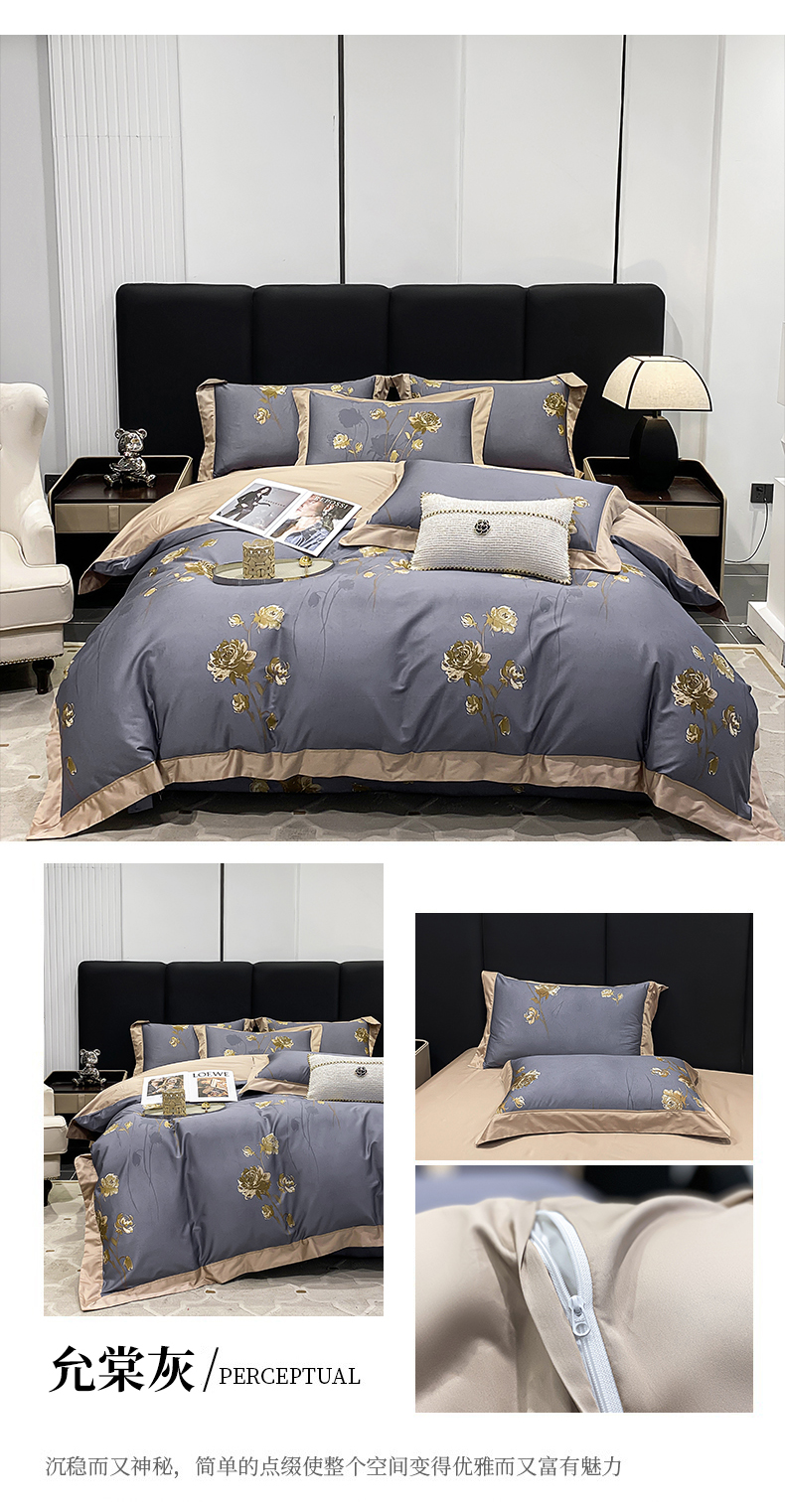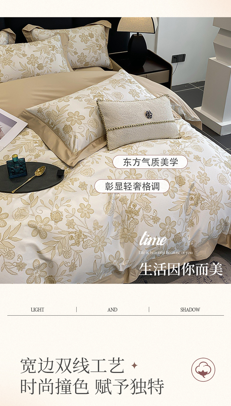 (总)娇逸家居 2025新款高克重A类数码印花牛奶绒双拼边款四件套,采薇灰,扶桑,浅影,秋灵粉,秋灵黄,秋灵绿,舜华粉,采薇米,舜华绿,仙客,栩蝶,璎珞,玉树,芸芙