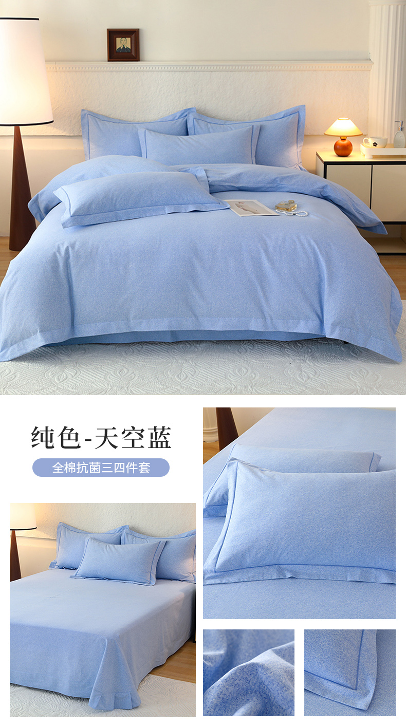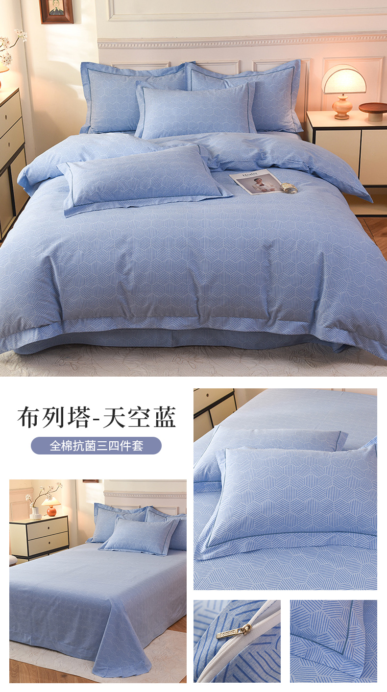 商品名称:磨毛世家家纺 2025新款生态四件套 布列塔-天空蓝