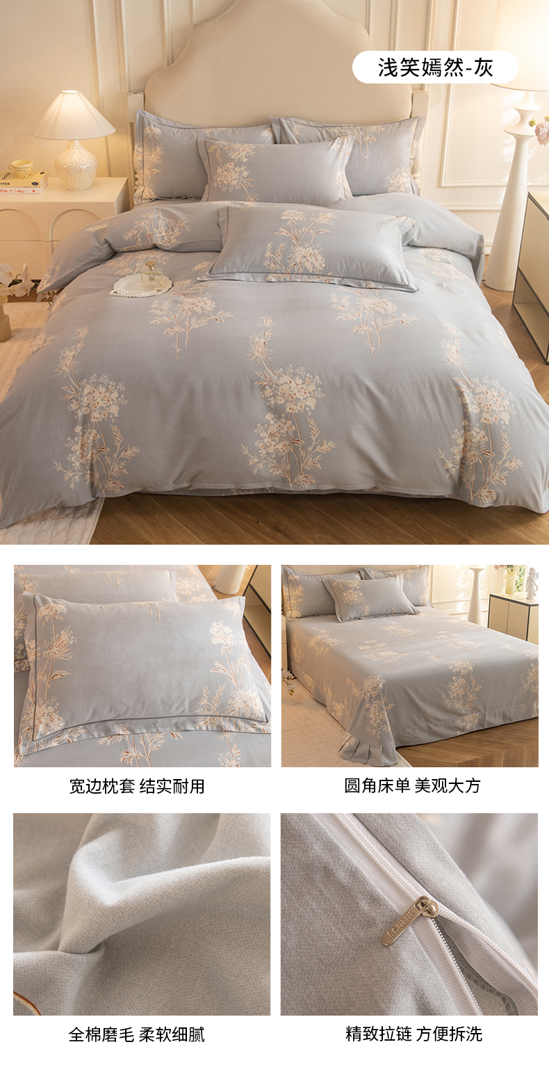(总)磨毛世家家纺 2025新款全棉四件套纯棉加厚生态磨毛套件,北美风情-灰,布列塔-粉红,布列塔-幻影灰,布列塔-浅咖,布列塔-浅紫,布列塔-天空蓝,春和景明-粉,春和景明-蓝,粉色,花之盛宴,花枝漫漫-灰,灰色,拉布布-米,洛丽塔-绿,玫瑰物语-灰,梦初雨-蓝,南瓜甜心-灰,苹果绿,浅咖色,浅笑嫣然-灰,浅紫,天空蓝,向云端-粉,小乔人家-黄,亚马逊-灰,瑶花知-蓝,叶韵-蓝,银杏叶-绿,云雨轩-粉,珍妮花园-蓝,北海道-咖,北海道-蓝,丰收季节,飘摇-蓝,时尚都市-蓝