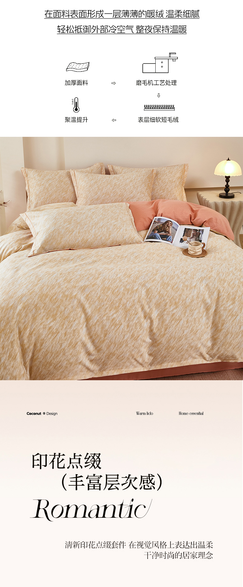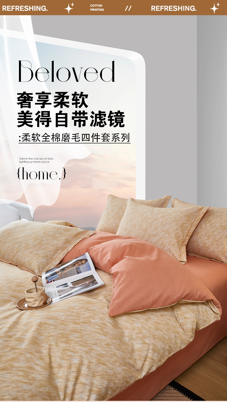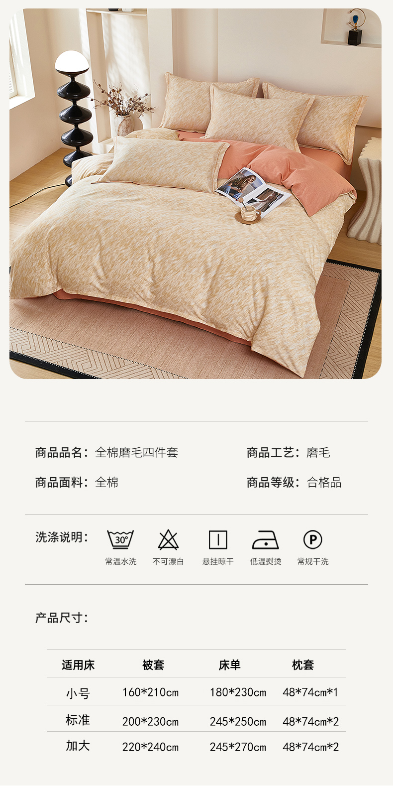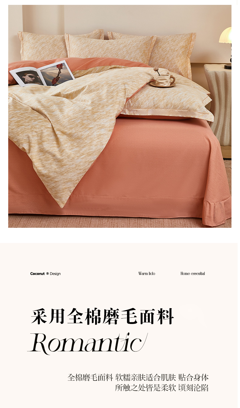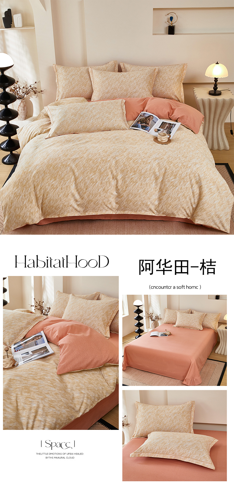 商品名称:雲归梦 2025新款纯棉加厚磨毛多规格磨毛四件套阿华田-桔