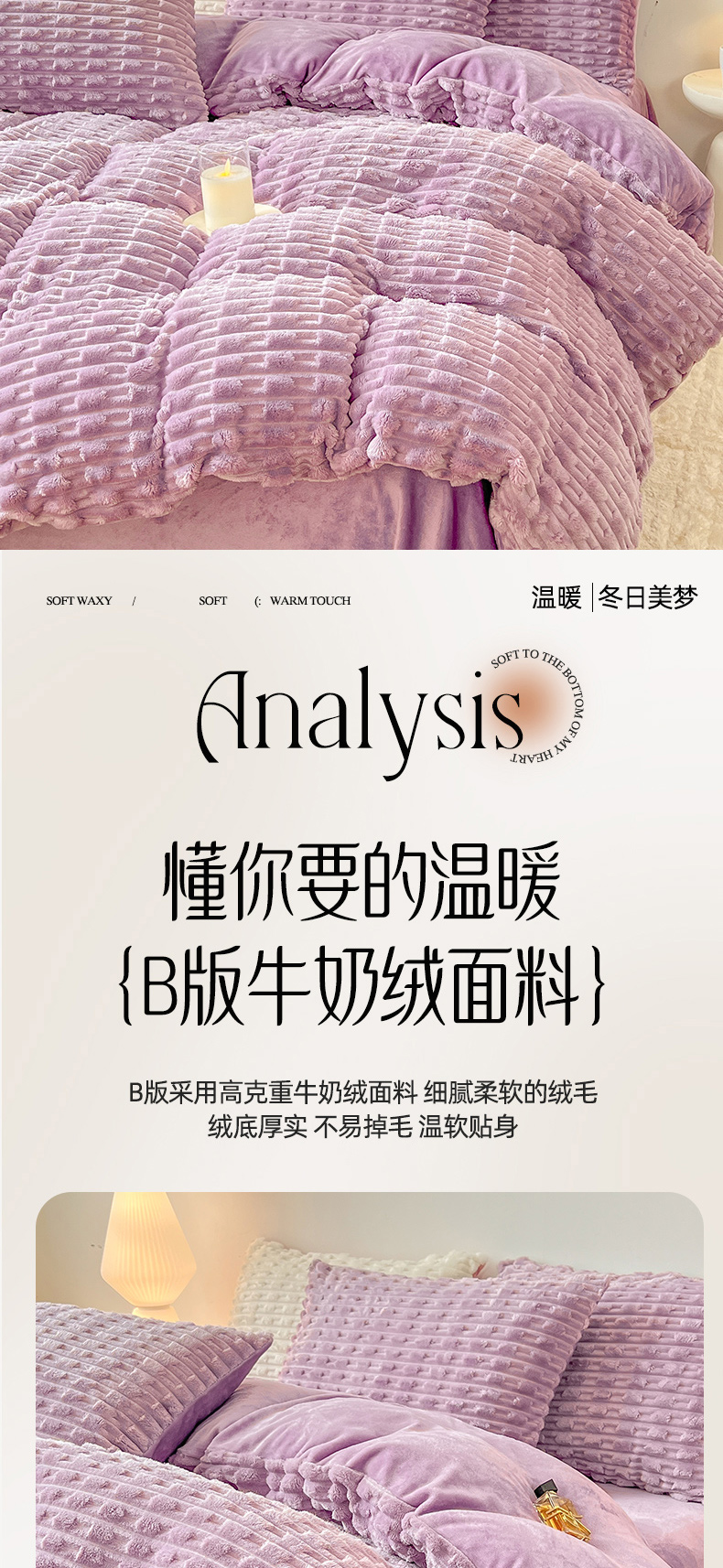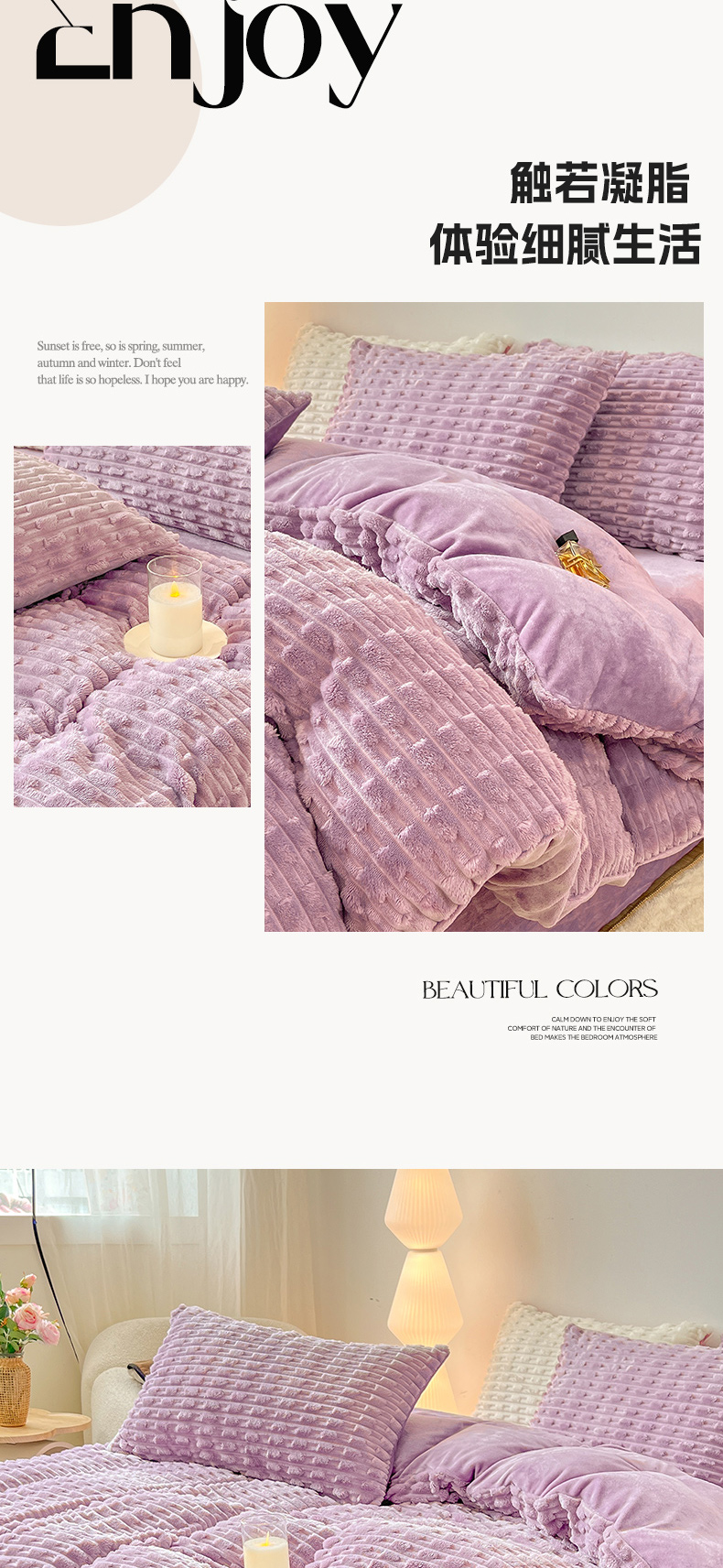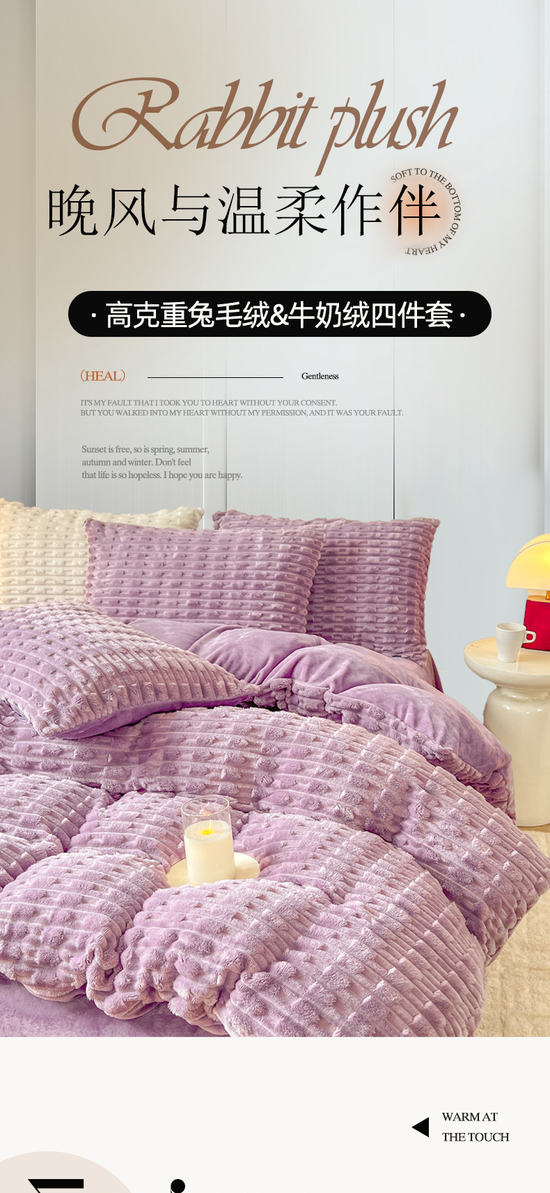当前位置: 91家纺网 > 商品网购 > 床品套件 > 四件套 > 其它四件套 > 爱彼家纺 2025新款糖果色兔兔绒套件秋冬加厚牛奶绒四件套-场景二 盈紫紫