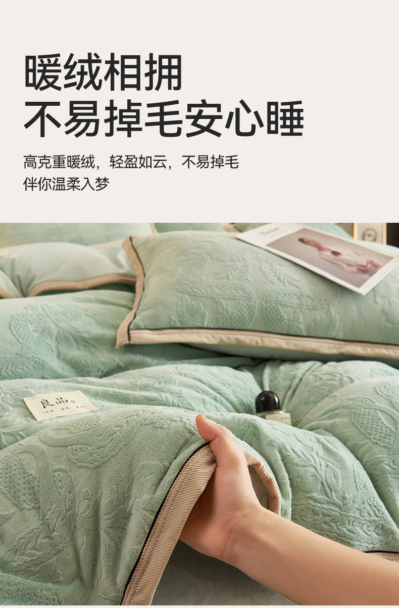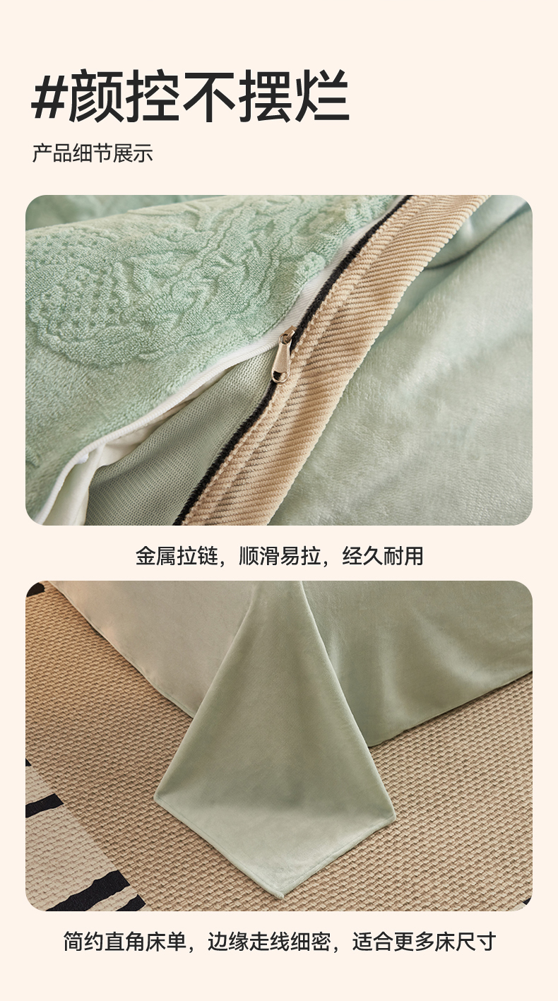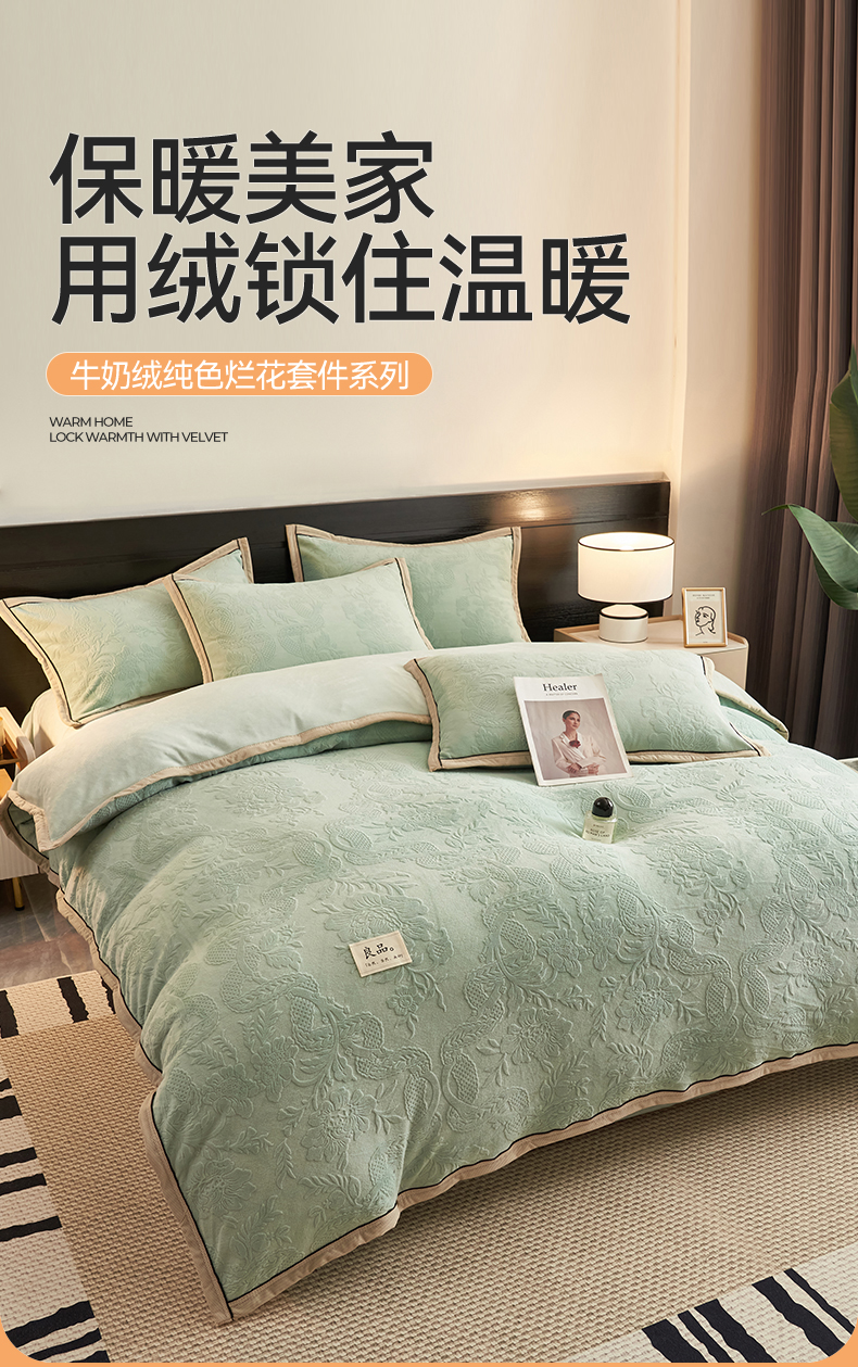 当前位置: 91家纺网 > 商品网购 > 床品套件 > 四件套 > 牛奶绒四件套 > 恒爱家纺 2025新款牛奶绒纯色烂花四件套 雾绕山岚-抹茶绿