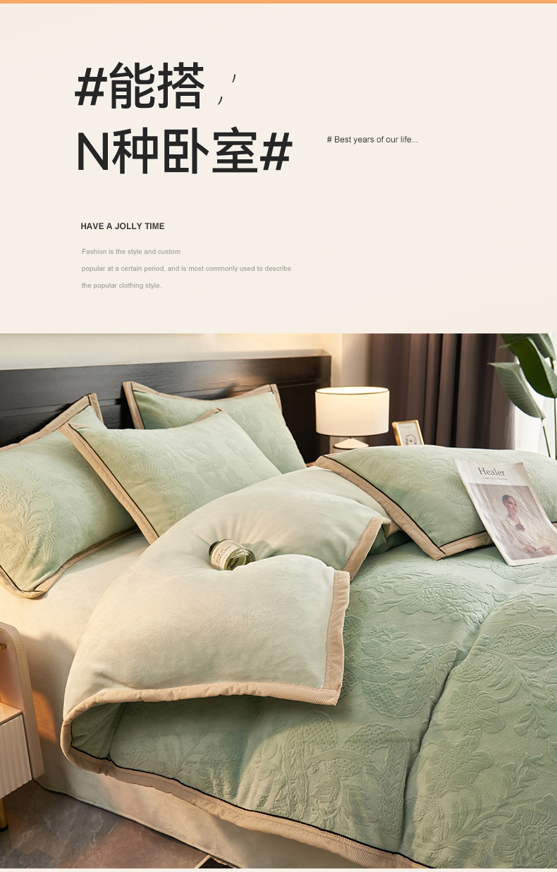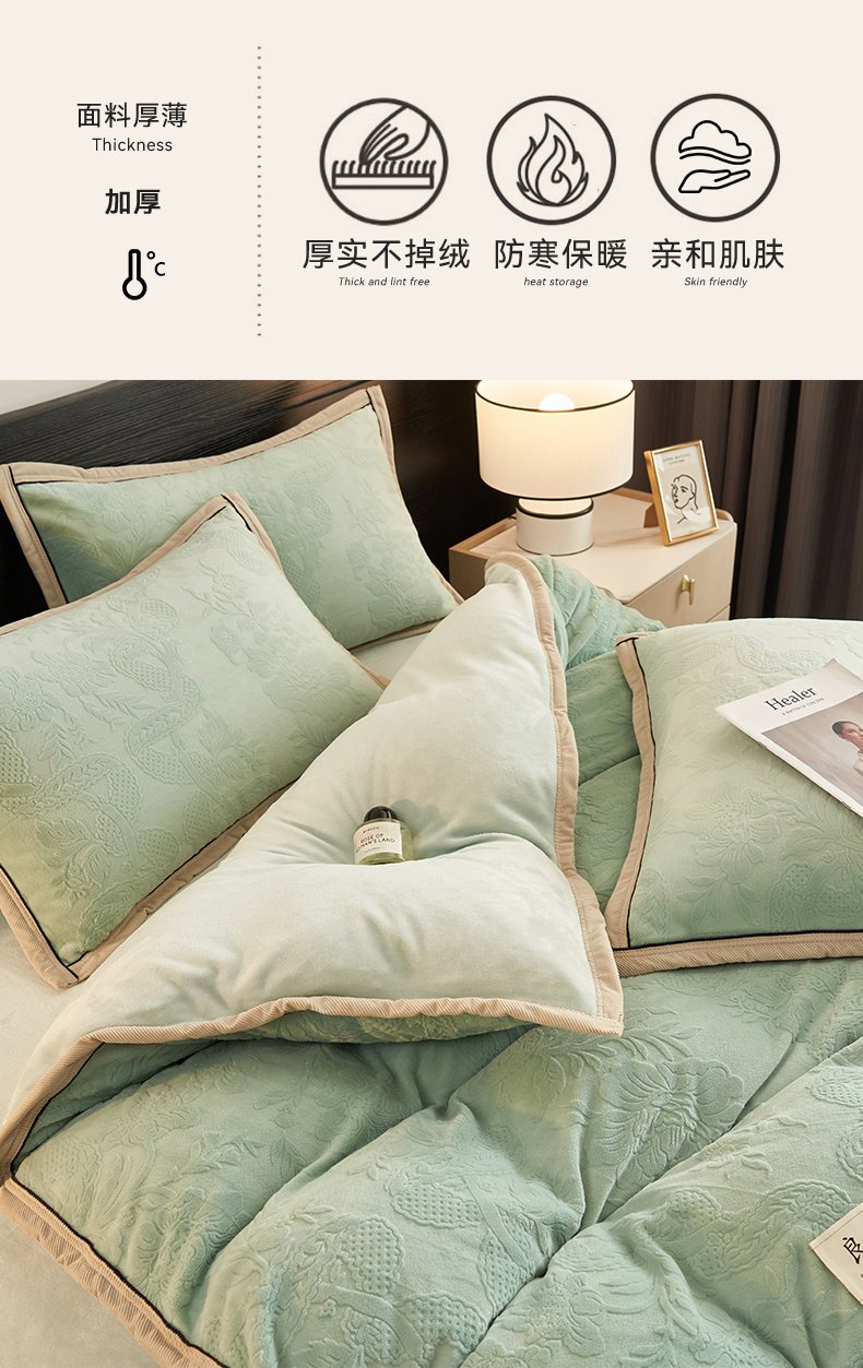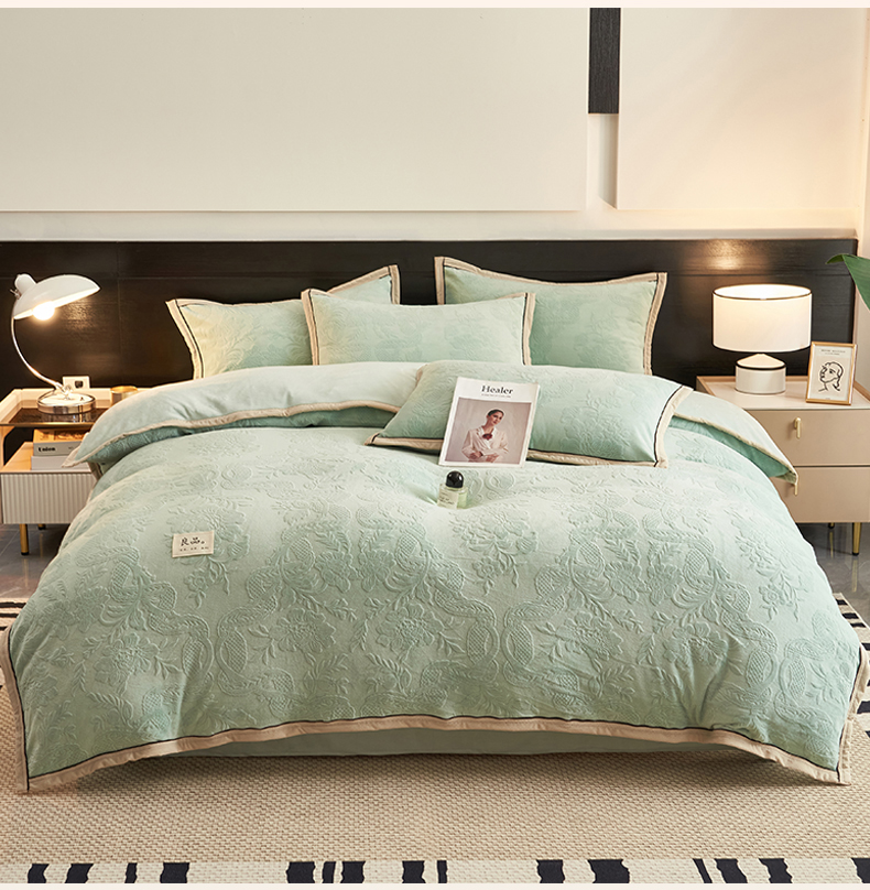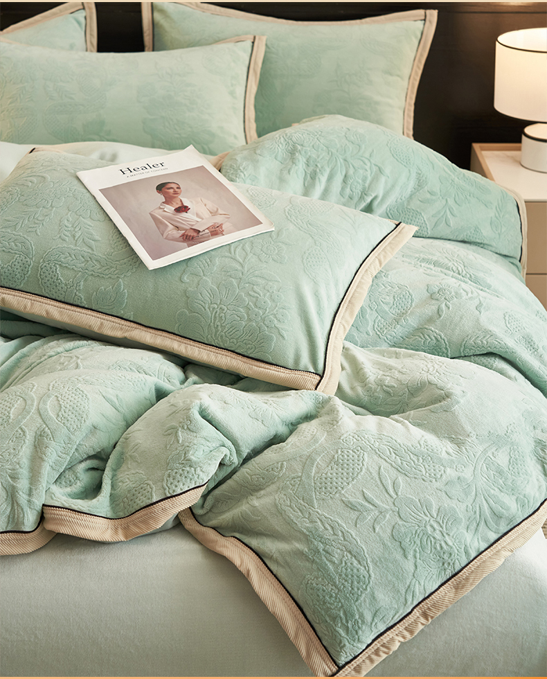 当前位置: 91家纺网 > 商品网购 > 床品套件 > 四件套 > 牛奶绒四件套 > 恒爱家纺 2025新款牛奶绒纯色烂花四件套 雾绕山岚-抹茶绿