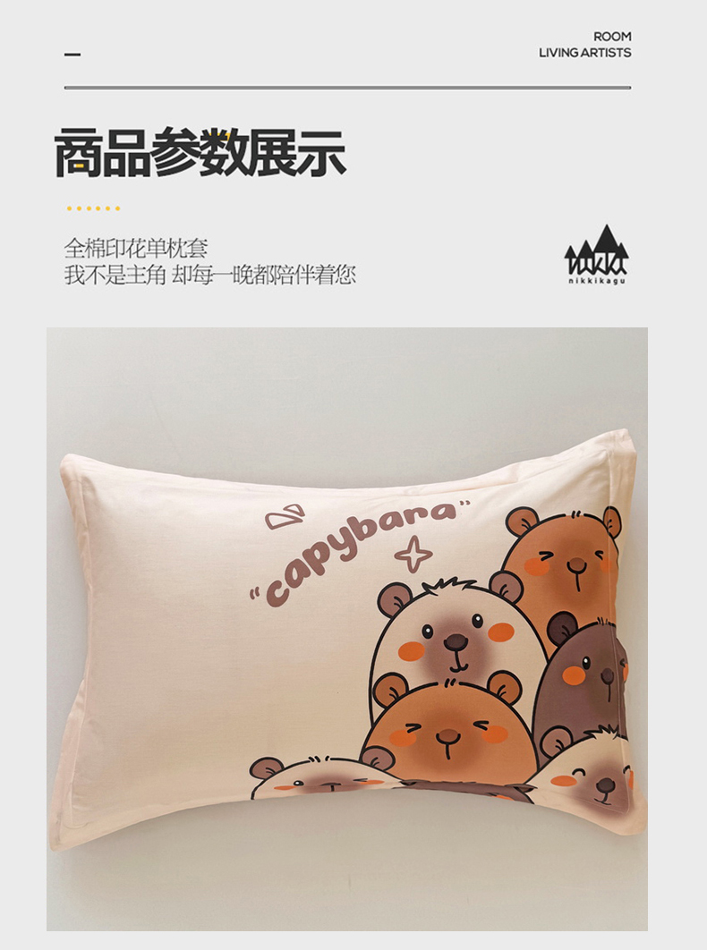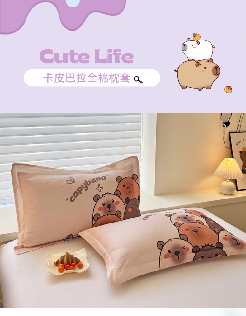 蘭菲家纺 2025新款全棉大版卡皮巴拉系列单品枕套 豚一家