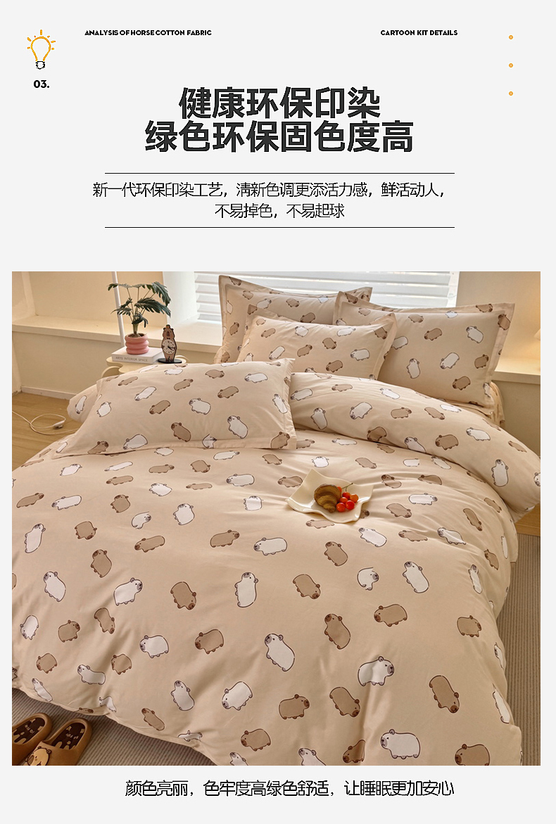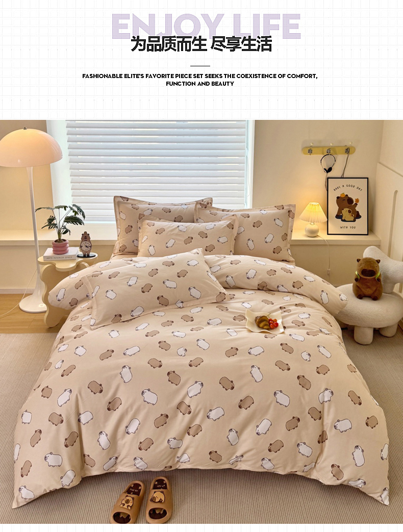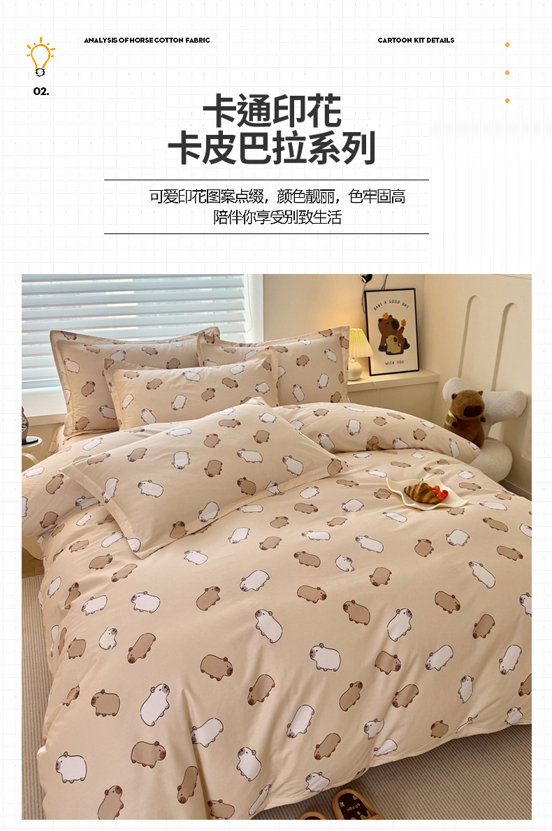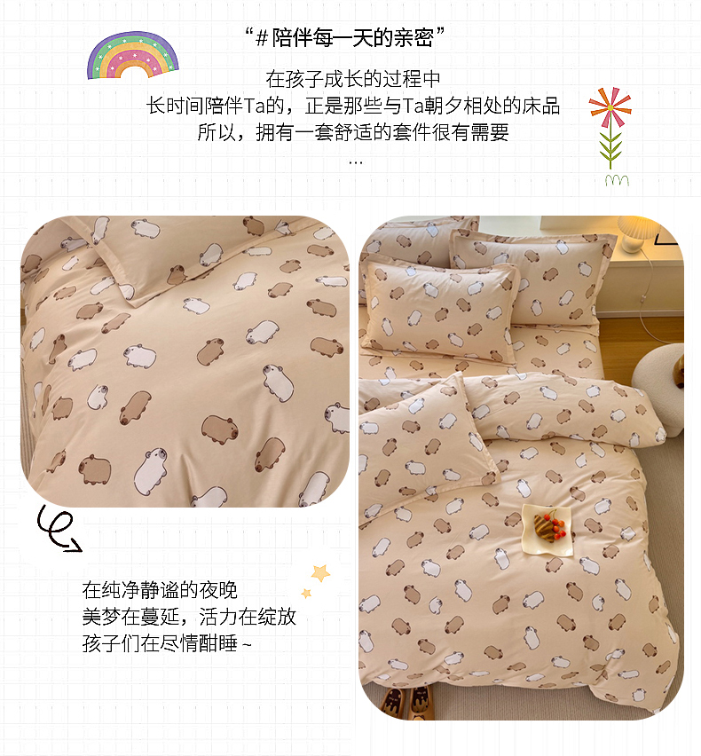 当前位置: 91家纺网 > 商品网购 > 床品套件 > 四件套 > 全棉普通四件套 > 蘭菲家纺 2025新款全棉小版卡皮巴拉系列四件套 小奶豚