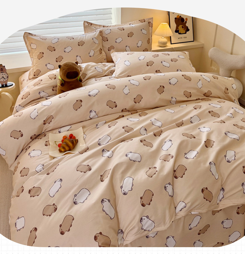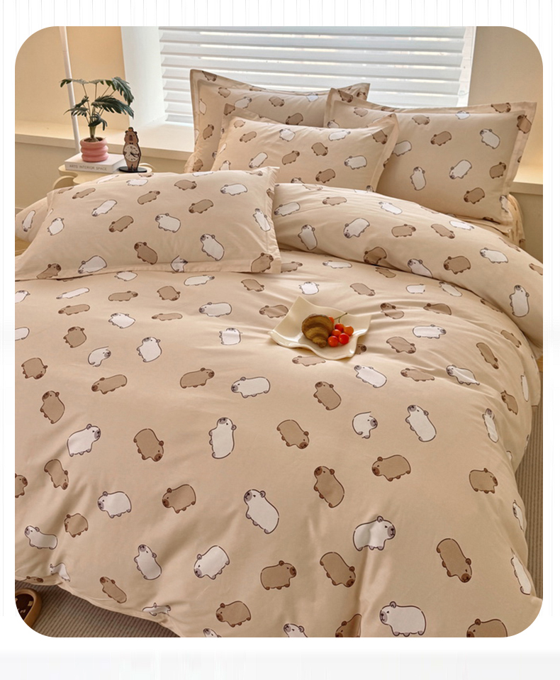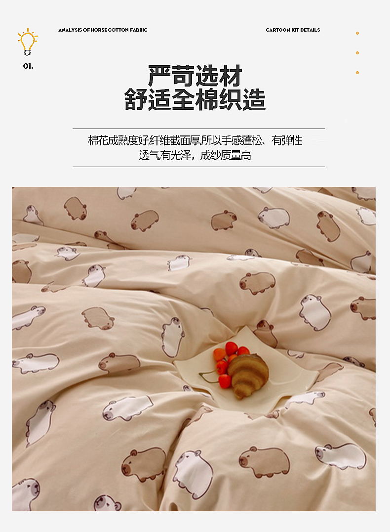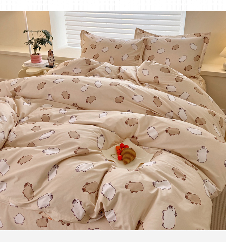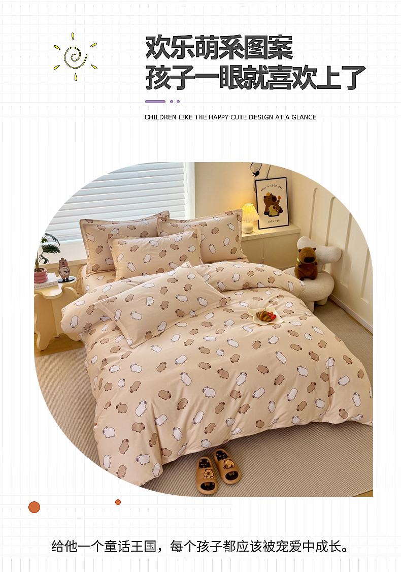 当前位置: 91家纺网 > 商品网购 > 床品套件 > 四件套 > 全棉普通四件套 > 蘭菲家纺 2025新款全棉小版卡皮巴拉系列四件套 小奶豚