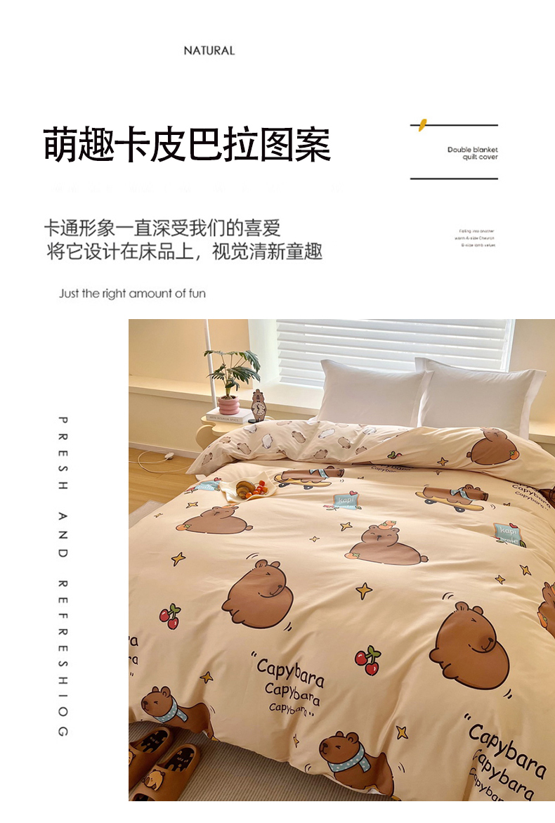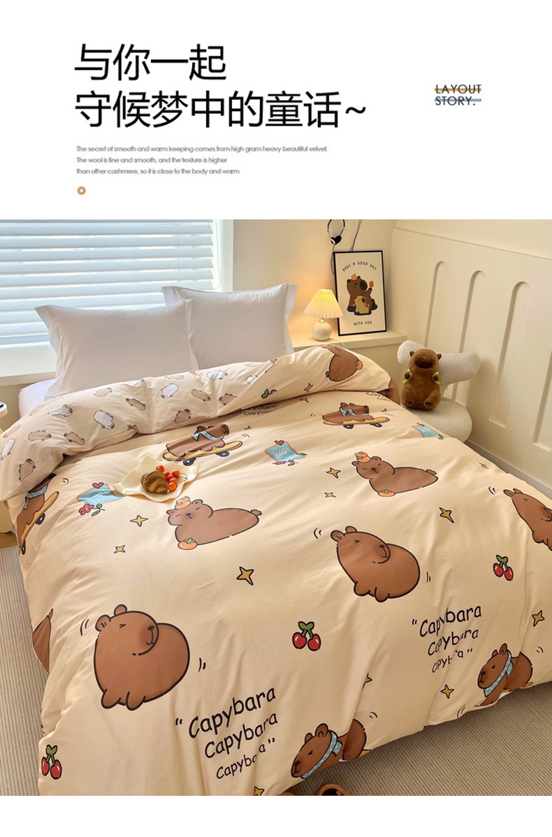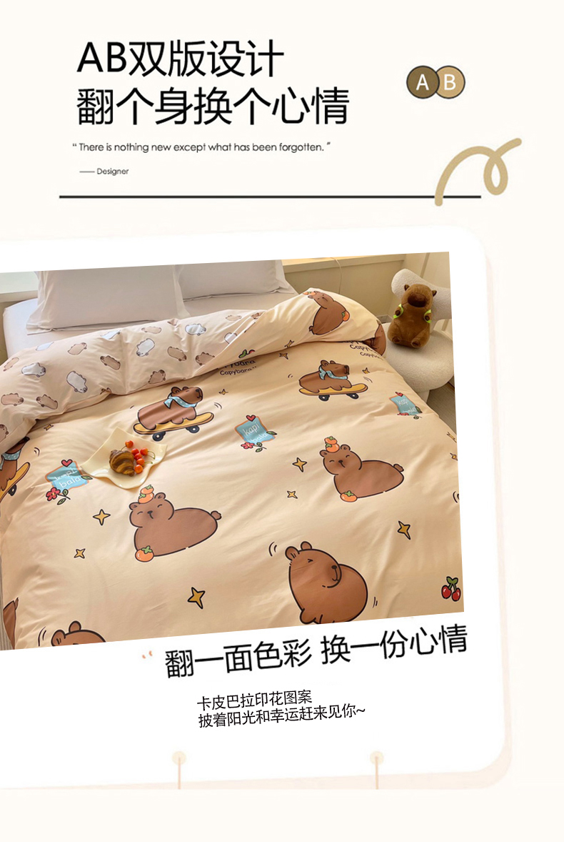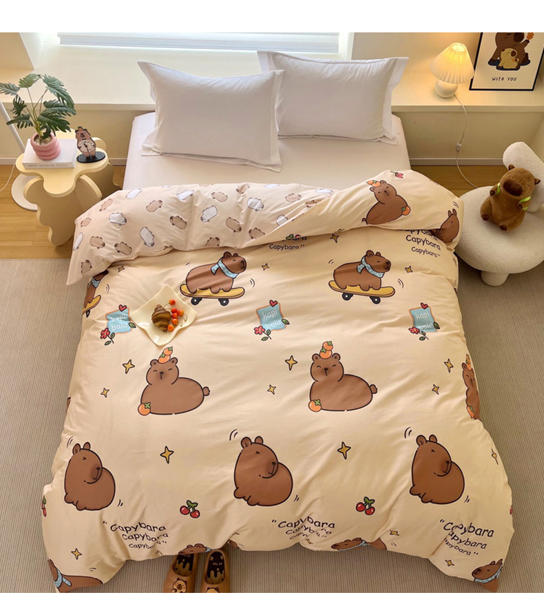 蘭菲家纺 2025新款全棉小版卡皮巴拉系列单品被套 爱滑板