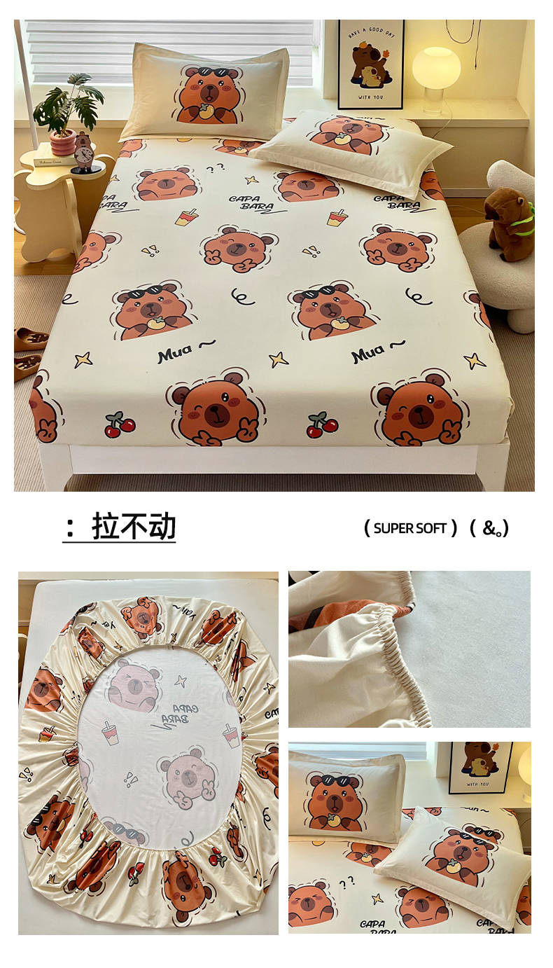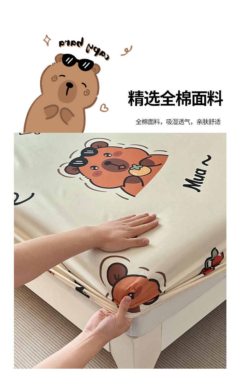 商品名称:蘭菲家纺 2025新款全棉小版卡皮巴拉系列单品床笠 拉不动