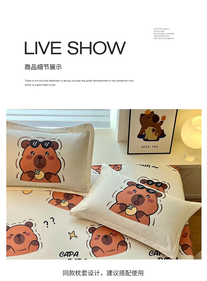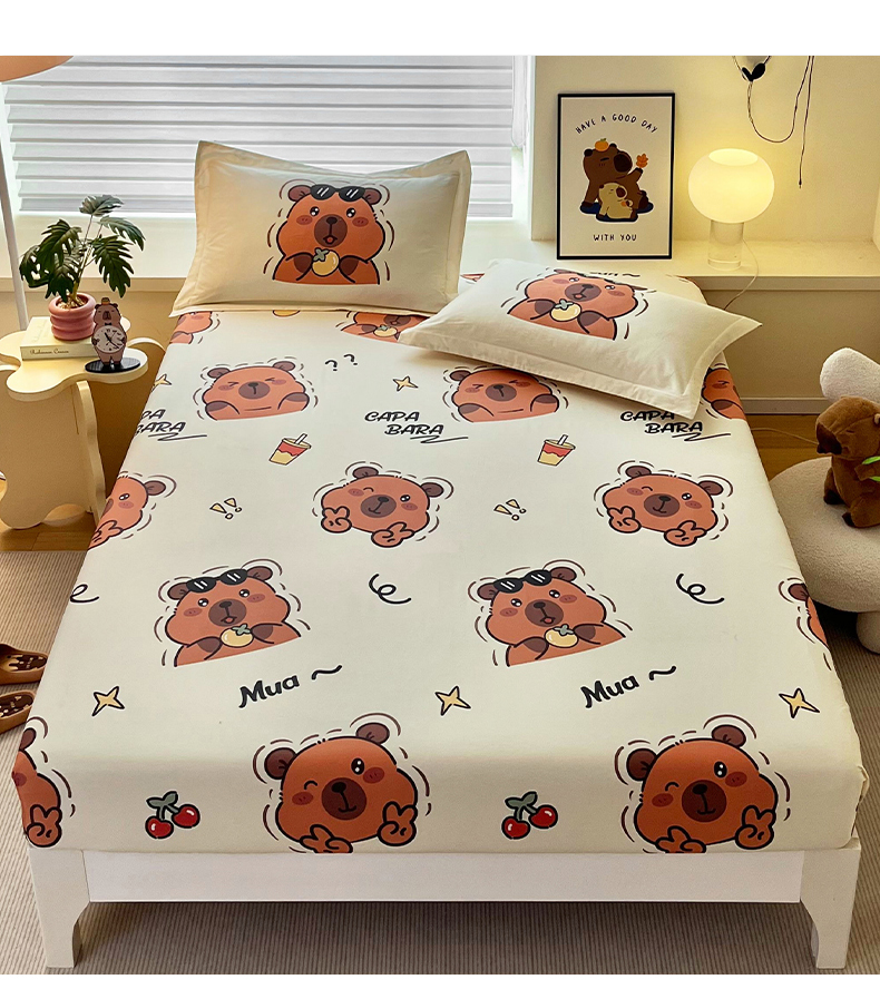 蘭菲家纺 2025新款全棉小版卡皮巴拉系列单品床笠 拉不动