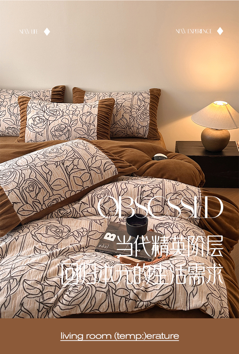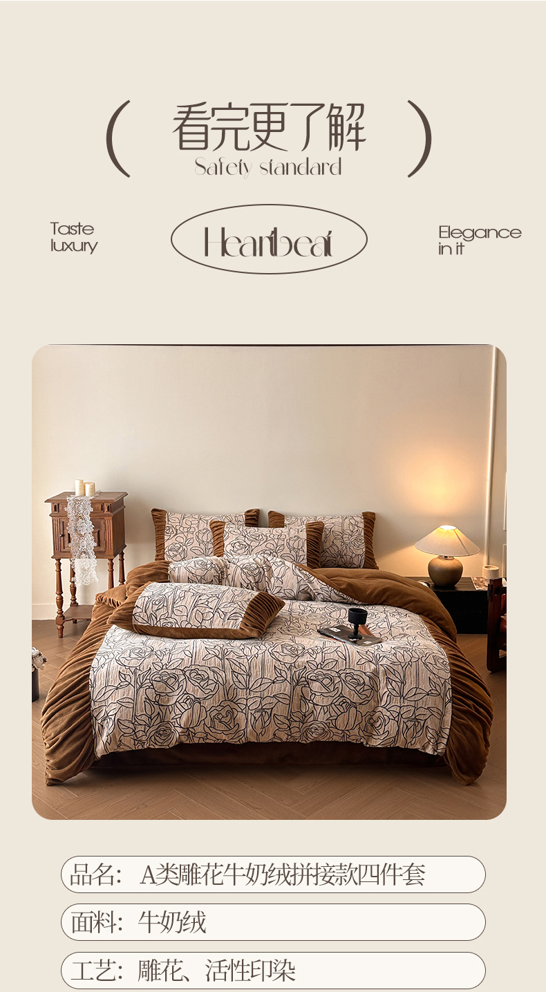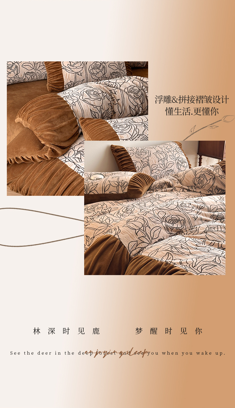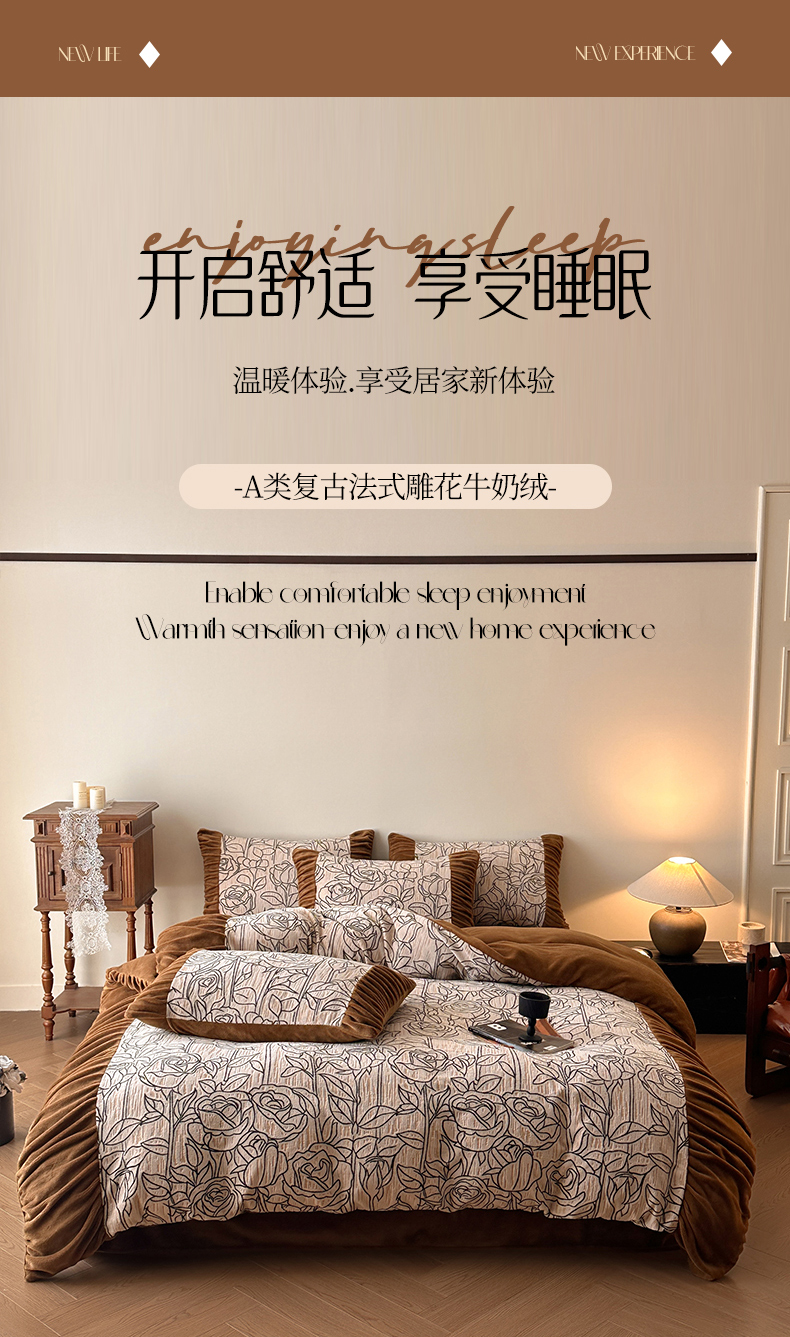 (总)羚羊语家纺 2025新款浮雕绒轻法式牛奶绒四件套雕花绒复古ins风立体着色烂花牛奶绒提花床单三件套-香榭落叶,香榭落叶-花烬影,香榭落叶-小夜曲,香榭落叶-塞纳吻,香榭落叶-巴洛克,香榭落叶-浮梦绘,香榭落叶-洛丽纱