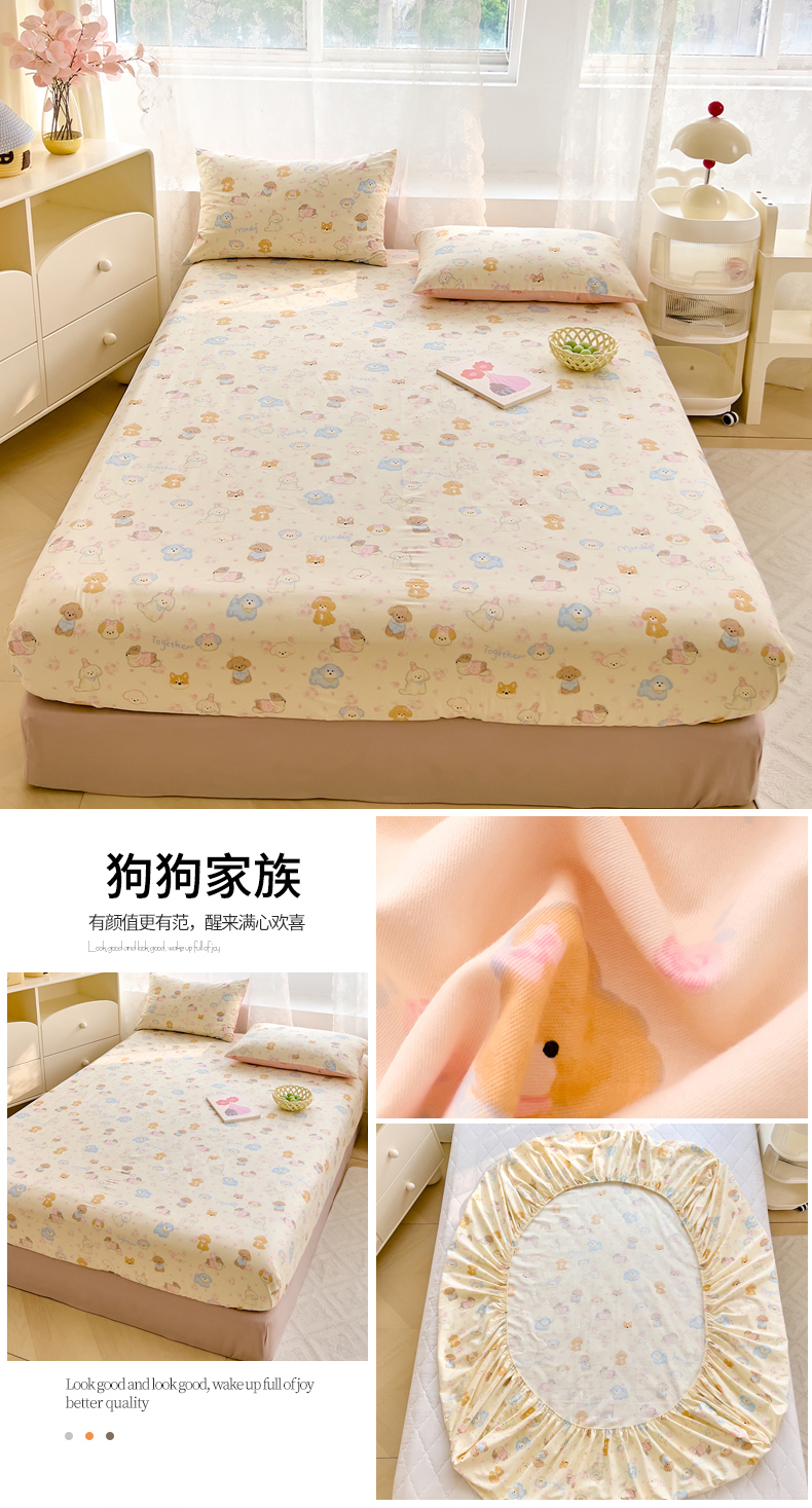 • 91家纺网 家纺一手货源 找家纺 DoDo 兜兜 2026新款卡通全棉纯棉小清新单品床笠系列 (可定做尺寸) 小狗笔记