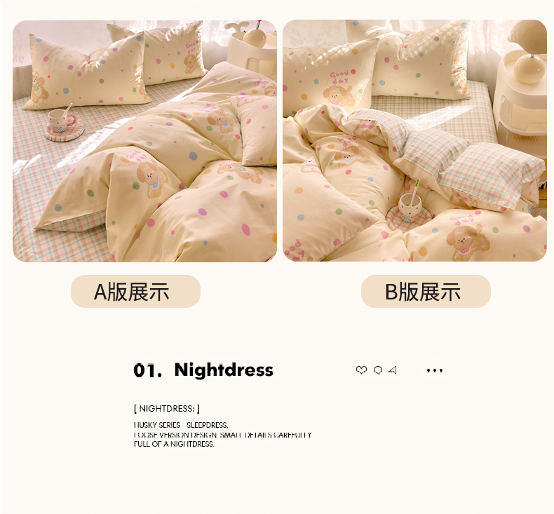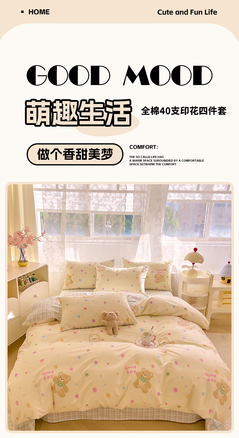 商品名称:DoDo 兜兜 2026新款卡通全棉纯棉小清新三四件套系列 (可定做尺寸) 假日小狗
