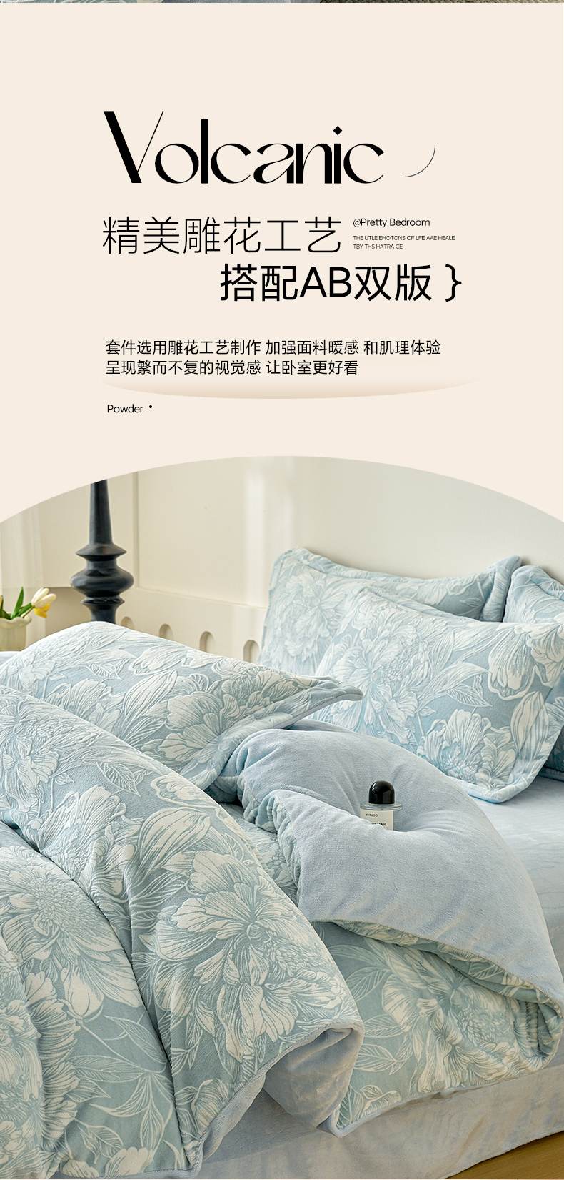 贝诗梦 2025直播8.5斤高克重牛奶绒金貂法莱绒保暖四件套 月光玫瑰,月光玫瑰