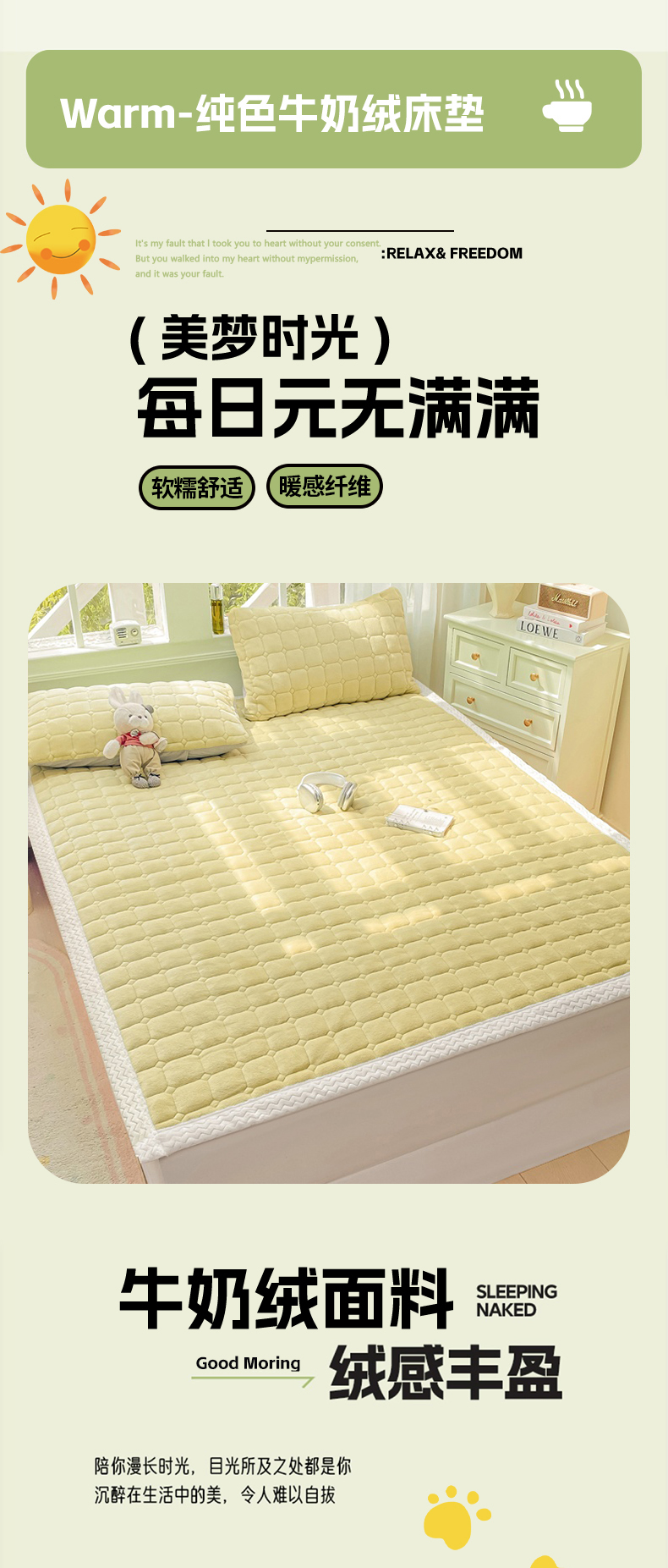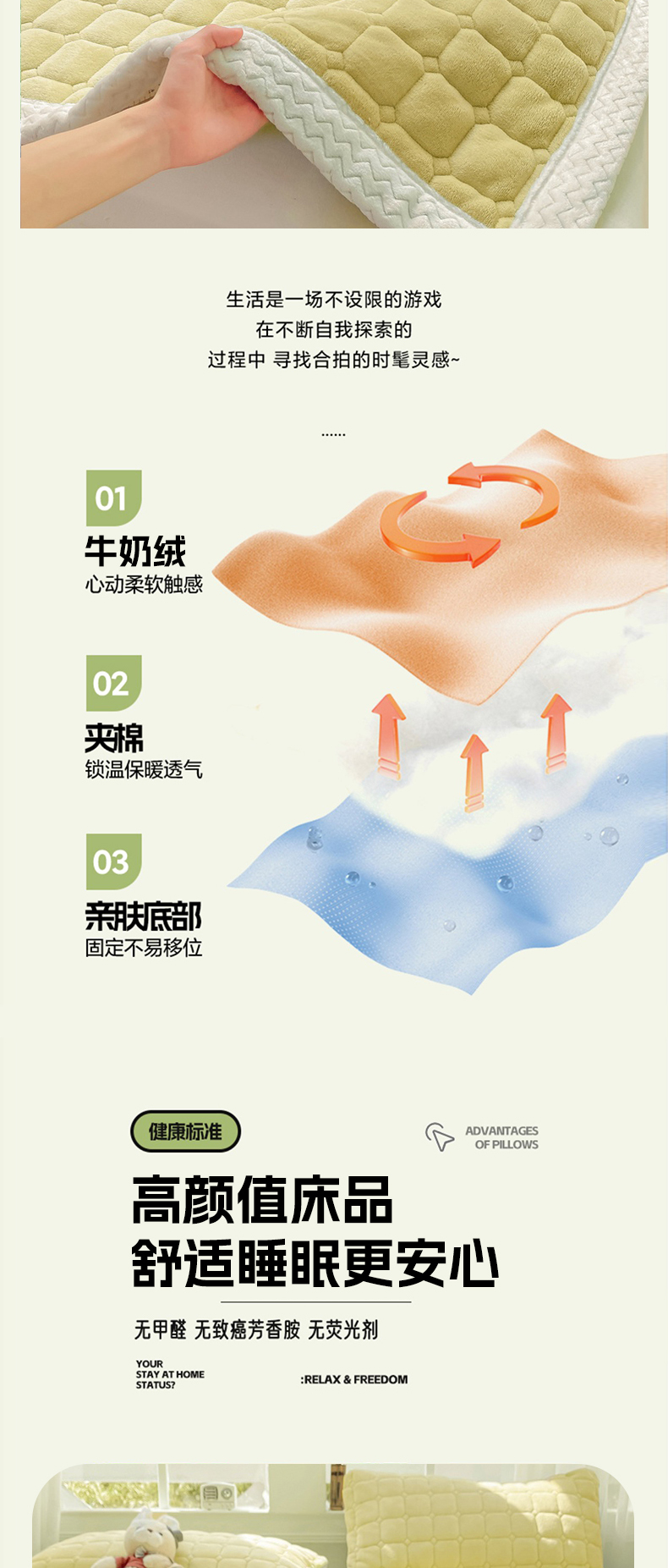 当前位置: 91家纺网 > 商品网购 > 床垫/床褥 > 普通床垫 > 2025年新款纯色牛奶绒夹棉床垫-风格一 奶黄