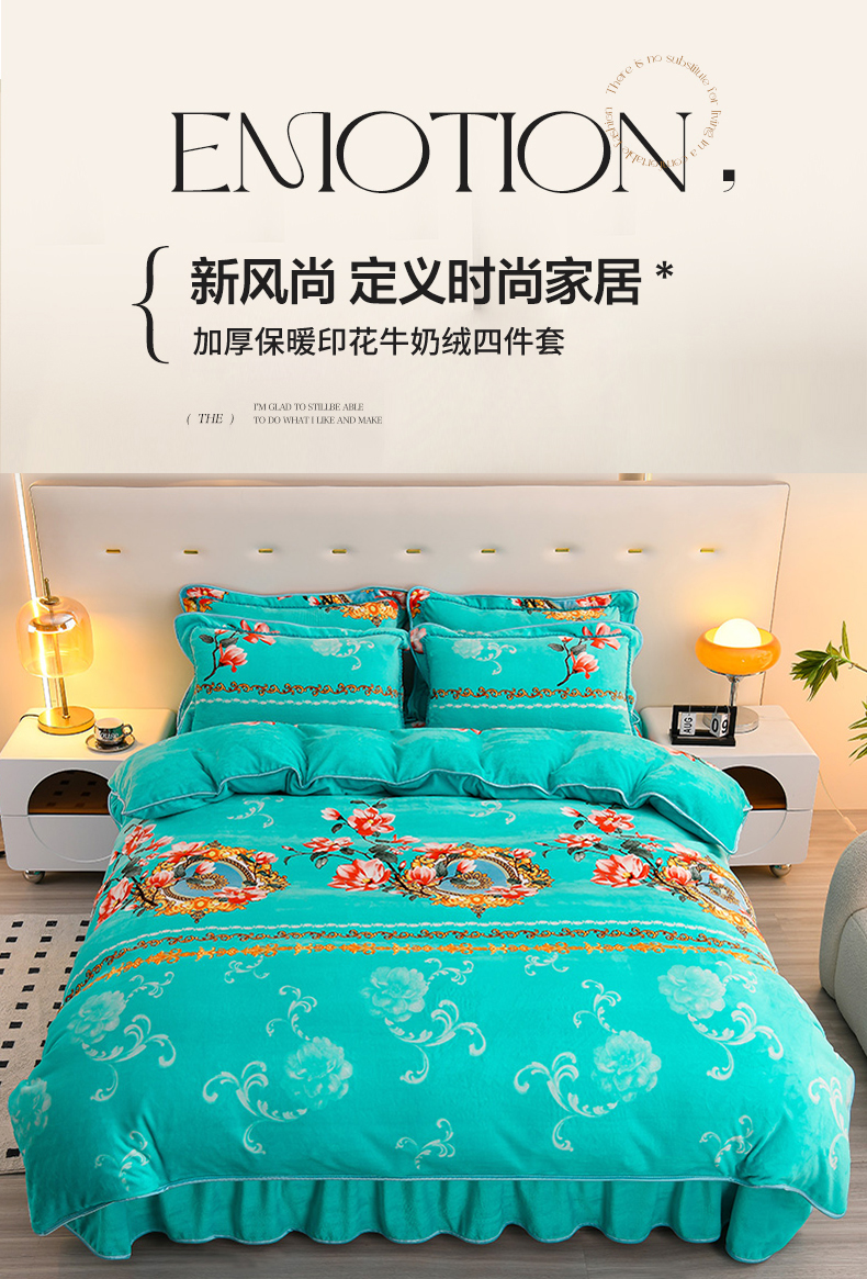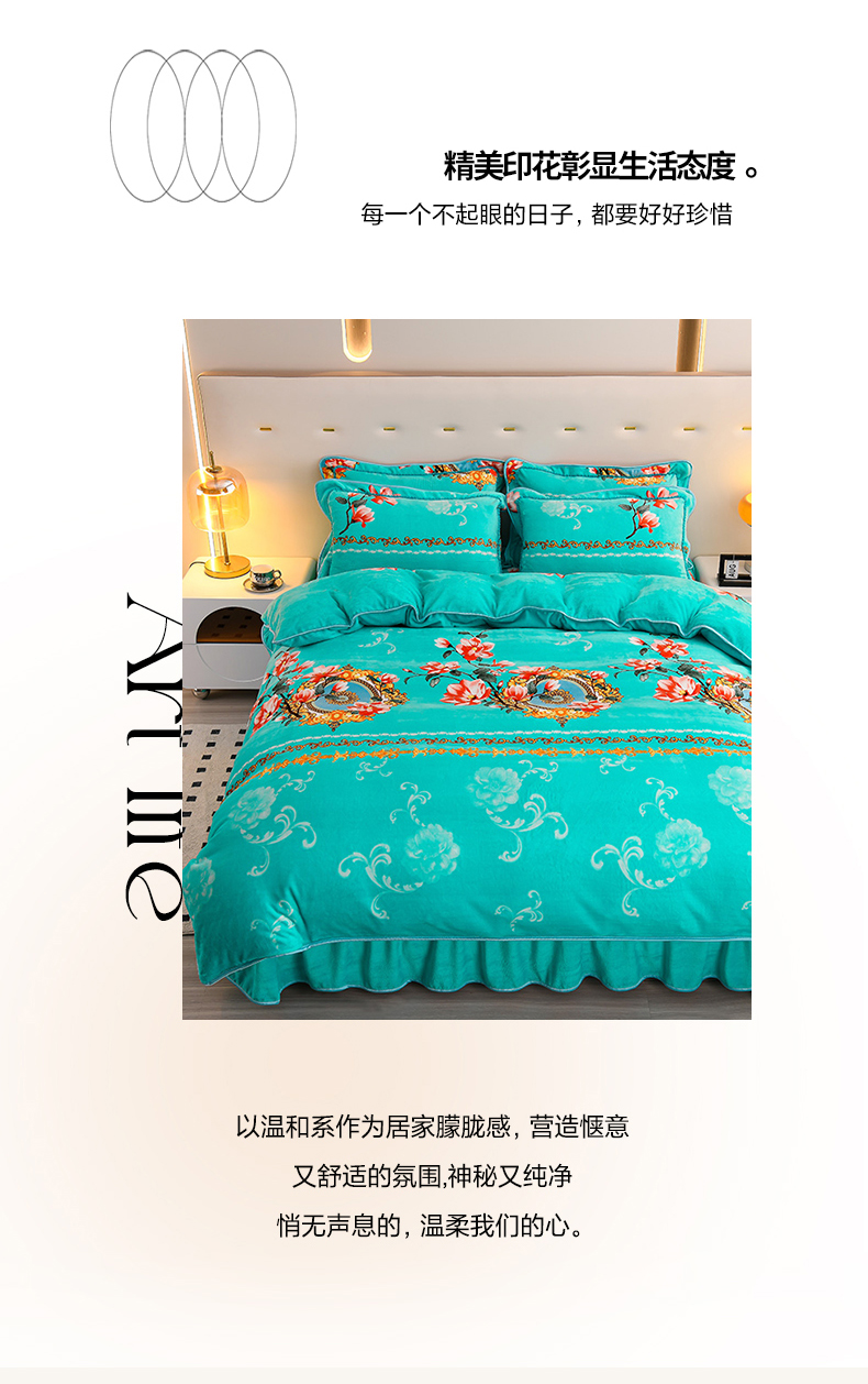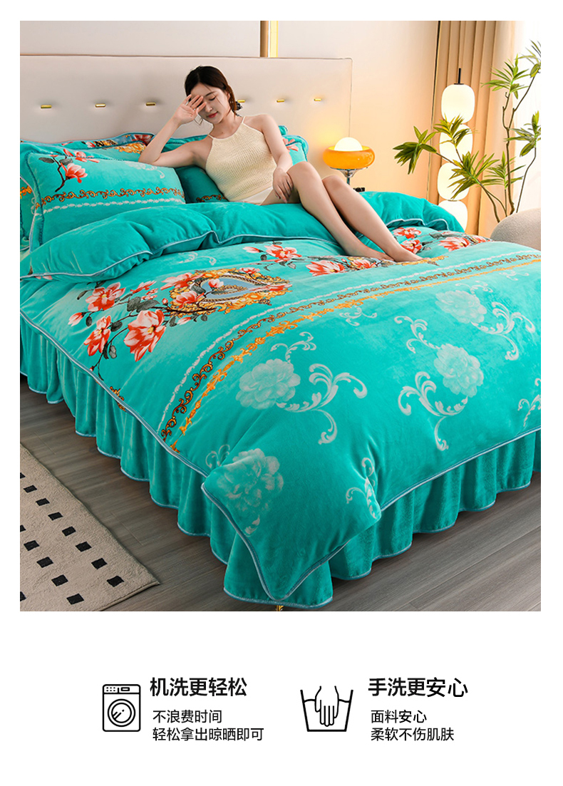 当前位置: 91家纺网 > 商品网购 > 床品套件 > 四件套 > 牛奶绒四件套 > 晚静 2025新款7斤牛奶绒四件套金貂法莱绒床裙款保暖绒三件套 花晨月夕