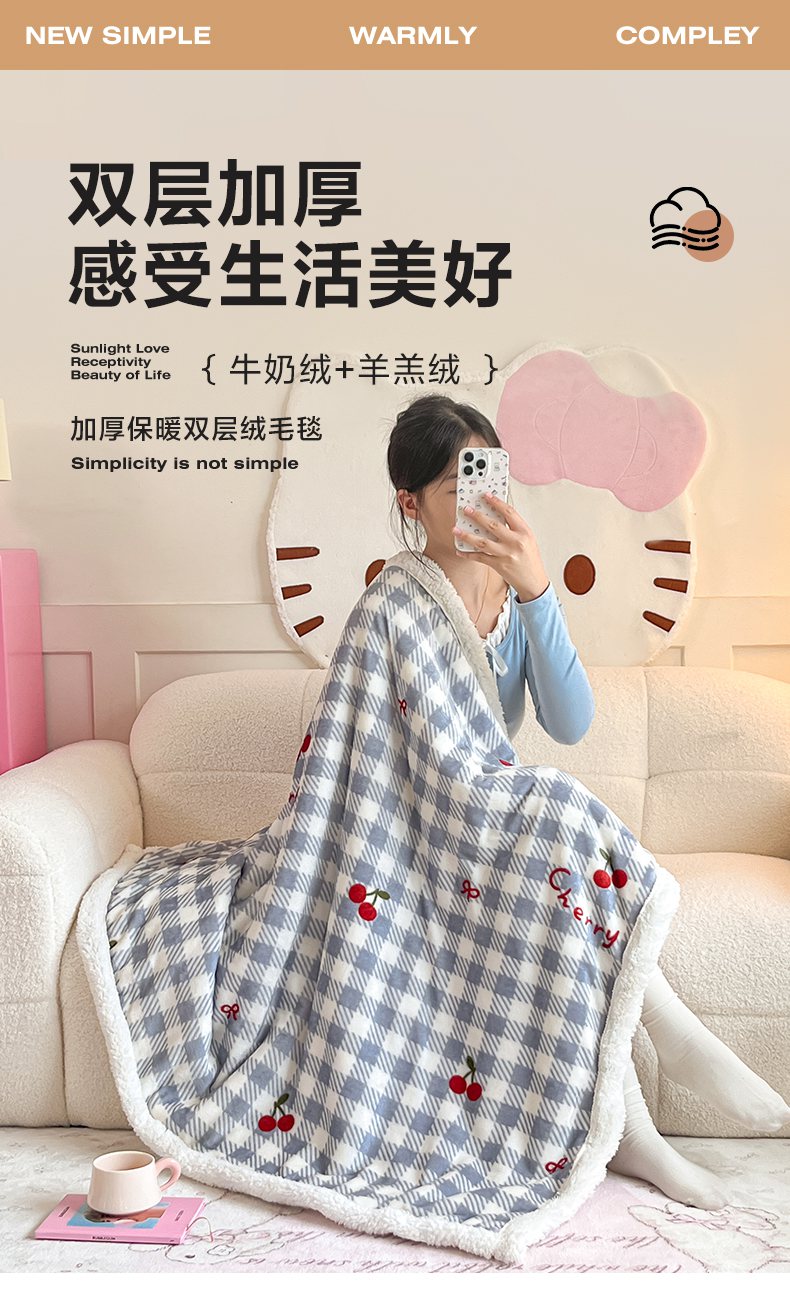 商品名称:川悦生活 2025新款牛奶绒羊羔绒毯子毛毯 毛毯青禾车厘