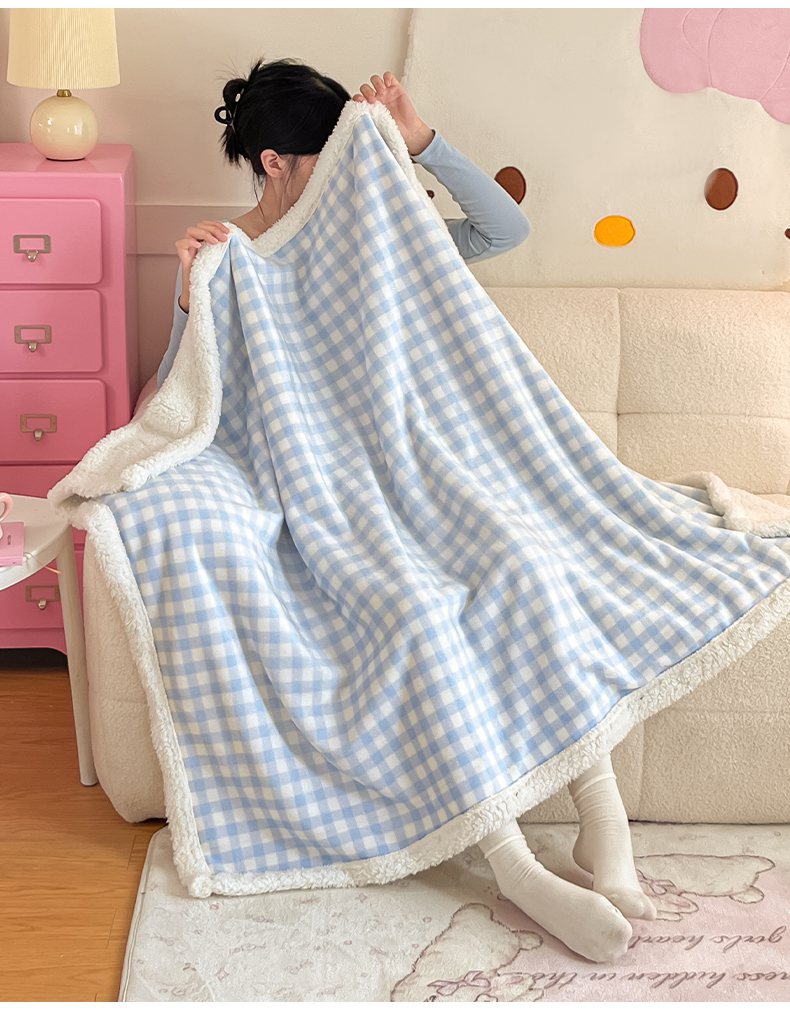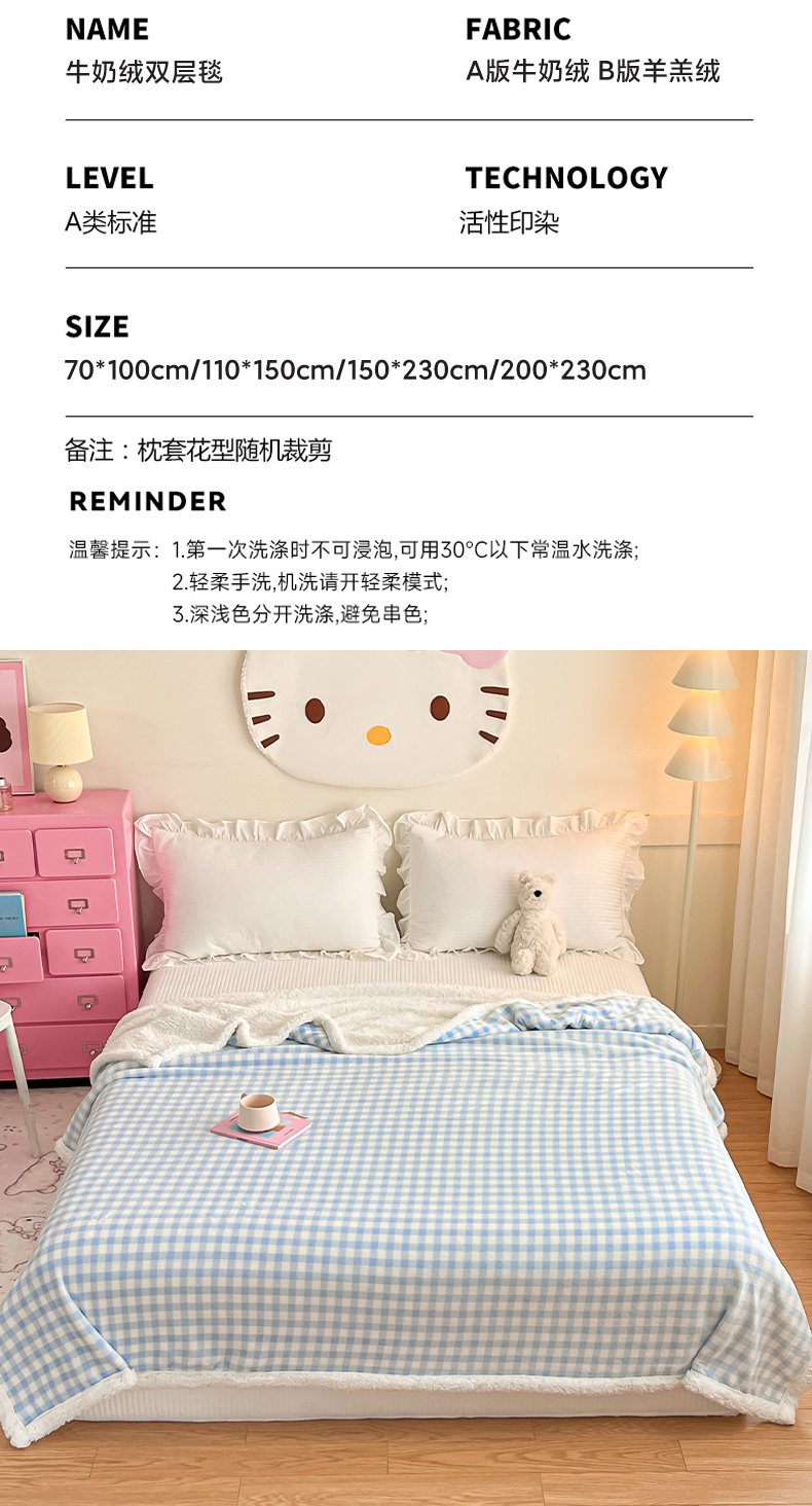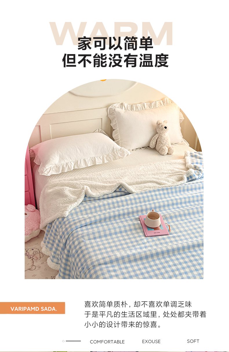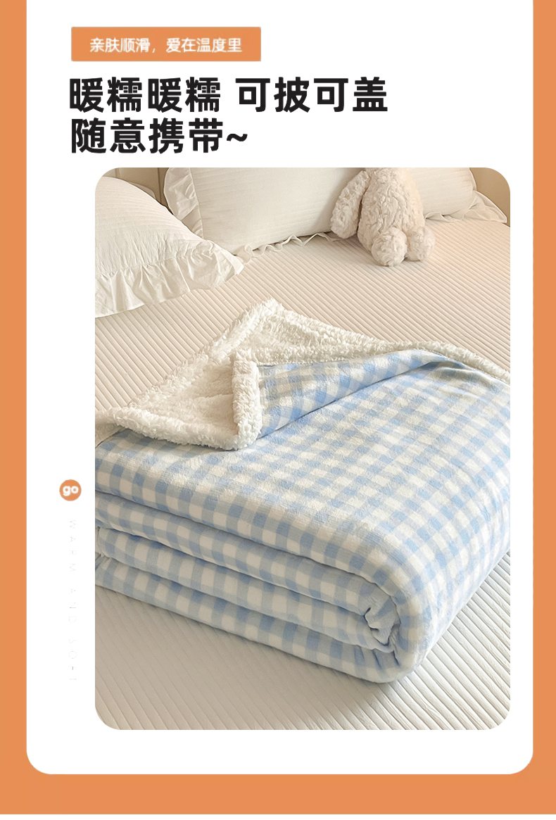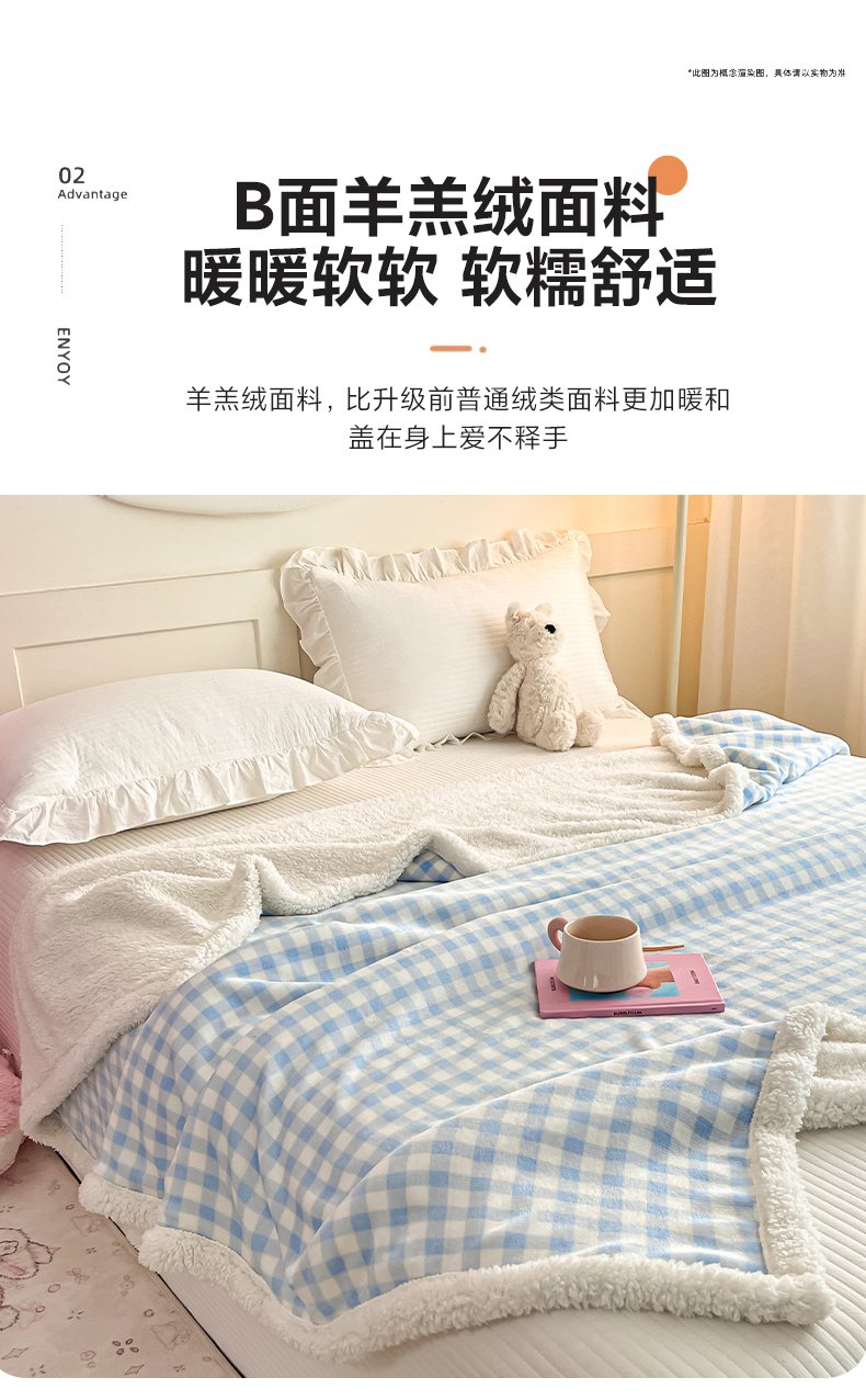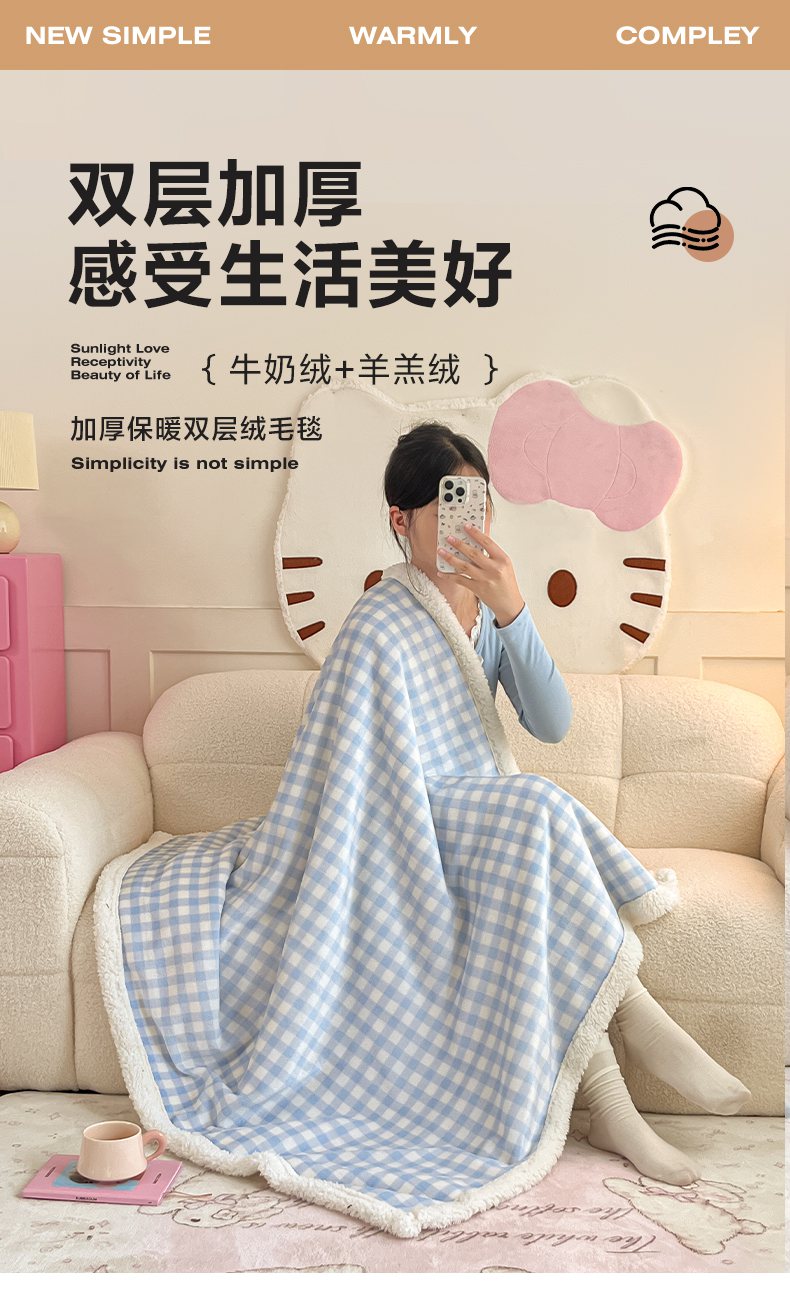 商品名称:川悦生活 2025新款牛奶绒羊羔绒毯子毛毯 毛毯小屋格格奶蓝