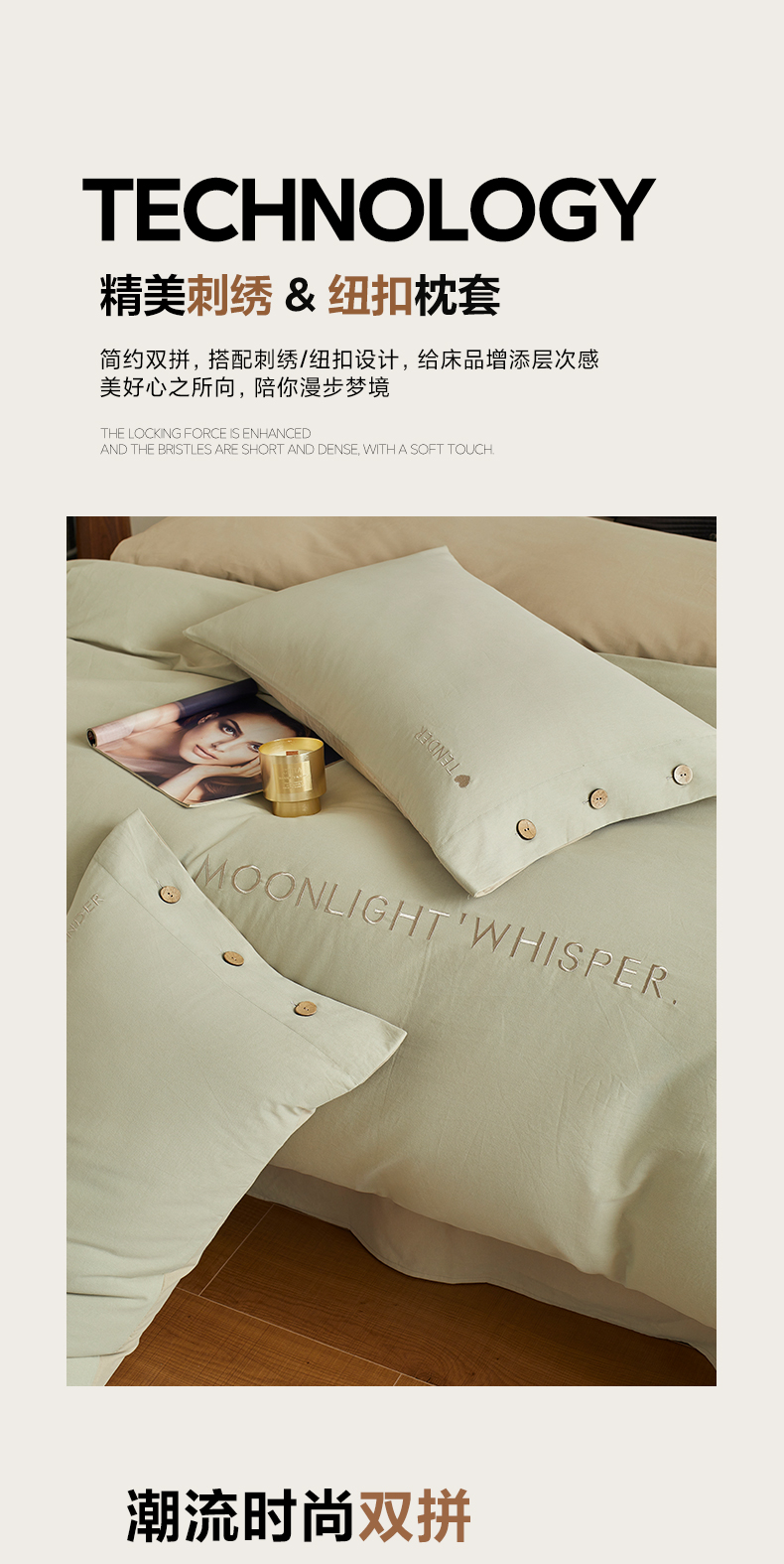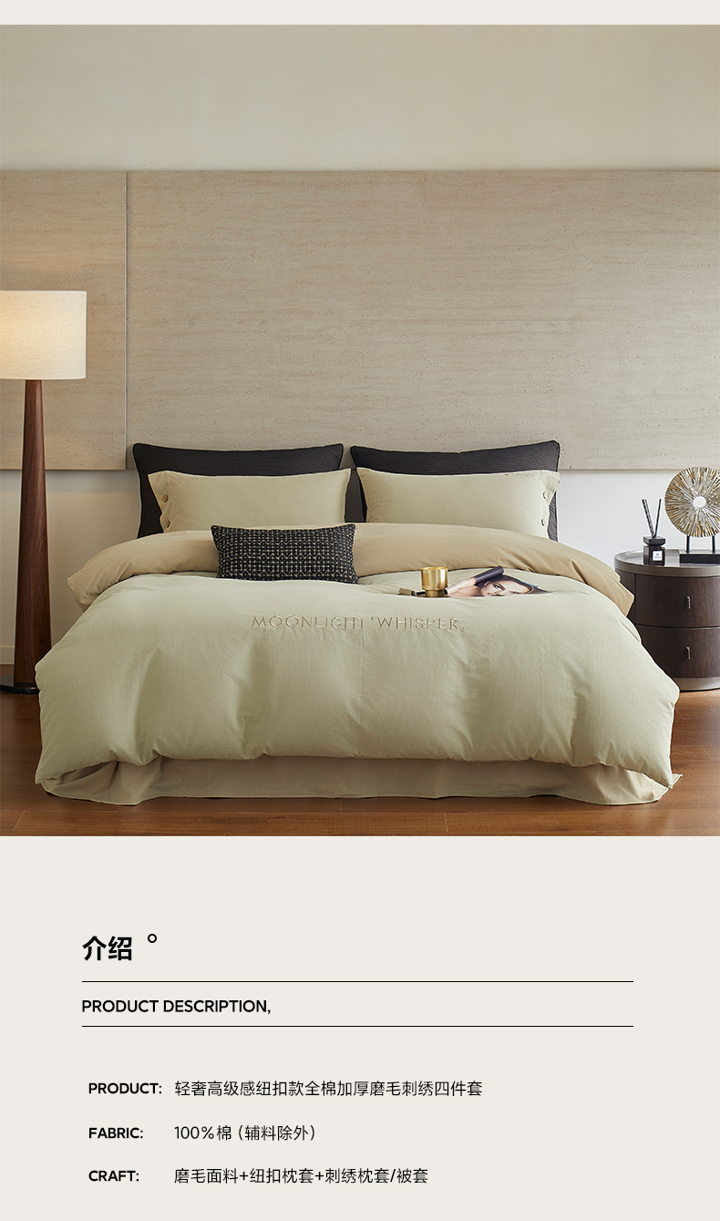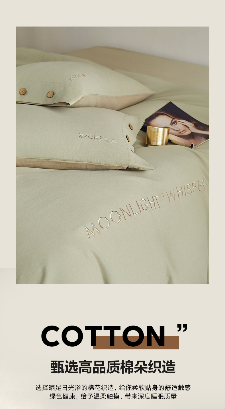 当前位置: 91家纺网 > 商品网购 > 床品套件 > 四件套 > 全棉普通四件套 > 艾咪-Amy ntmy 2025轻奢高级感纽扣款全棉纯棉加厚磨毛刺绣四件套 漫月绿卡