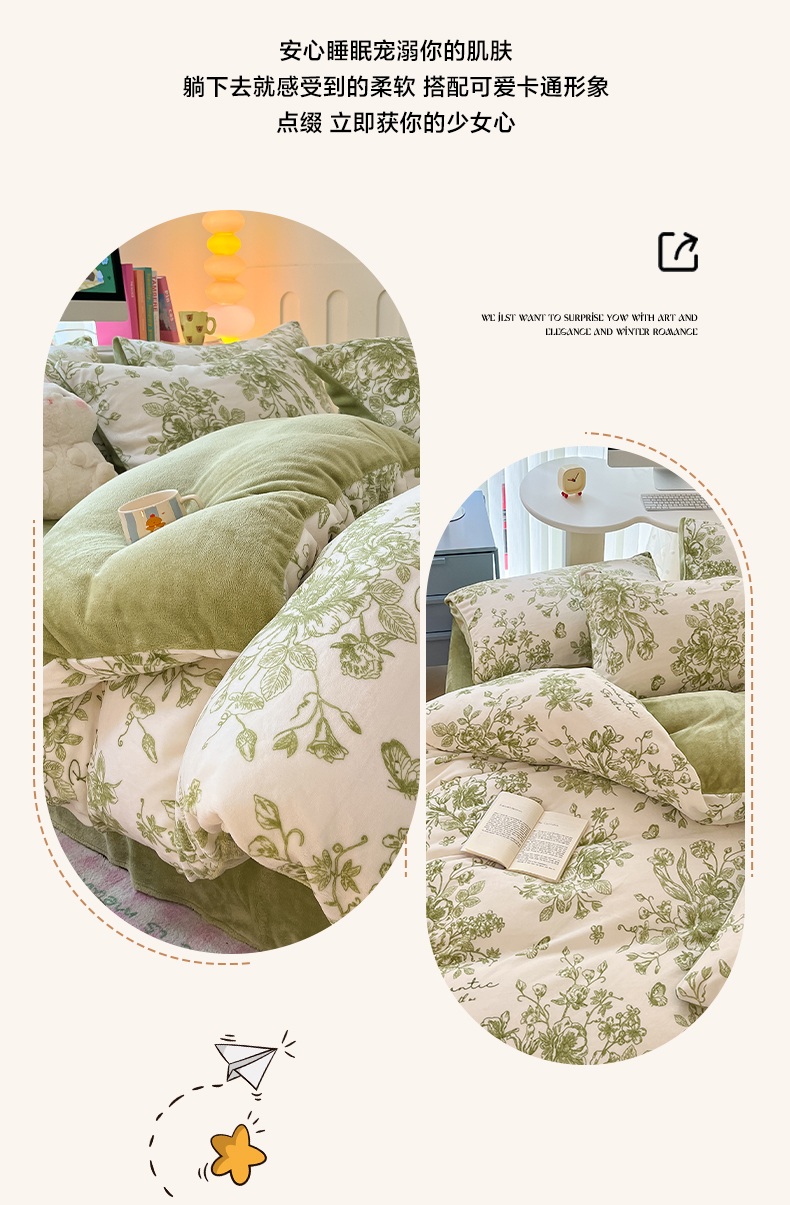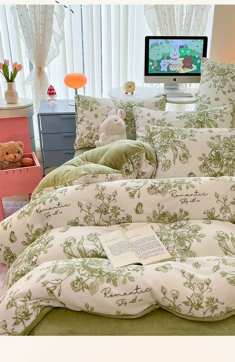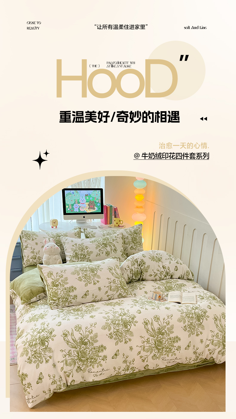 当前位置: 91家纺网 > 商品网购 > 床品套件 > 四件套 > 牛奶绒四件套 > 启发 2025新款高克重小清新牛奶绒印花四件套 法式浪漫