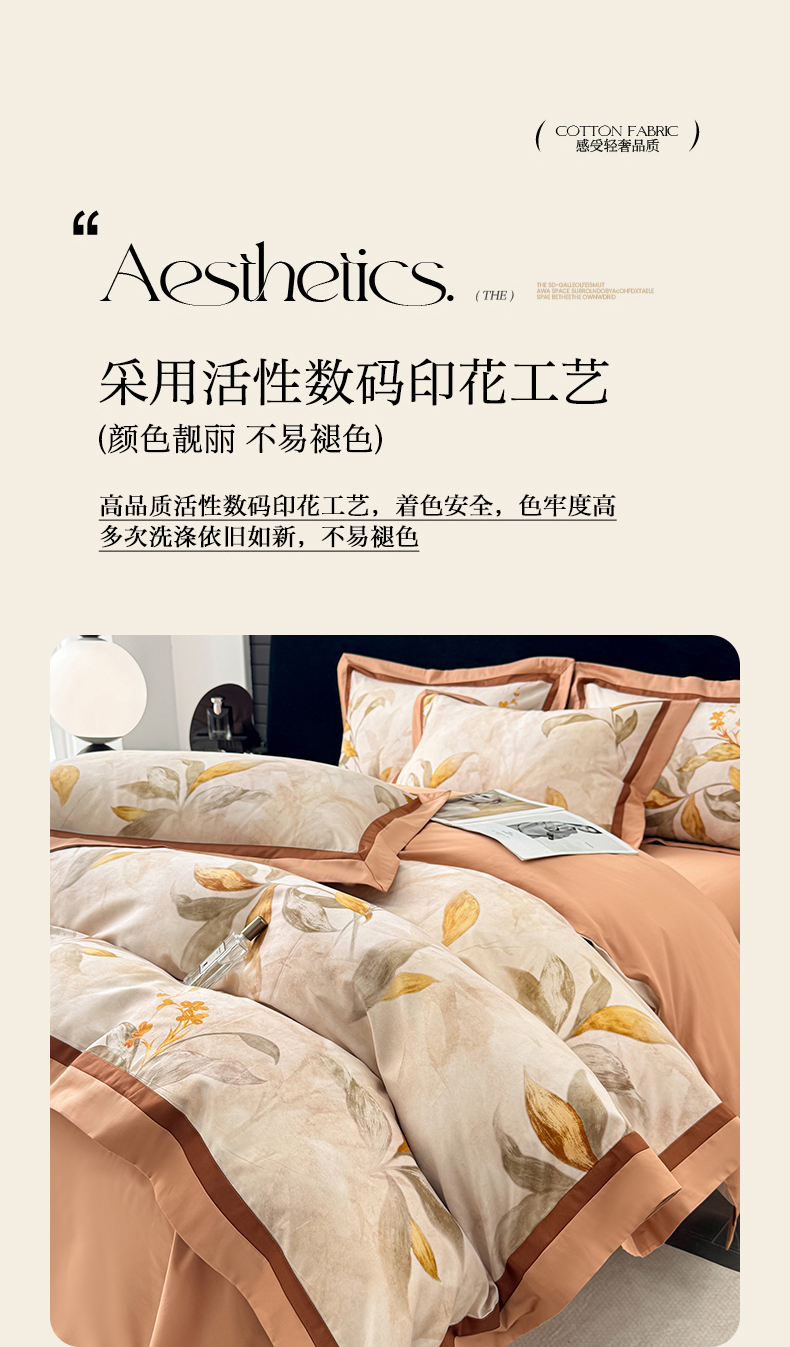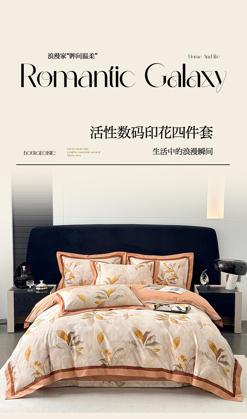 商品名称:小欢喜 2025新款50全棉数码印花四件套全棉四件套 芳华