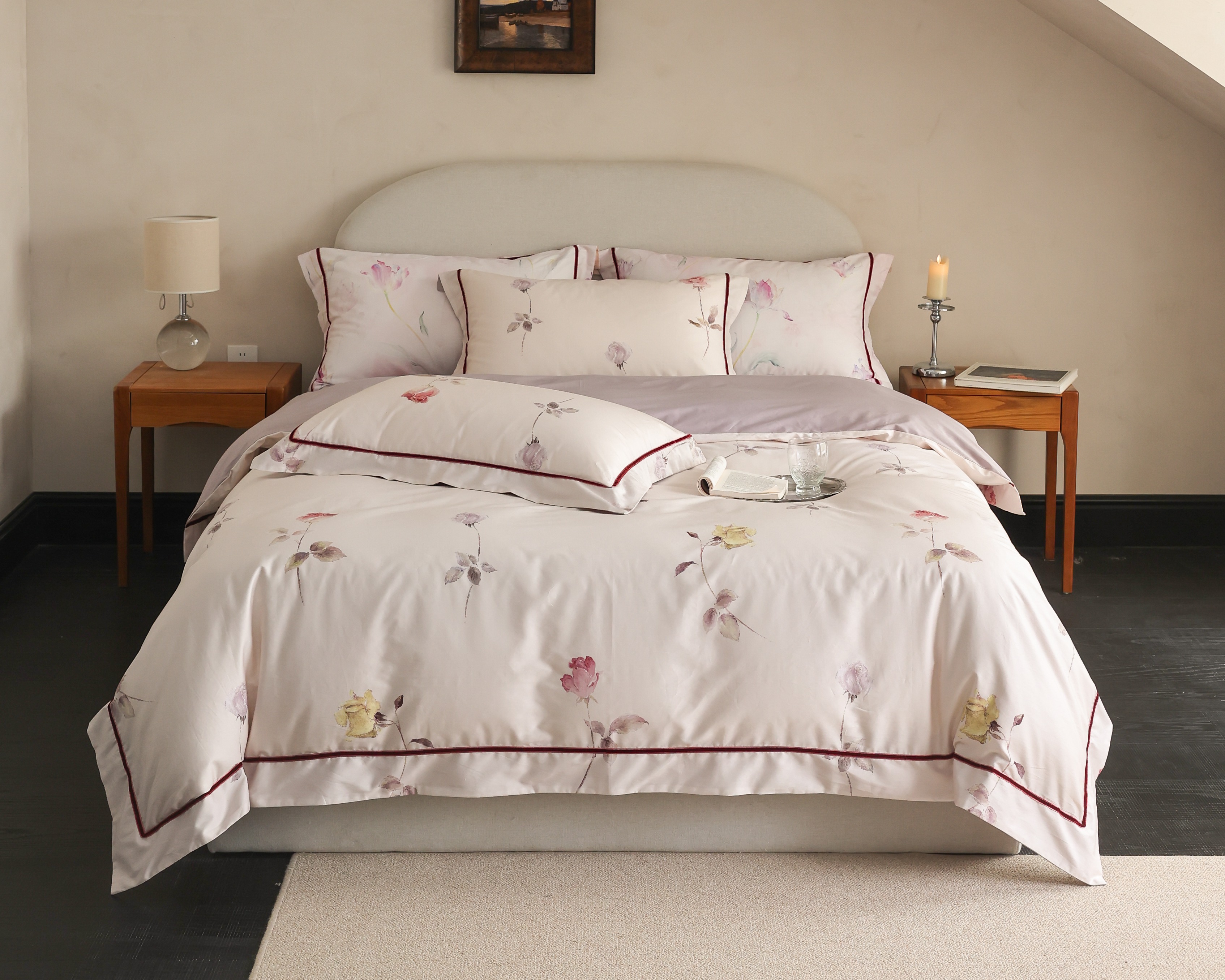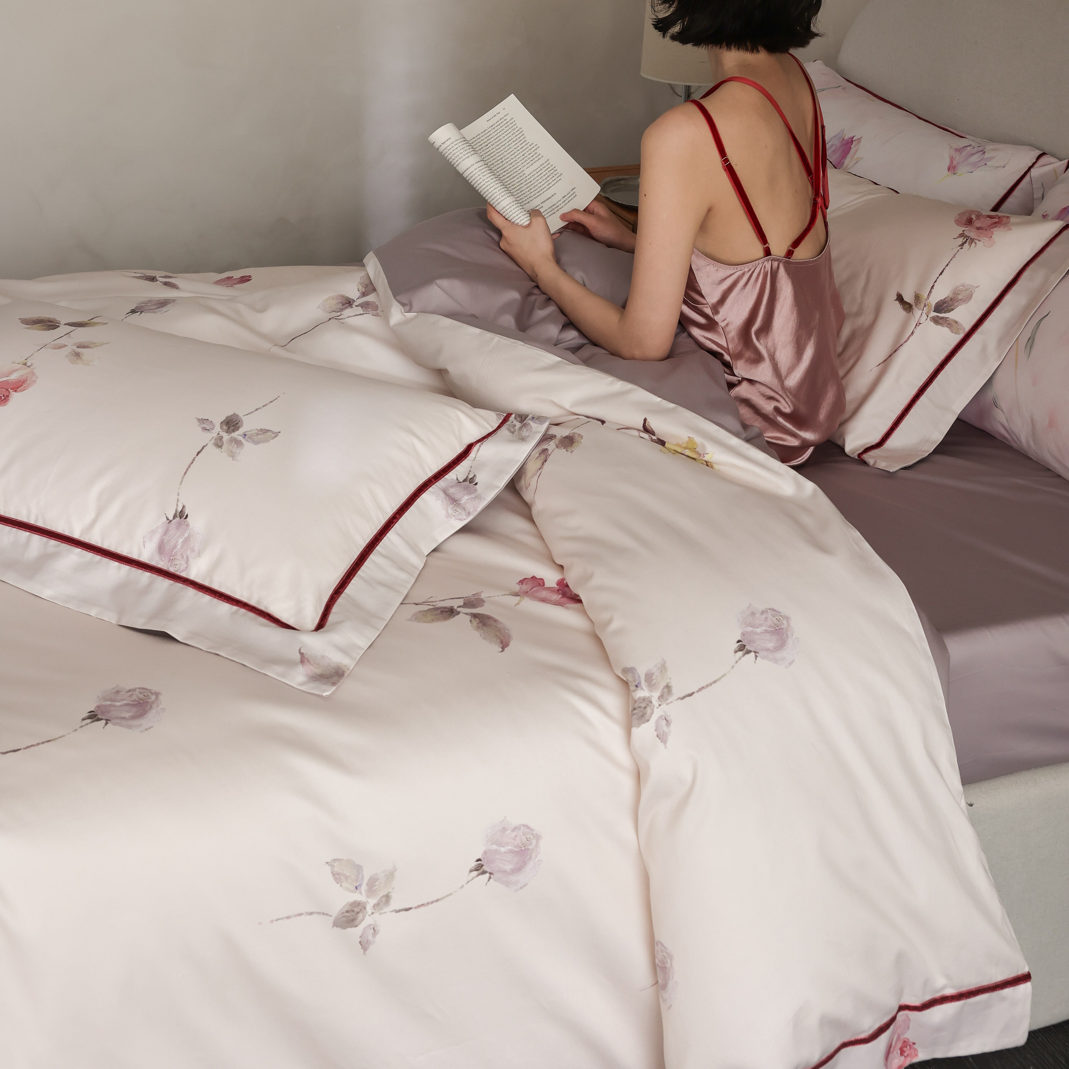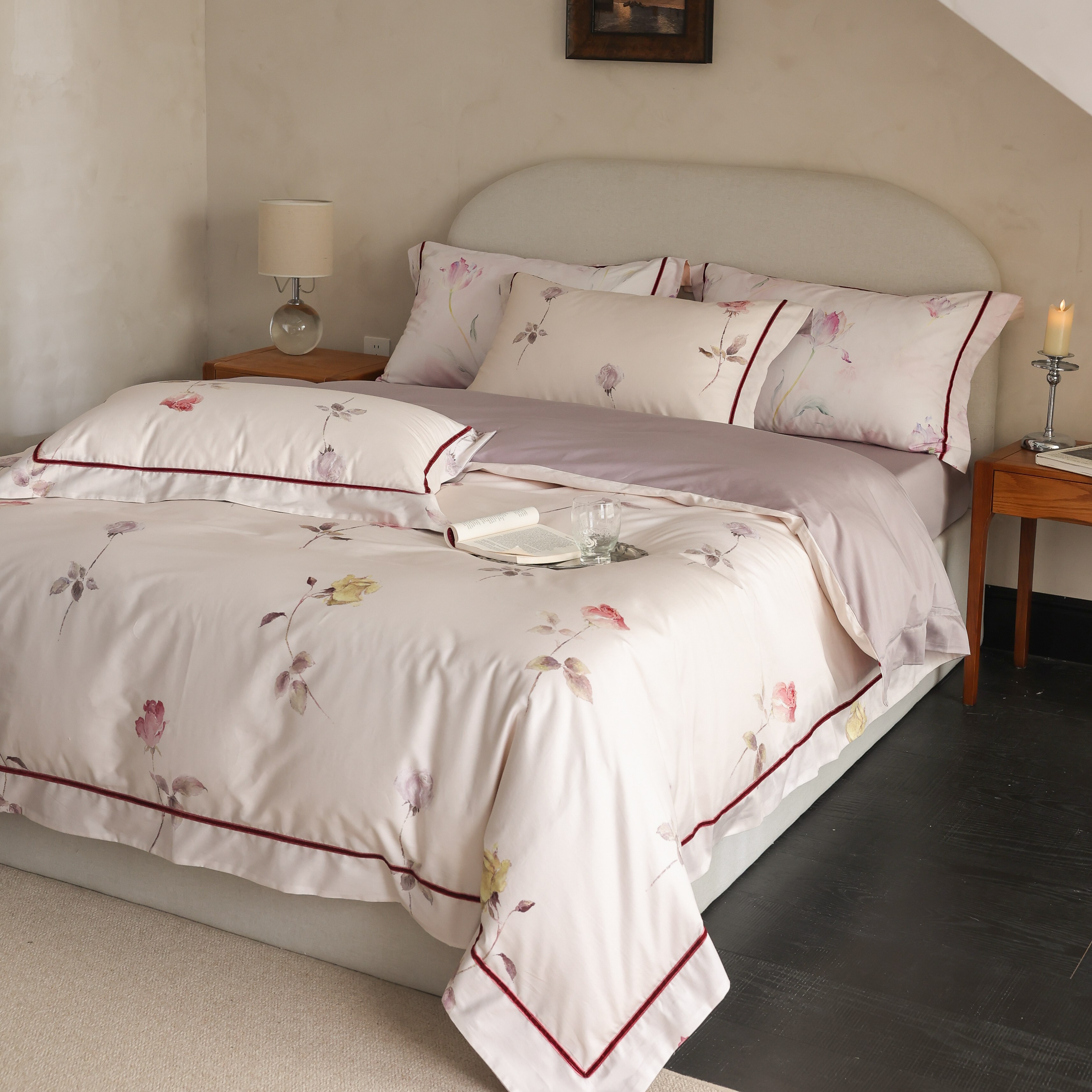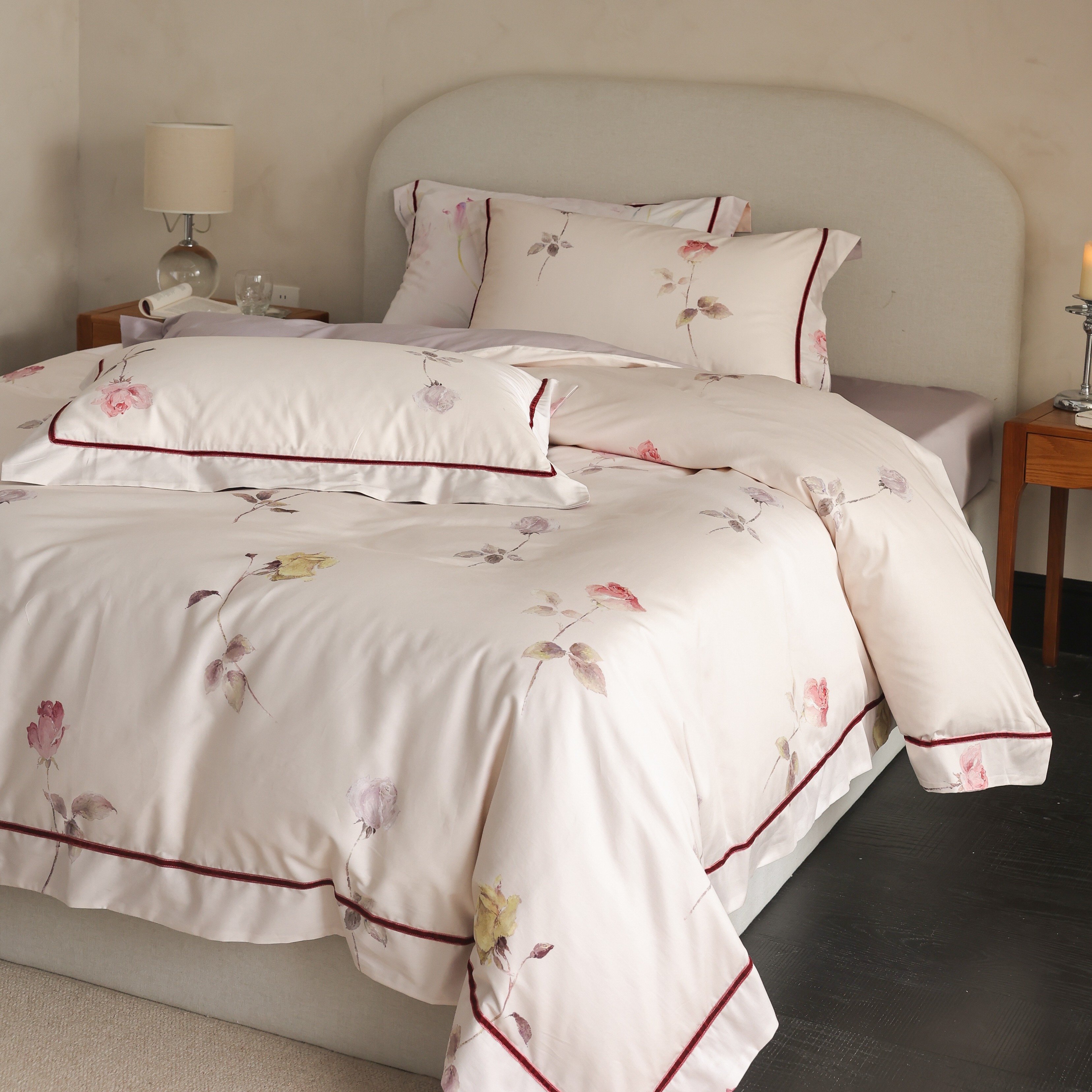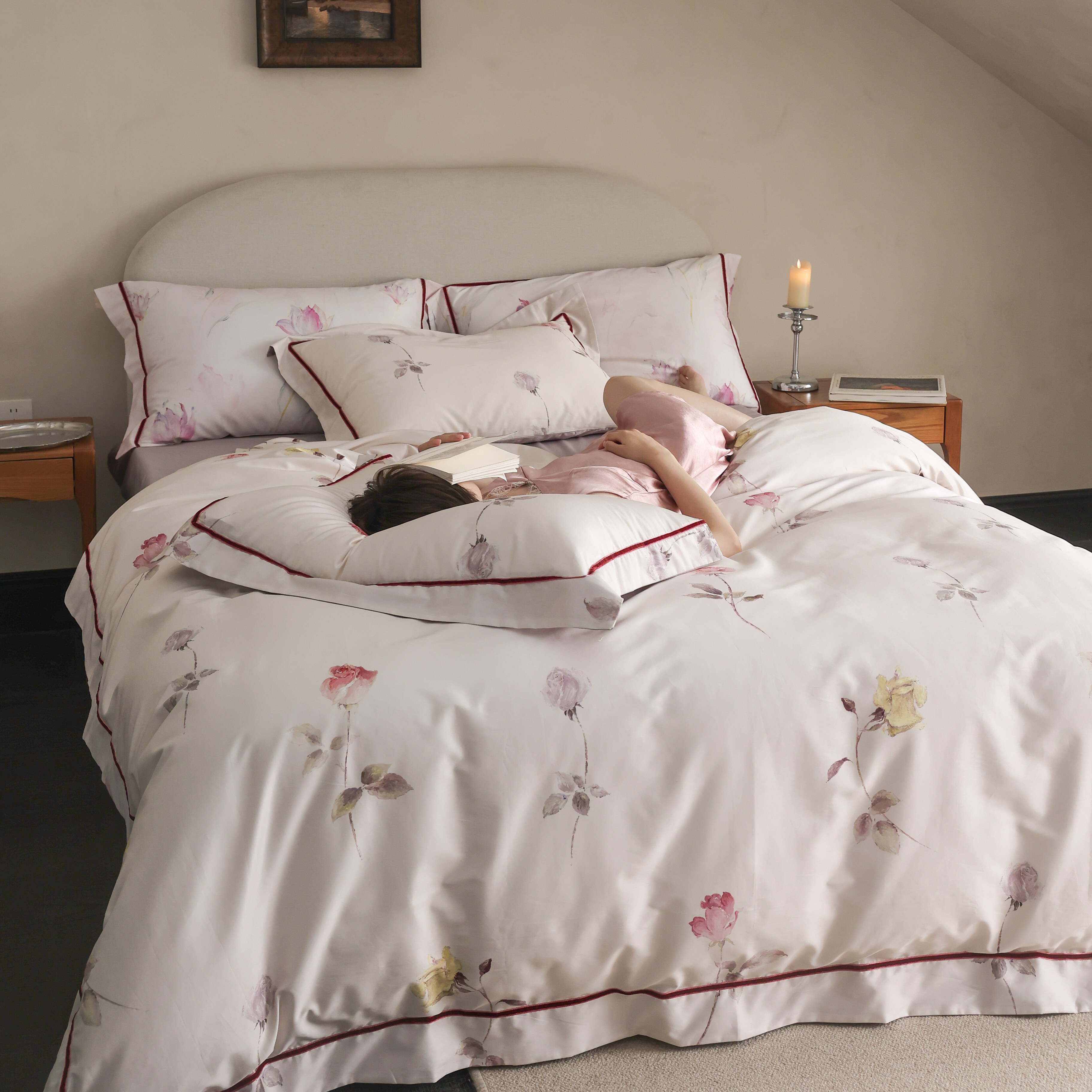 (总)初拾 2025新款100s全棉纯棉数码印花复古丝绒织带四件套
