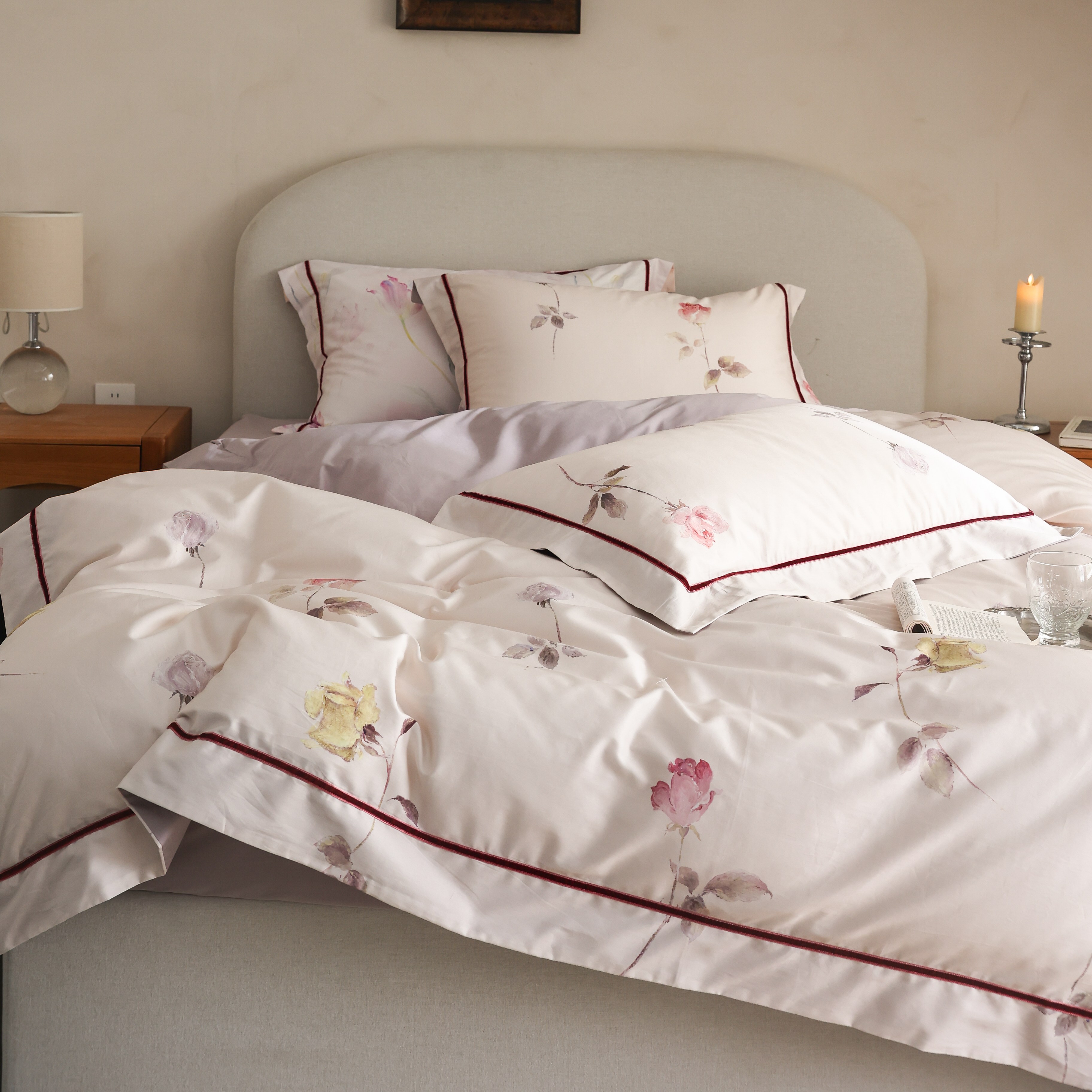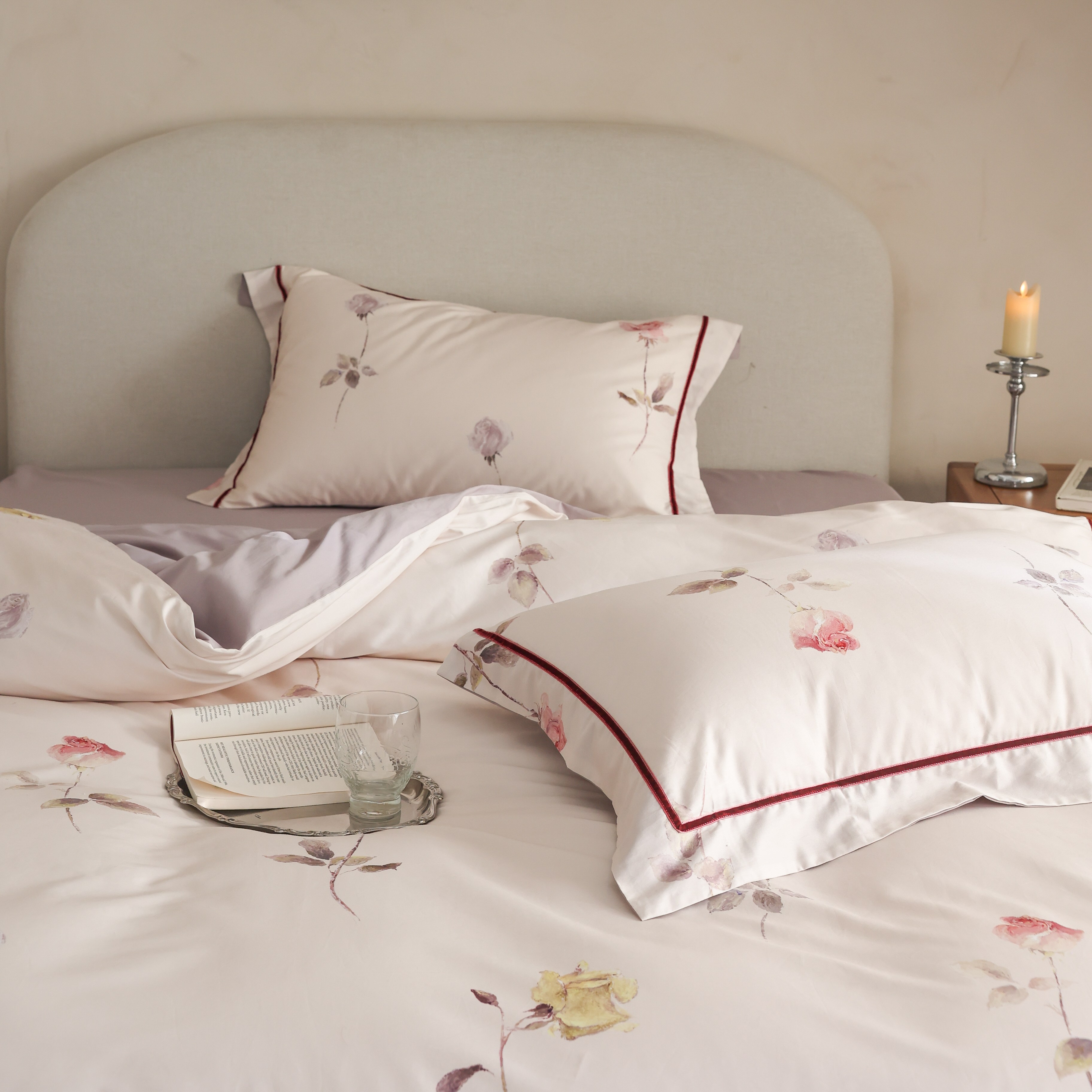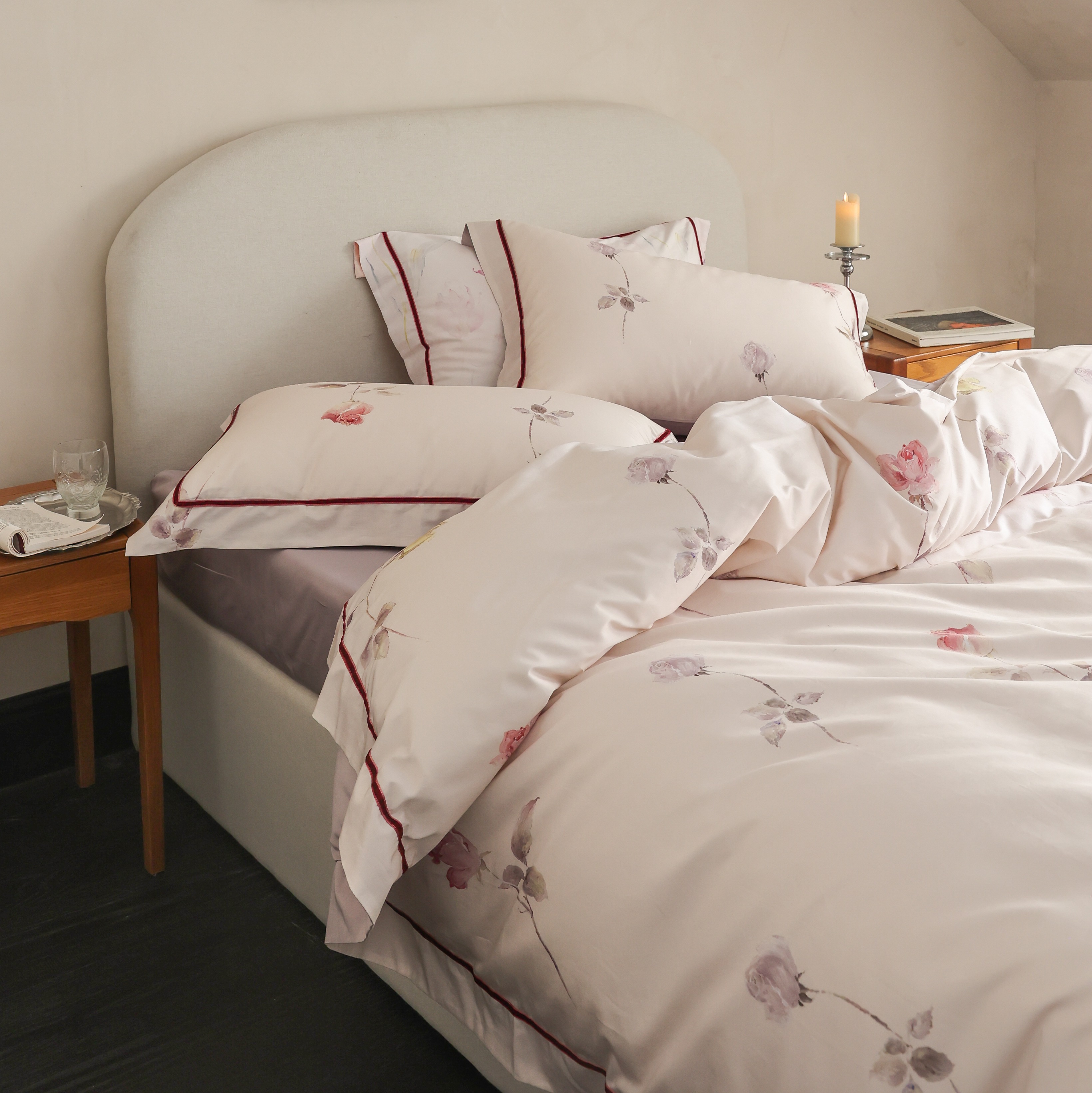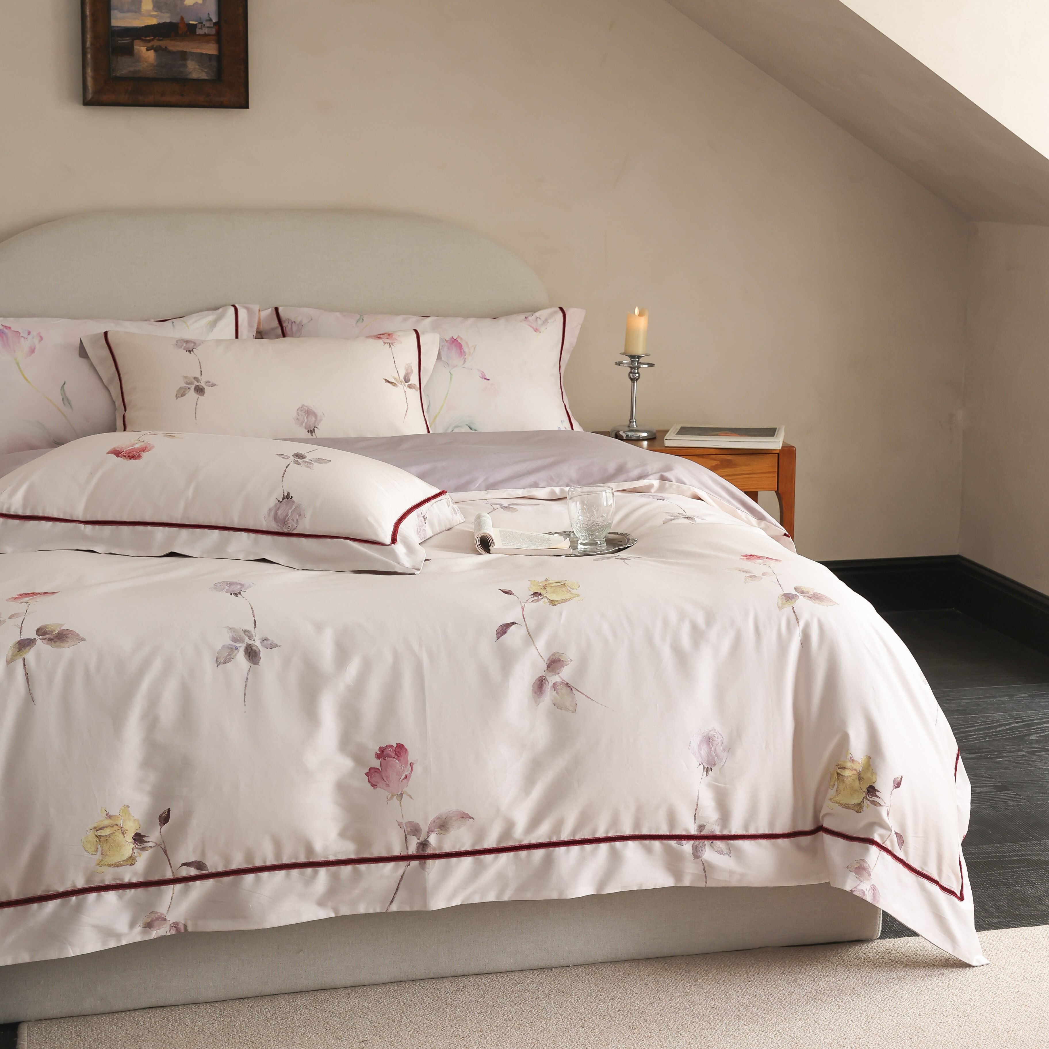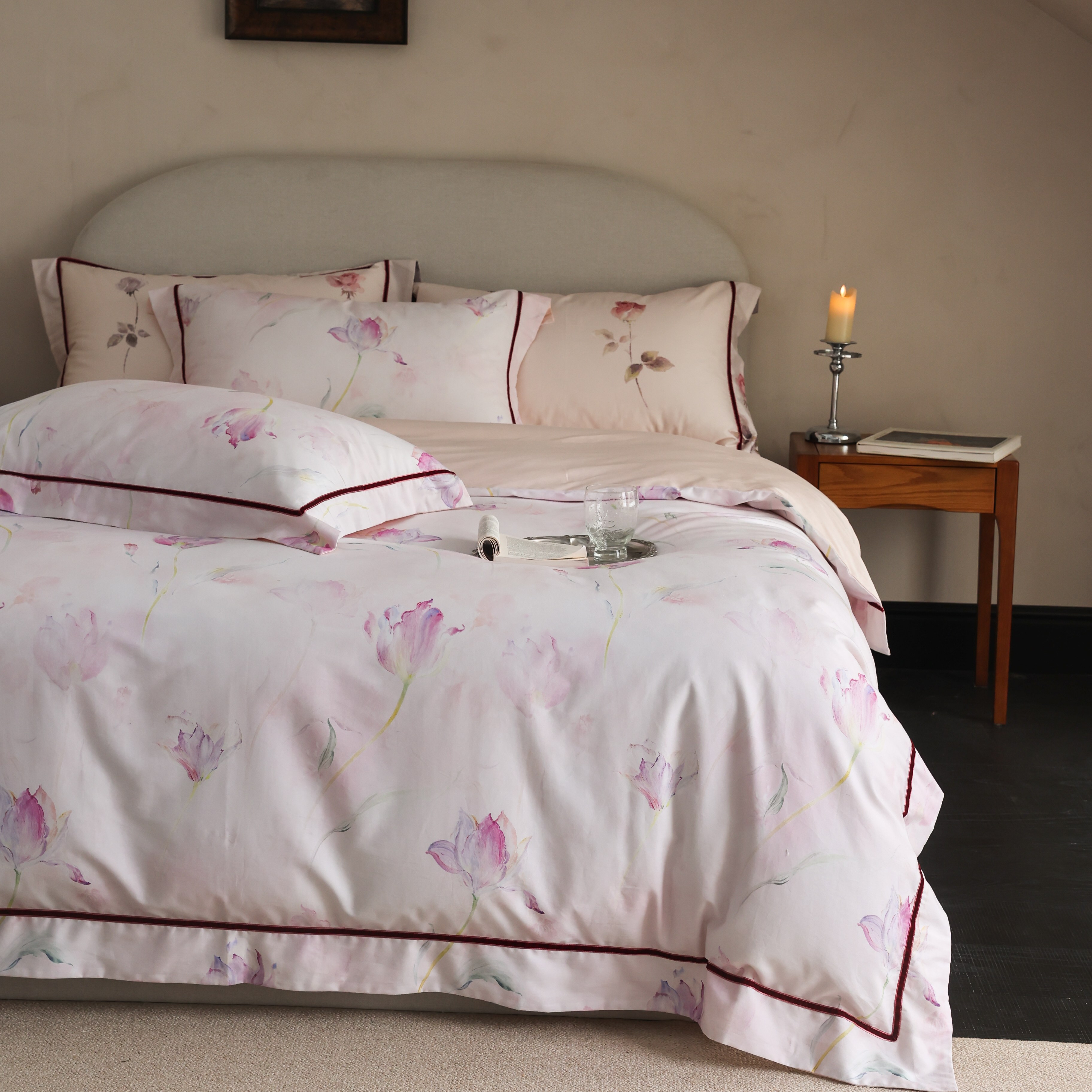 (总)初拾 2025新款100s全棉纯棉数码印花复古丝绒织带四件套