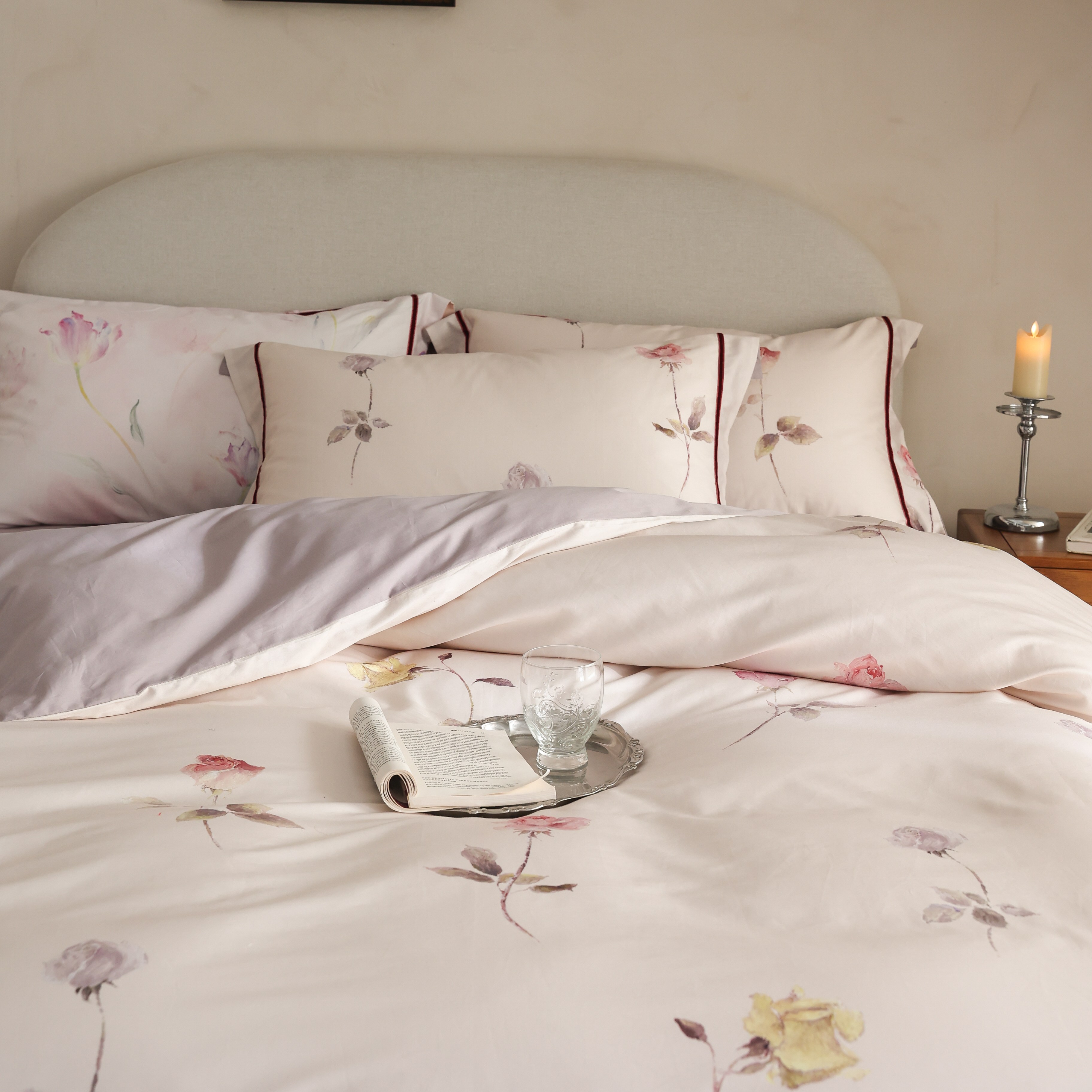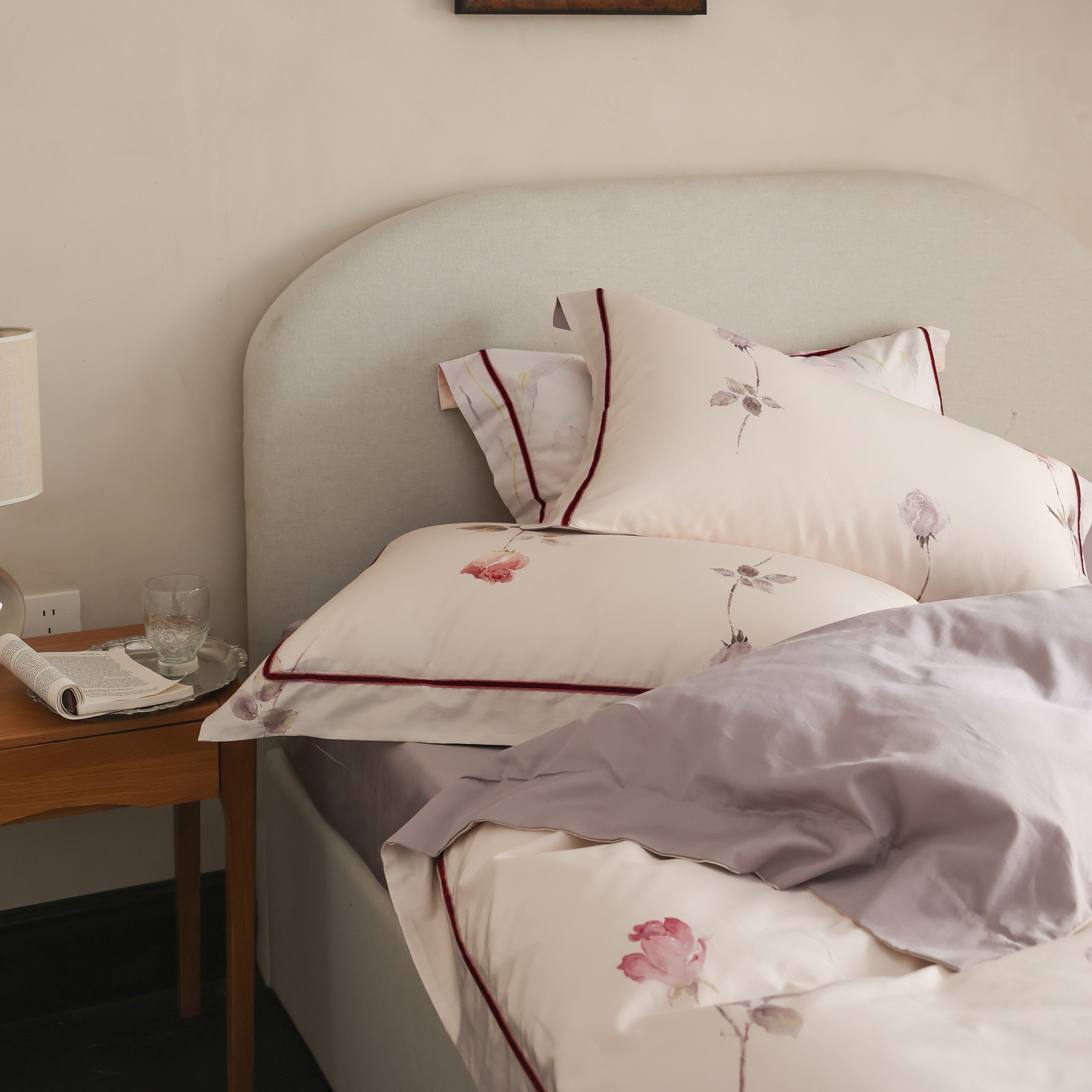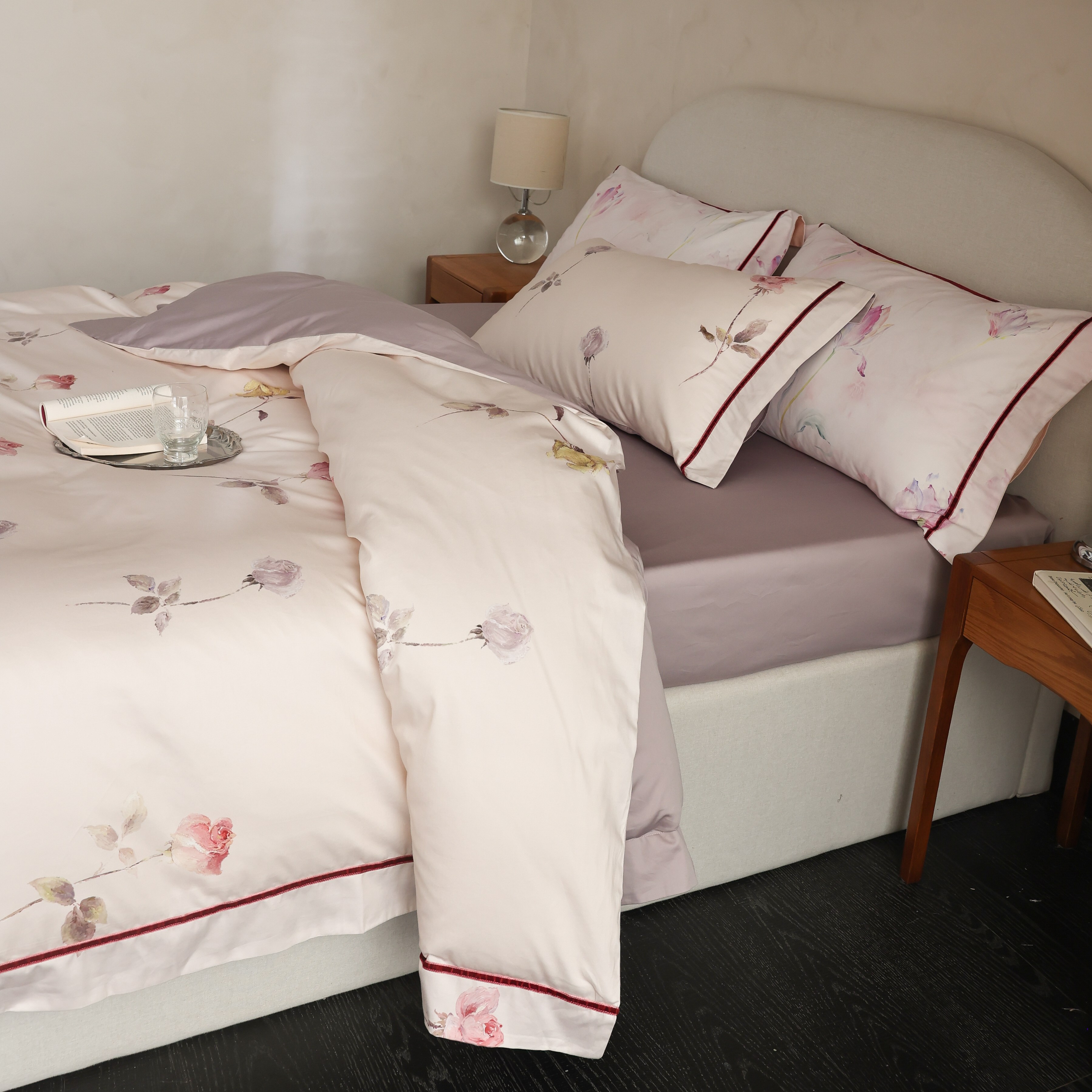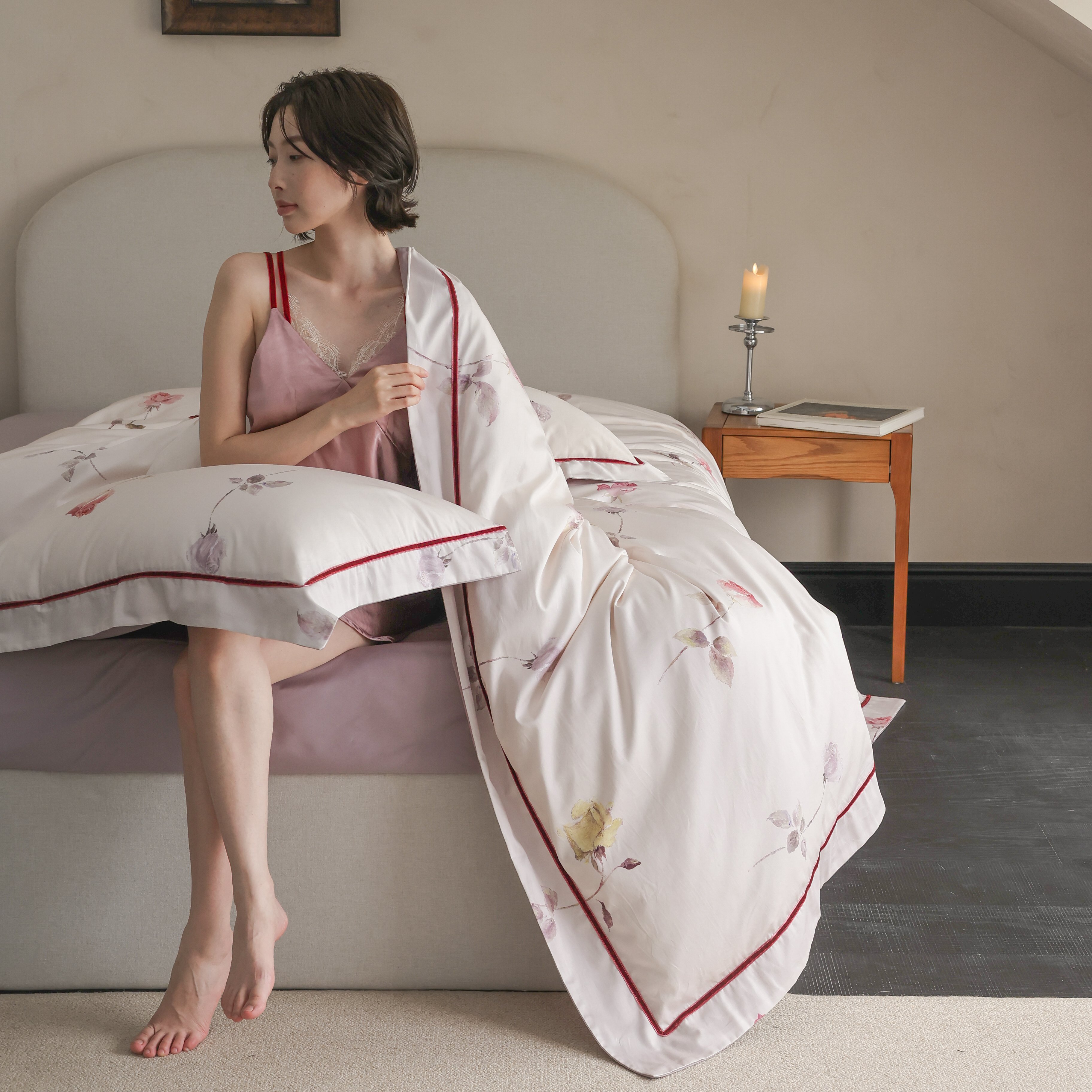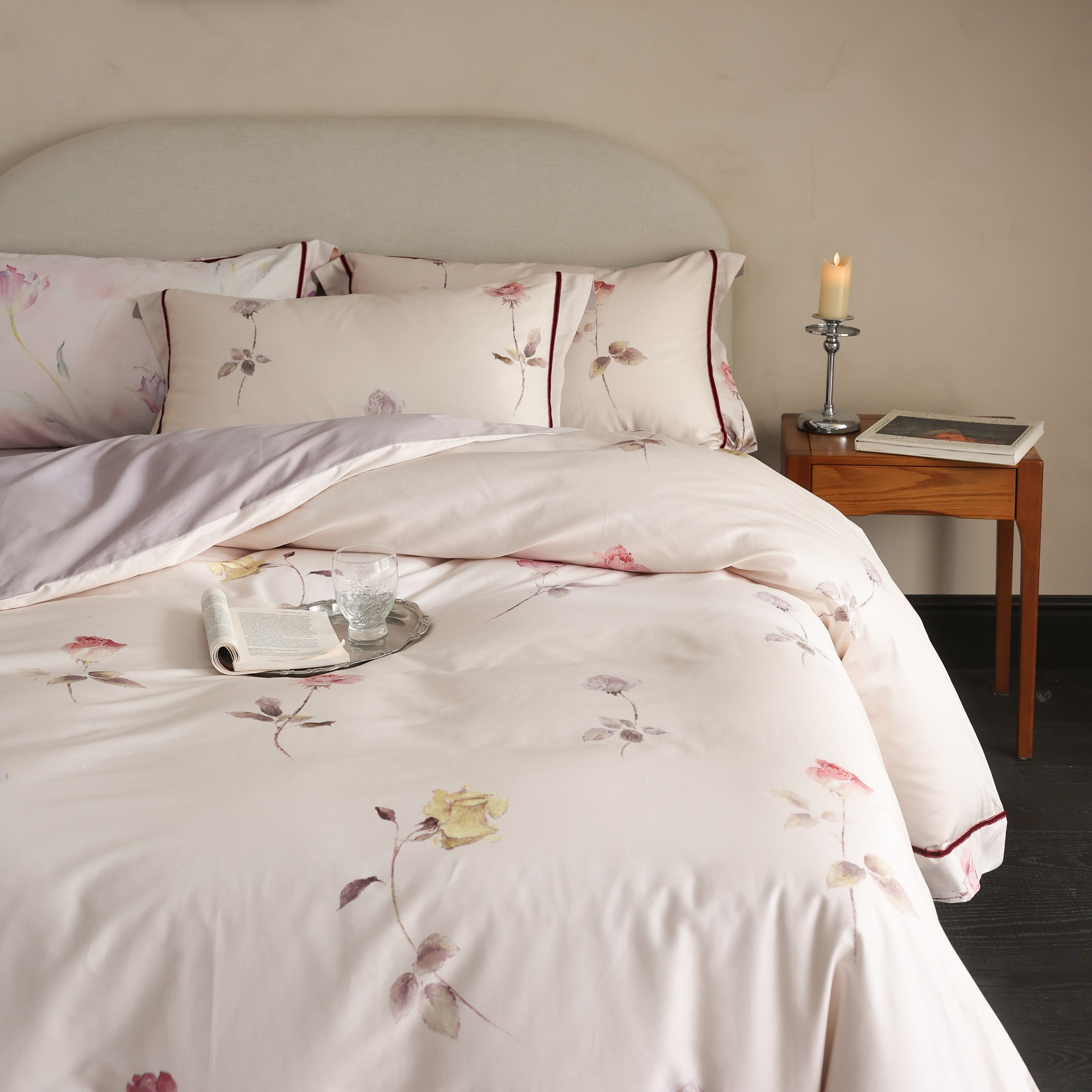 (总)初拾 2025新款100s全棉纯棉数码印花复古丝绒织带四件套