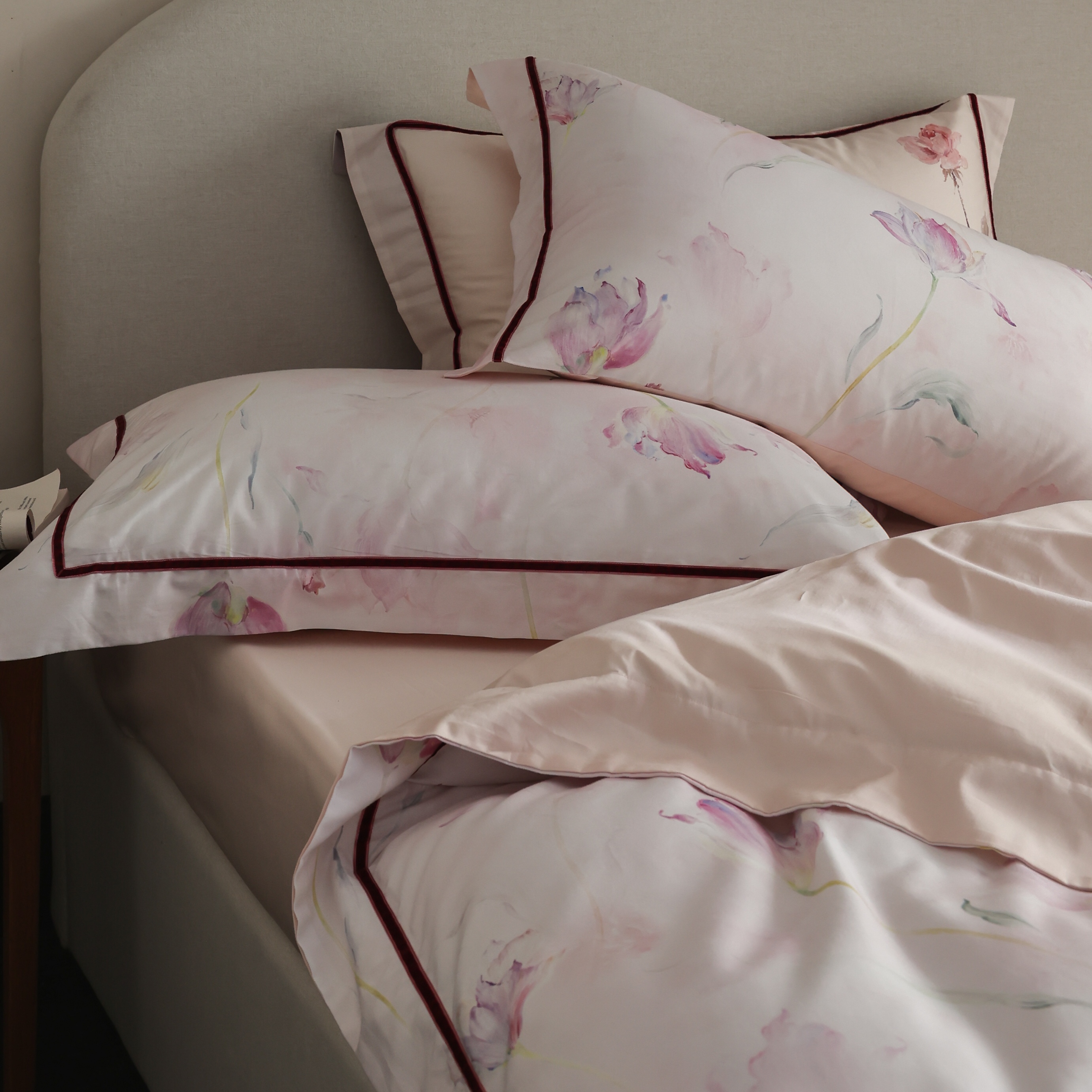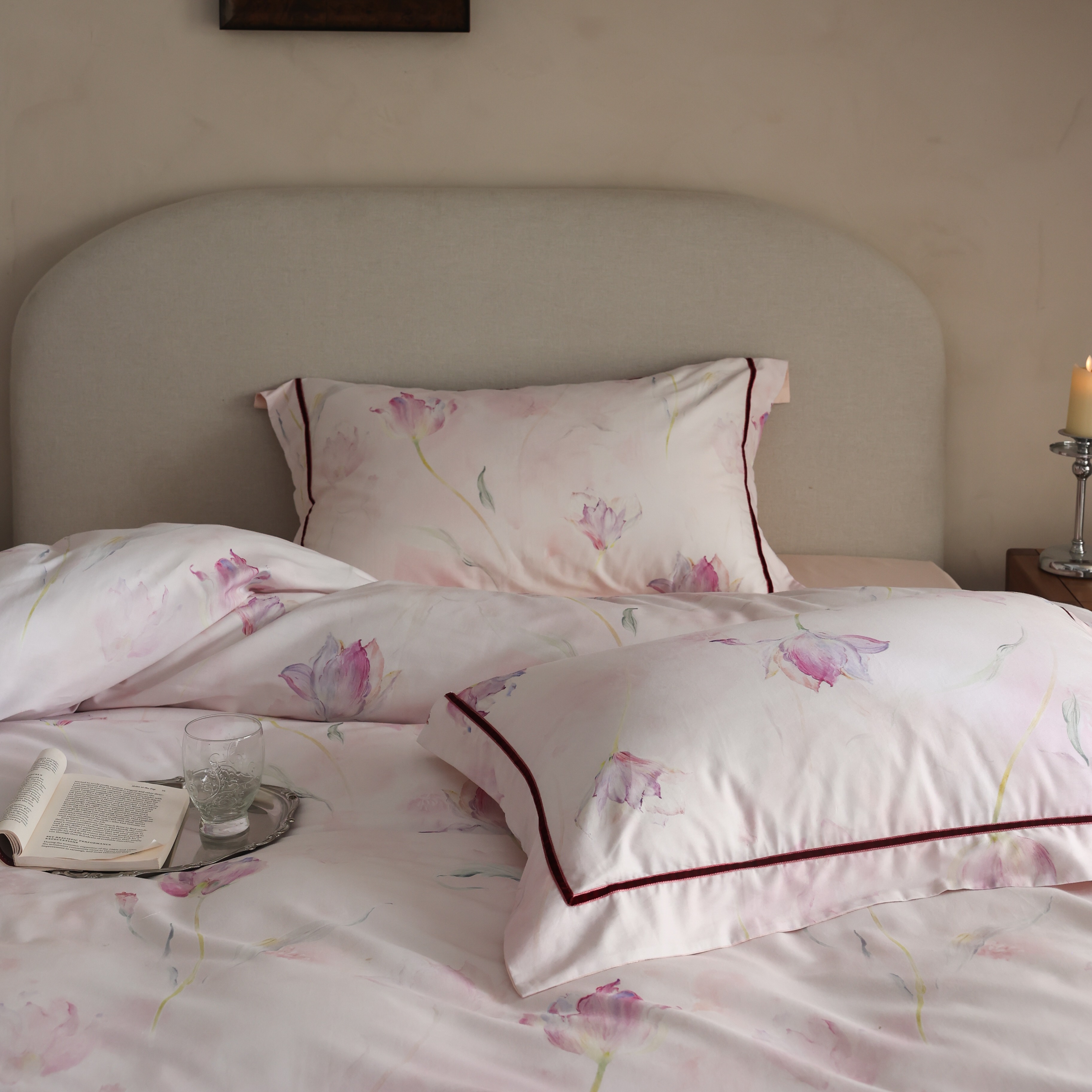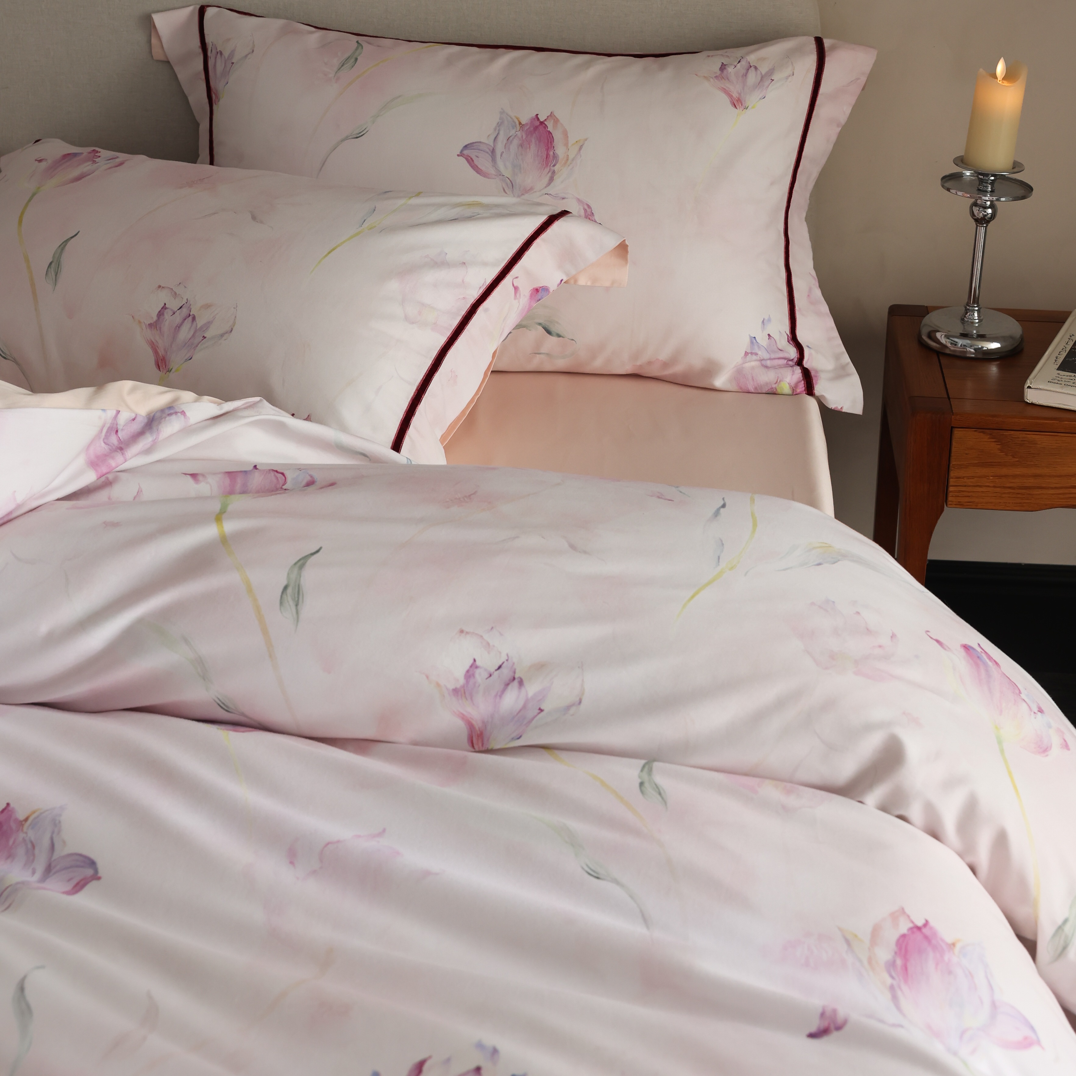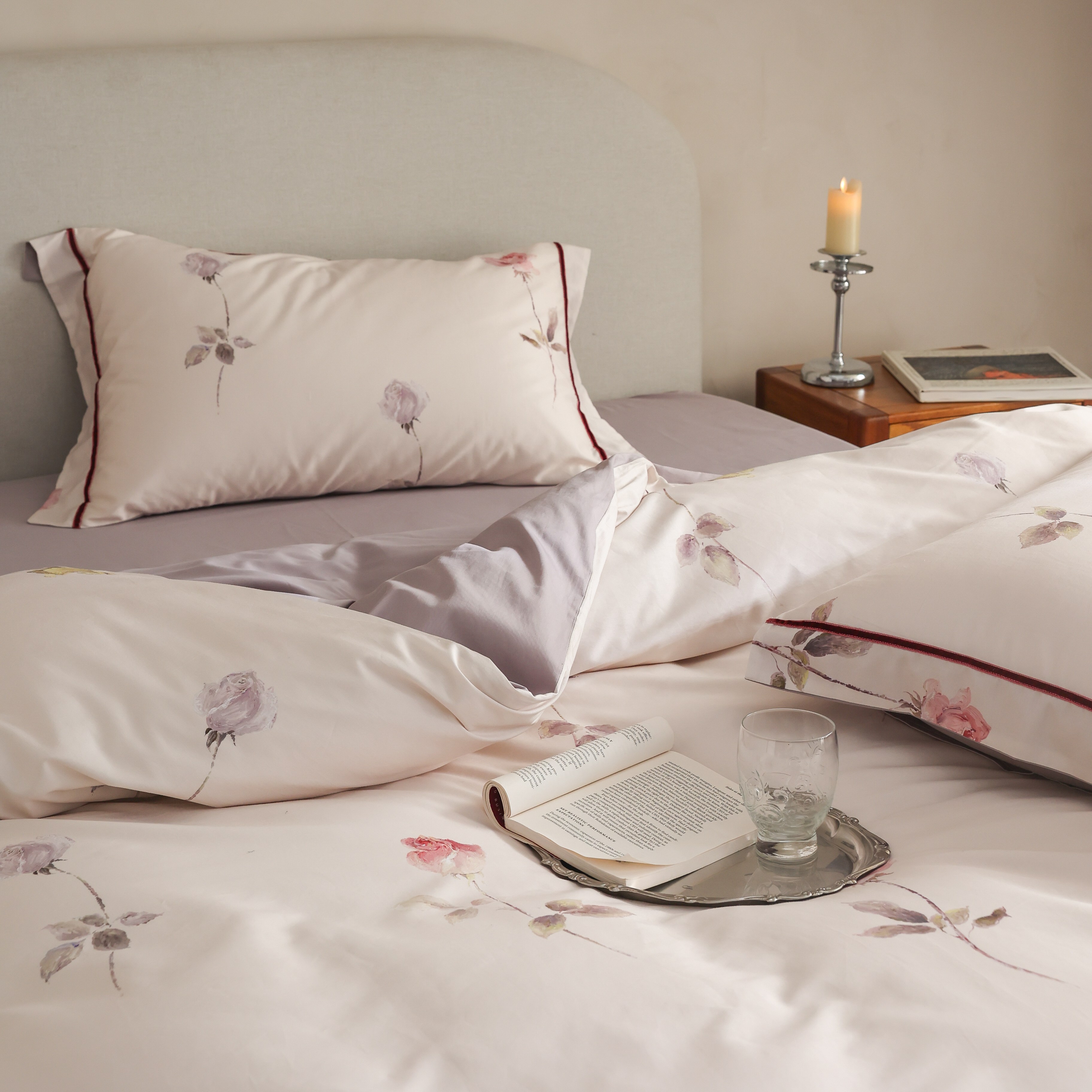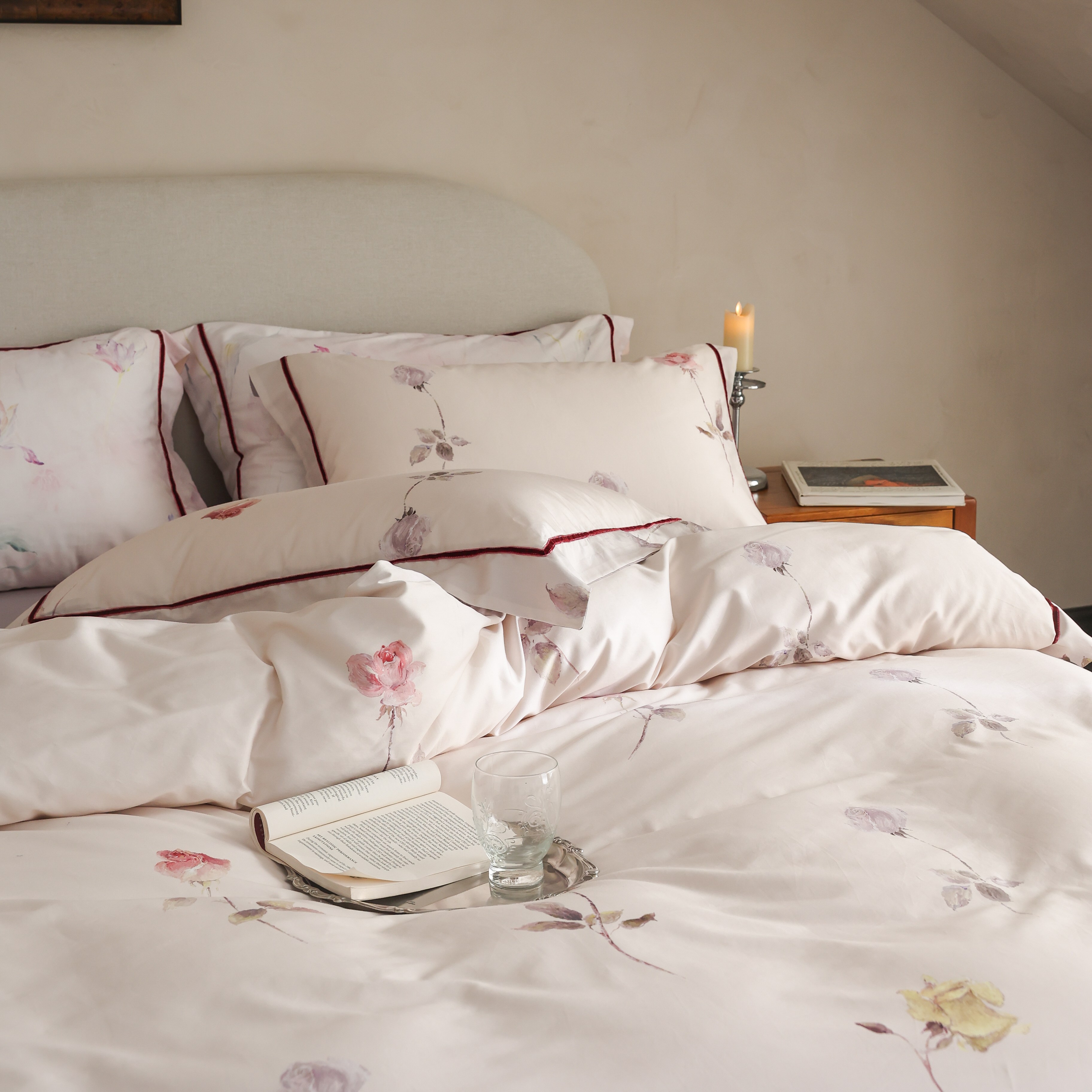(总)初拾 2025新款100s全棉纯棉数码印花复古丝绒织带四件套